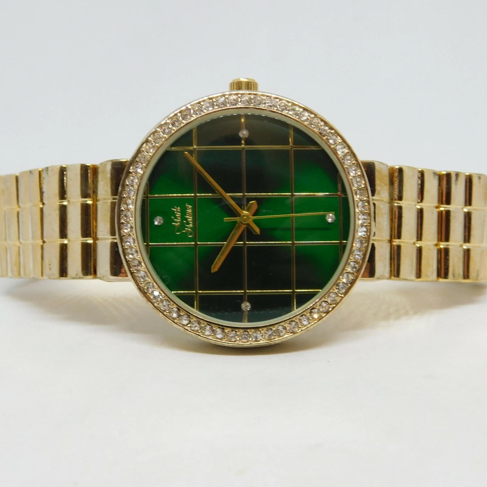 Mark Naimer MN3199 Gold Tone Green Dial Quartz Analog Ladies Watch Sz. 7"