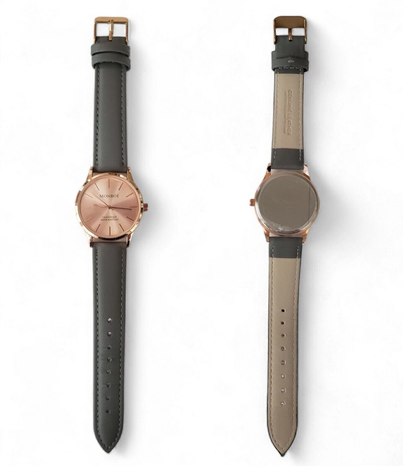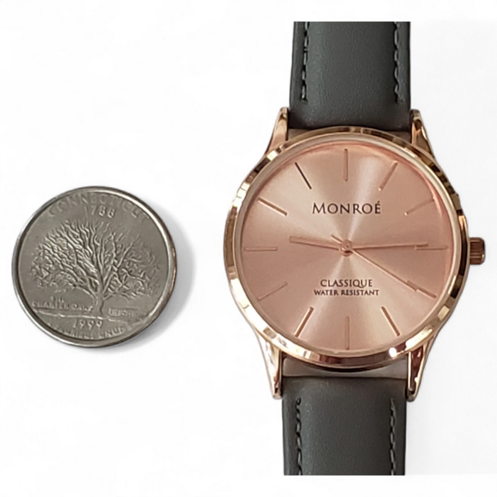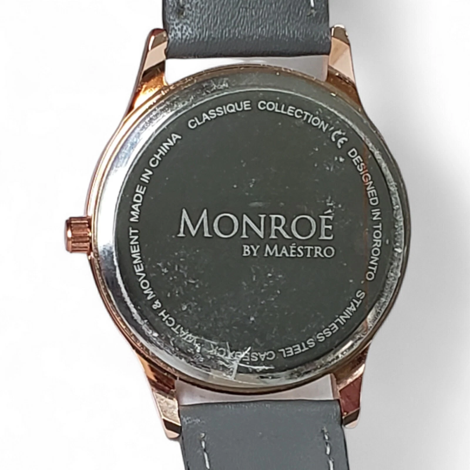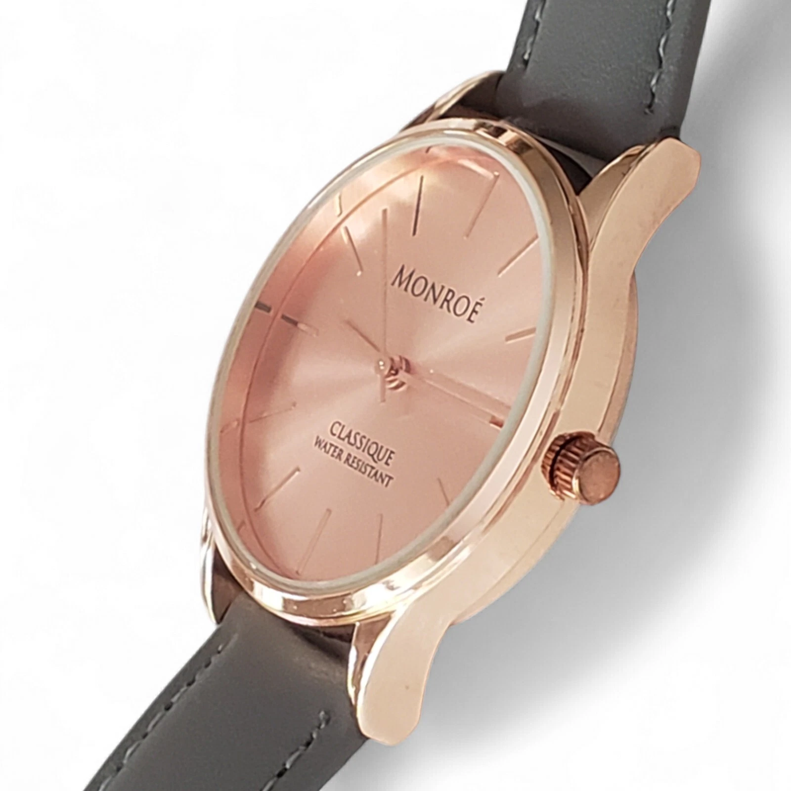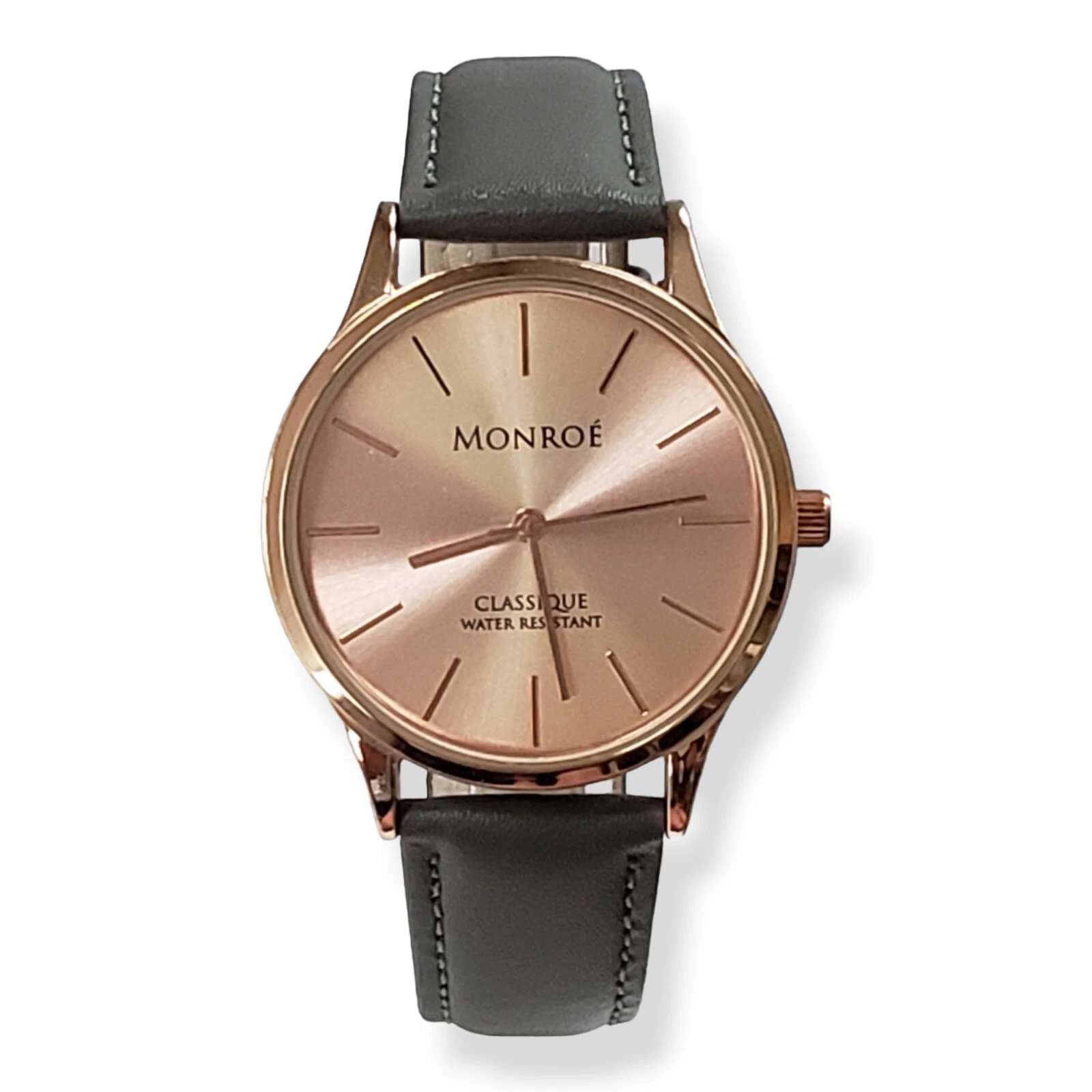 Monroé By Maestro Classique Solérose Water Resistant Gray Leather Band Watch