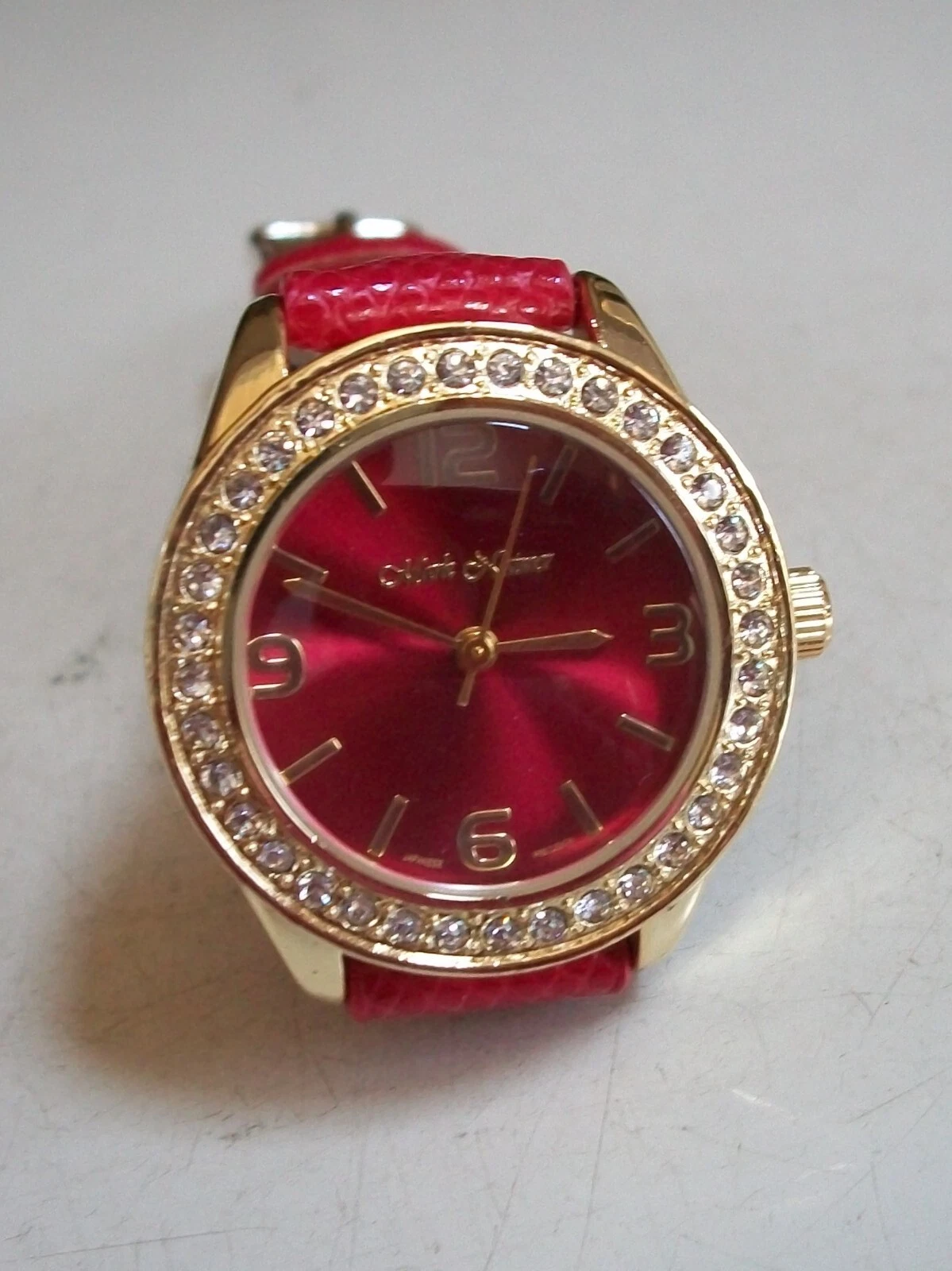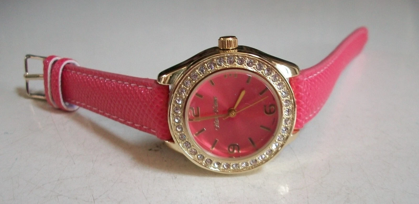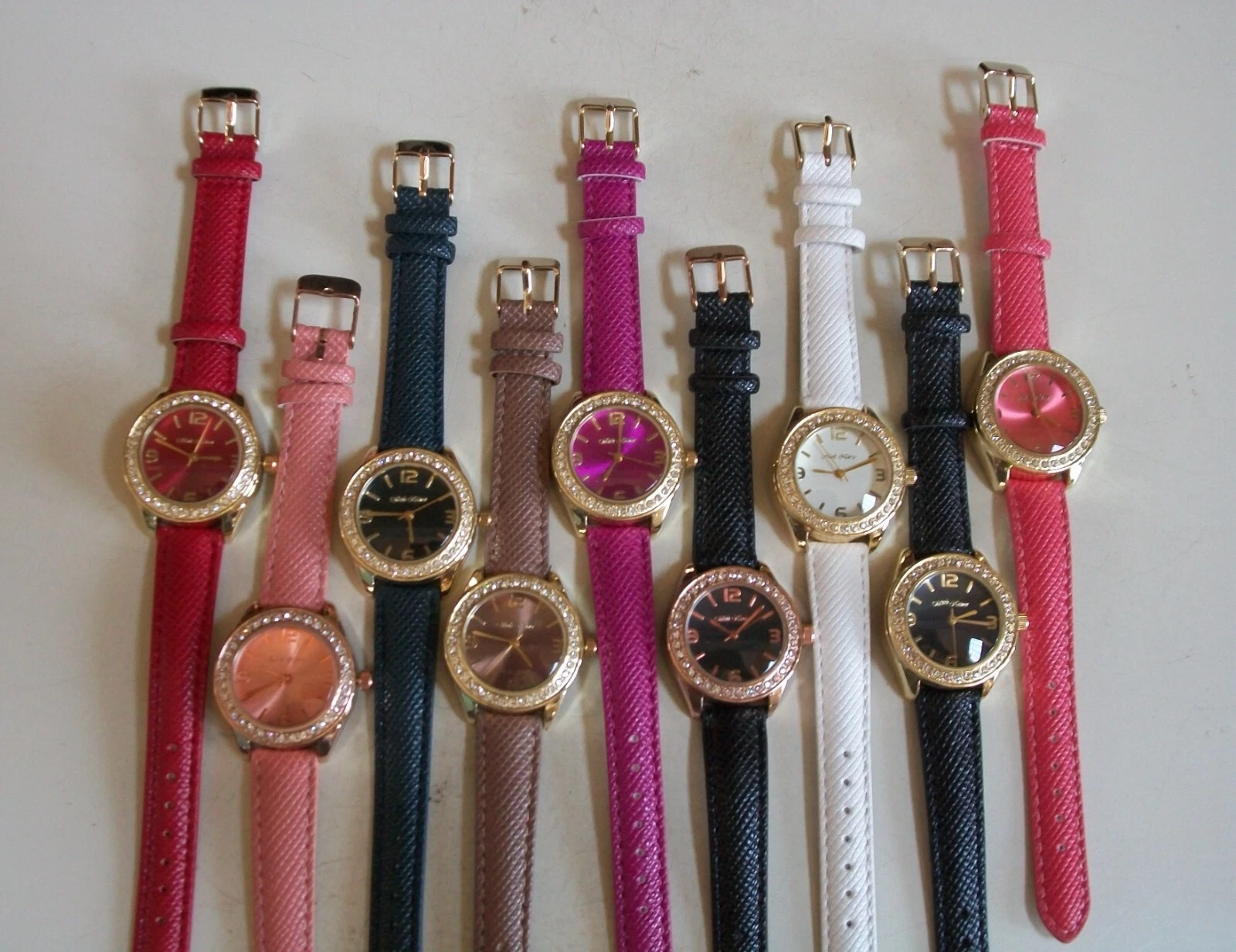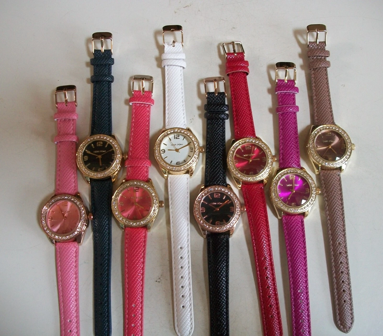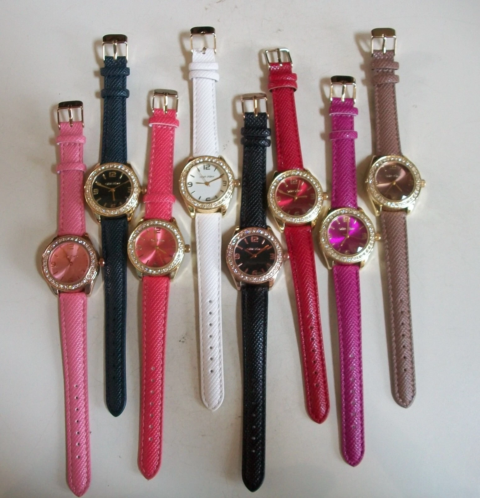 Women's Black, Red, Navy, Pink, Blush, Brown Leather Band Stone Fashion Watch