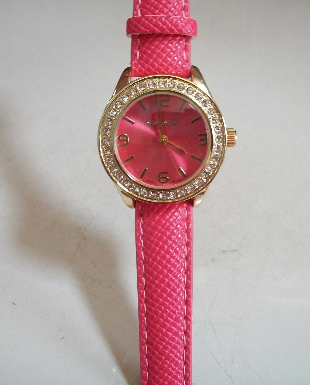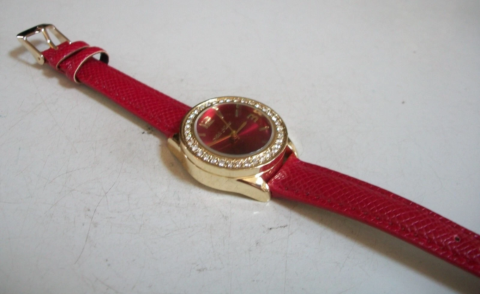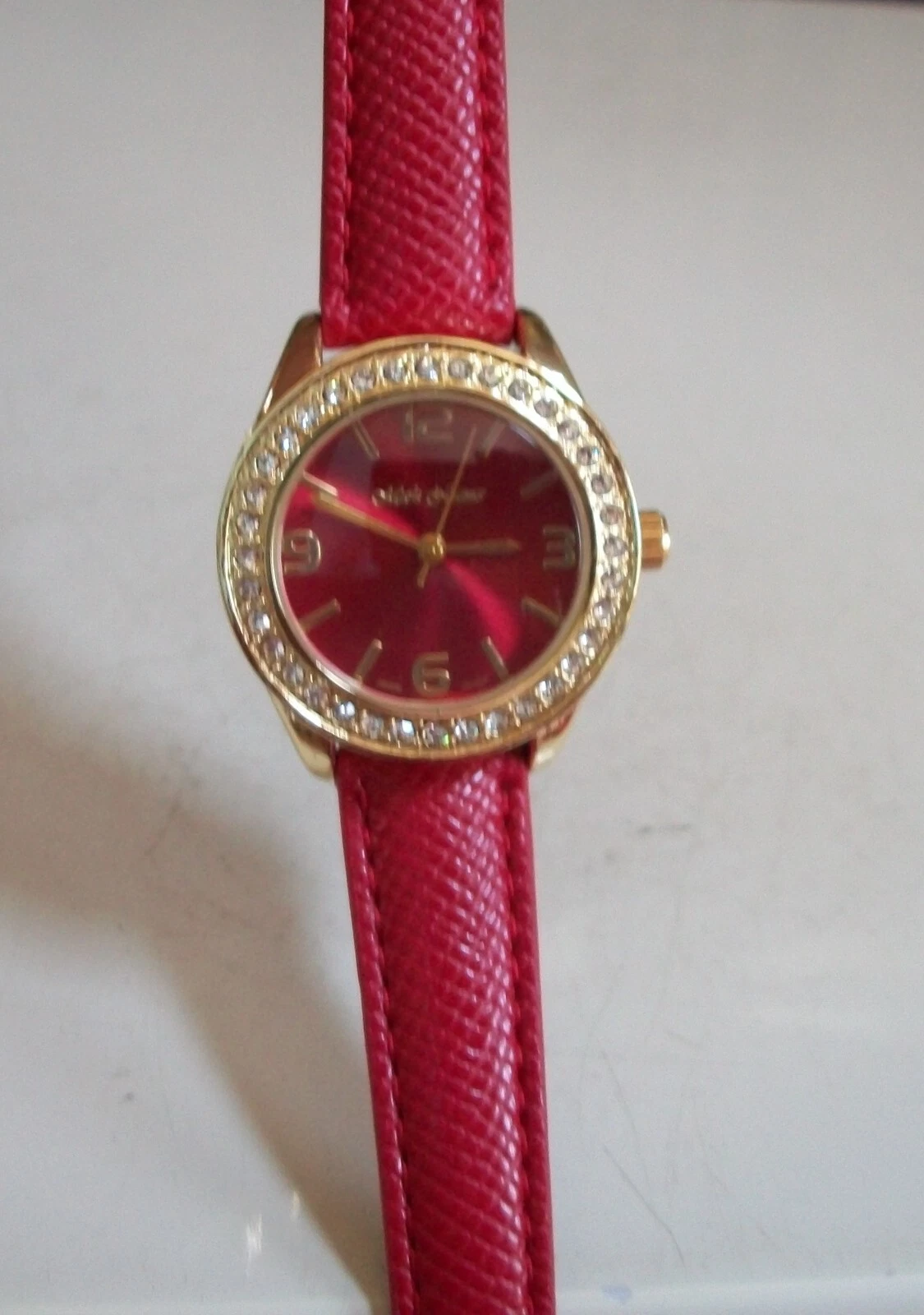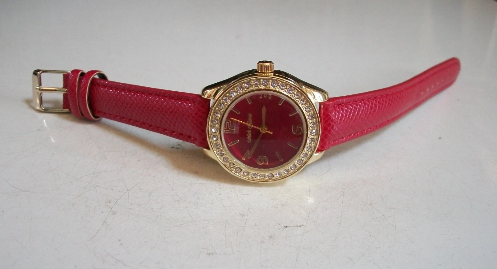 Women's Black, Red, Navy, Pink, Blush, Brown Leather Band Stone Fashion Watch