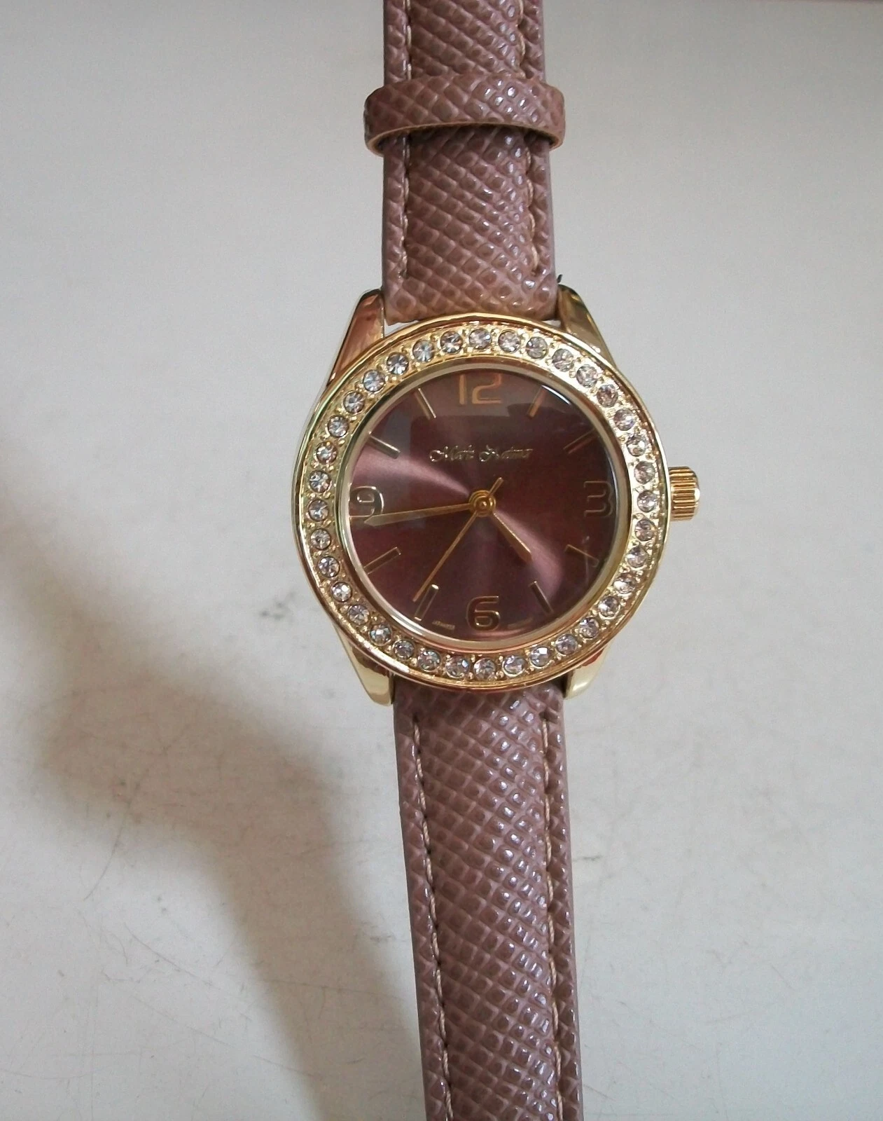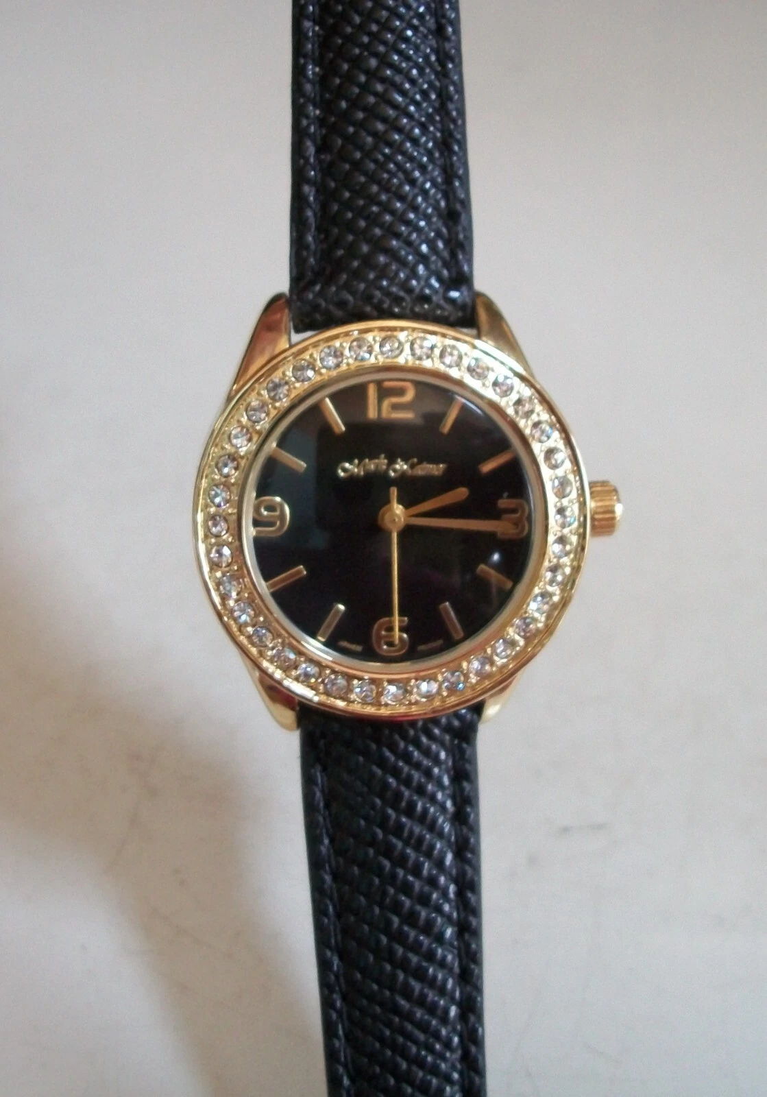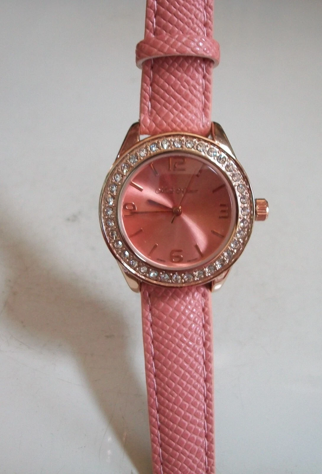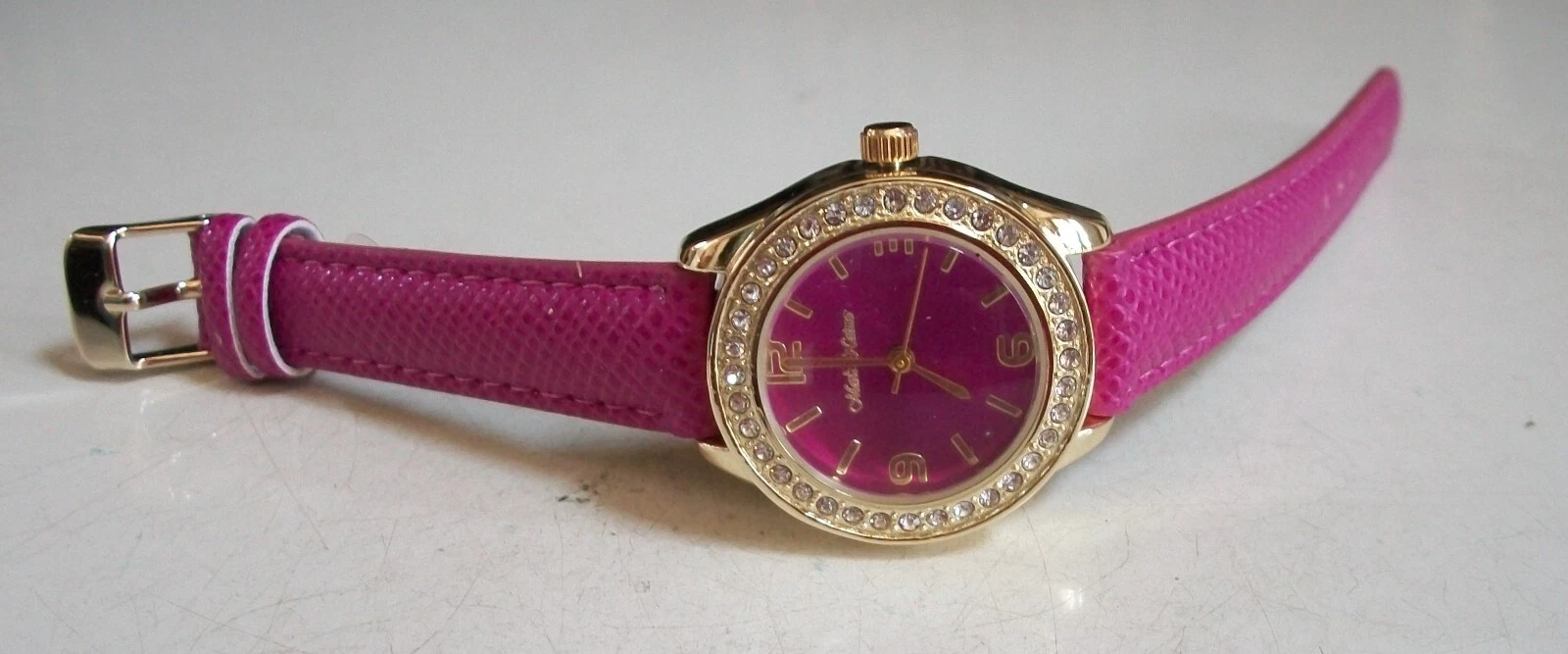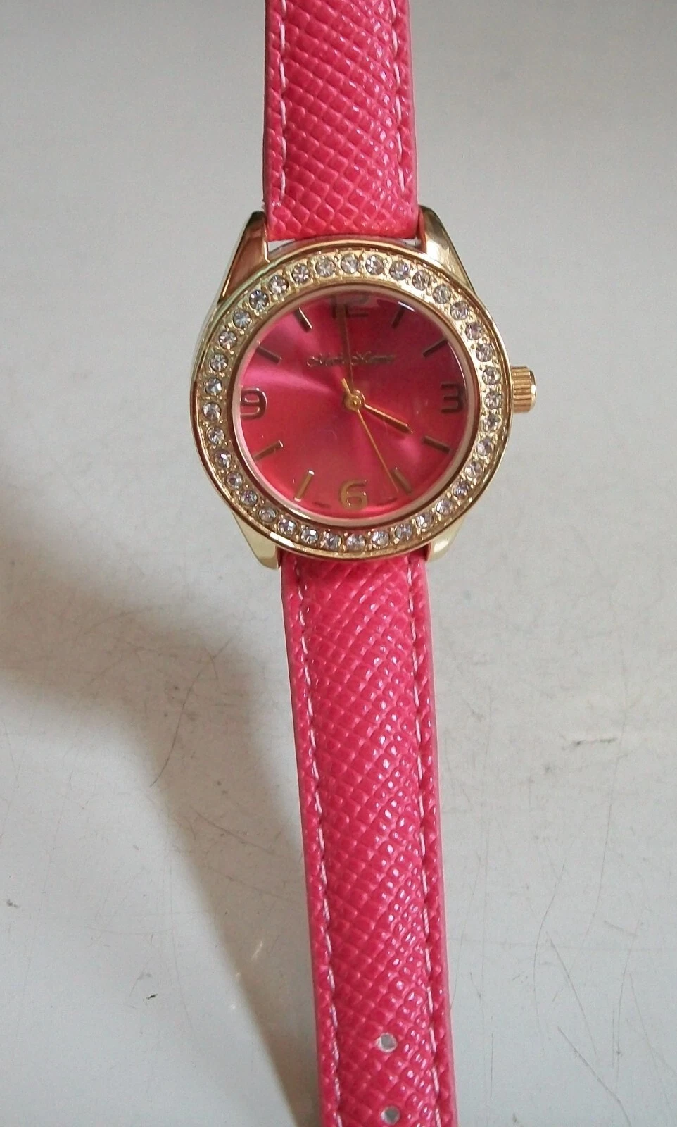 Women's Black, Red, Navy, Pink, Blush, Brown Leather Band Stone Fashion Watch