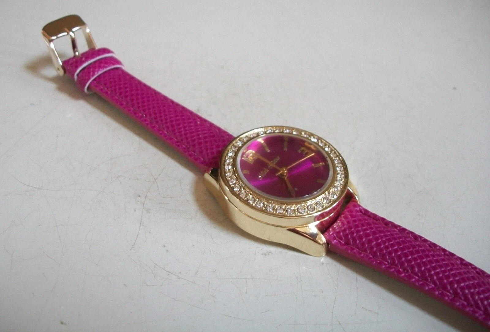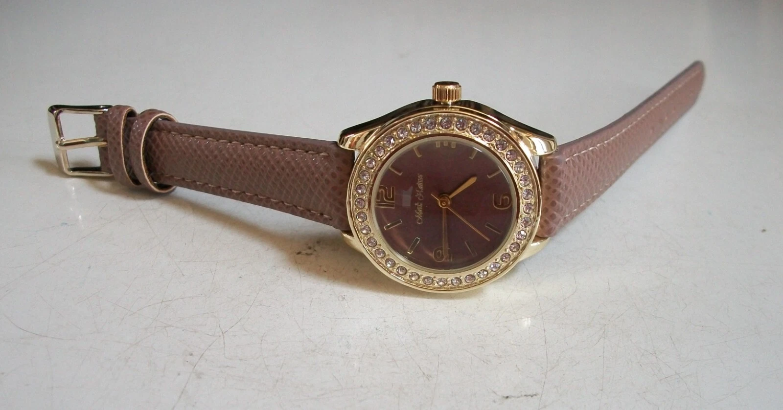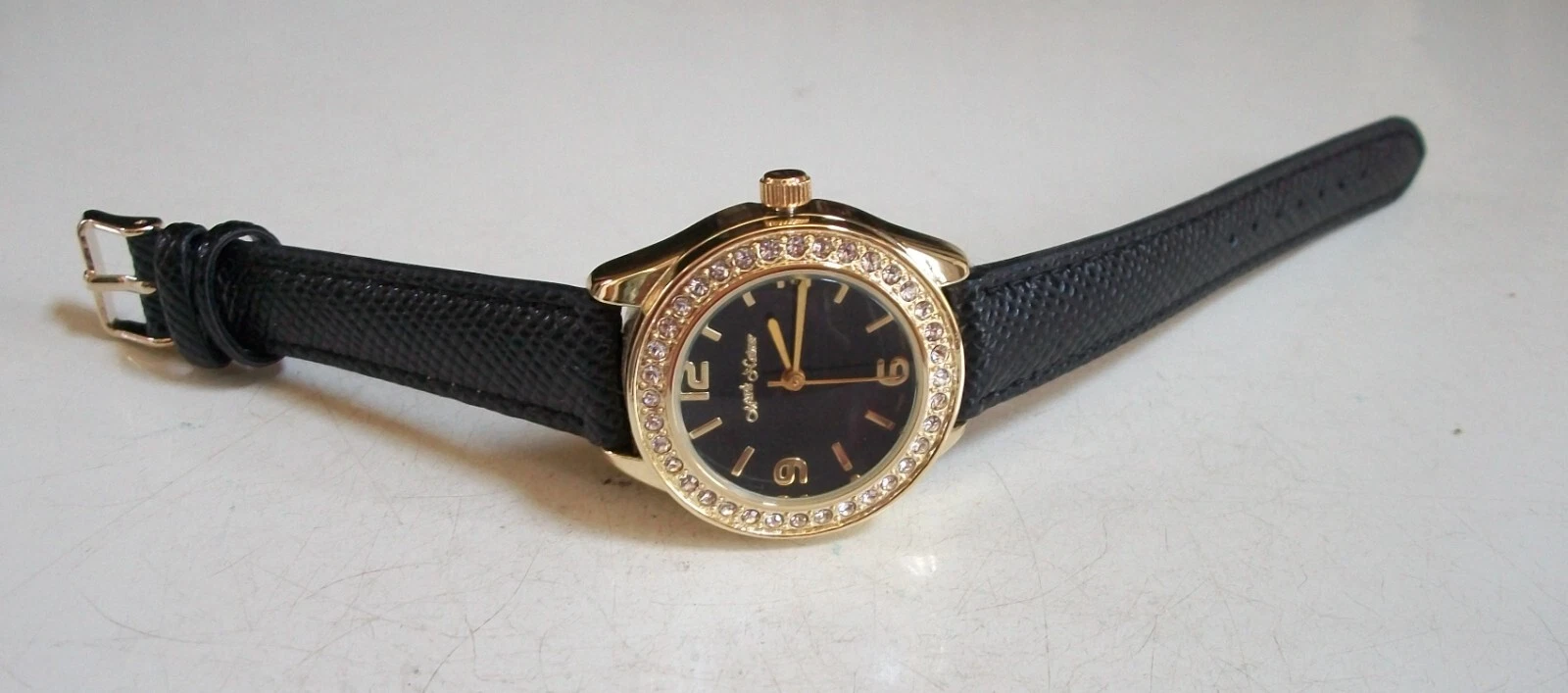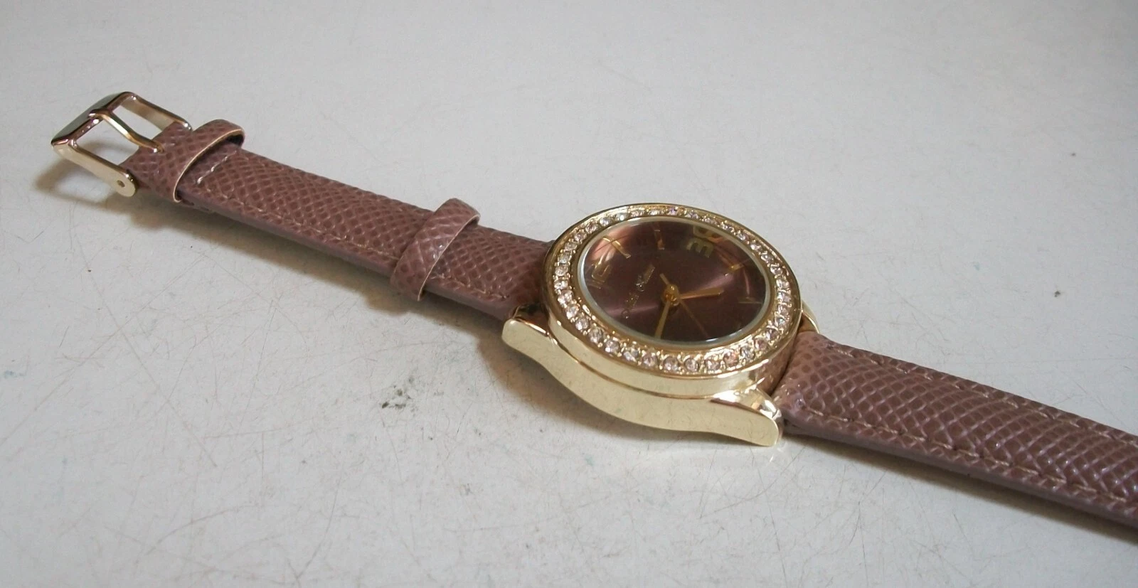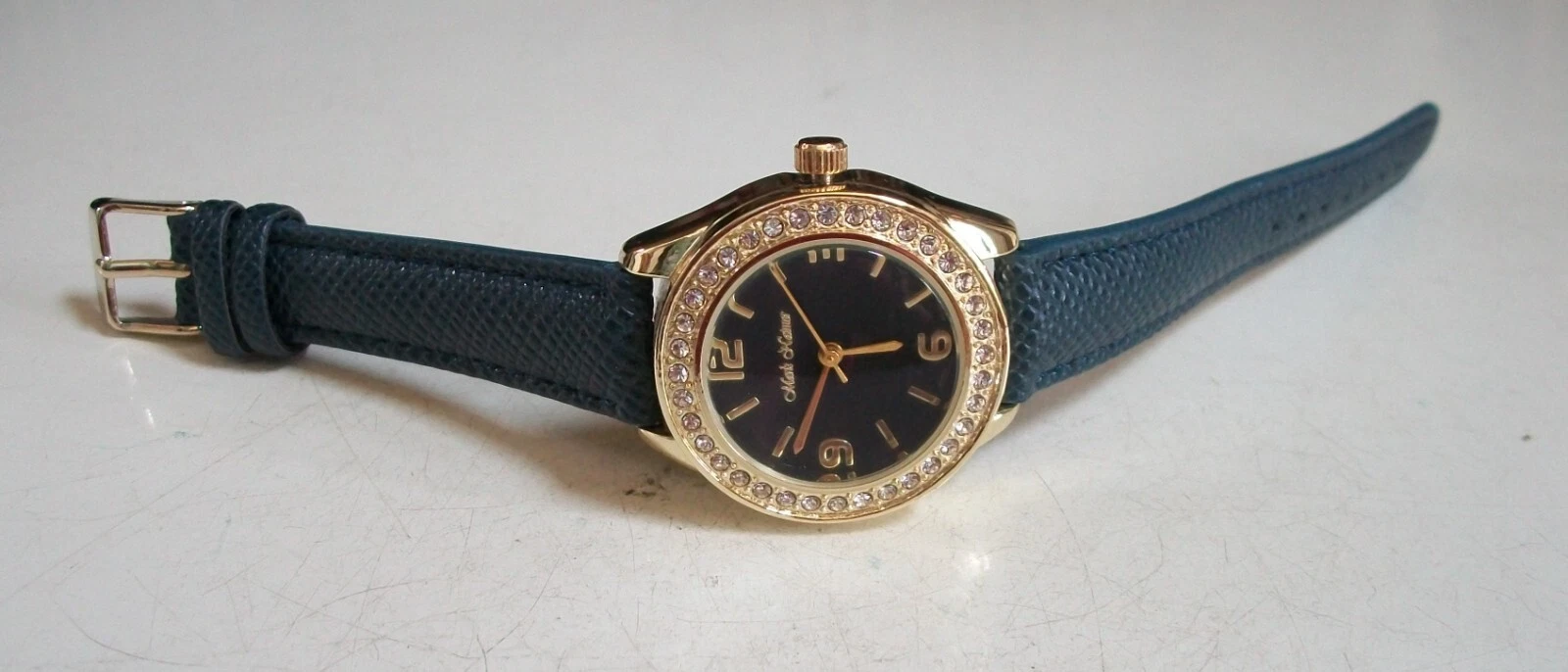 Women's Black, Red, Navy, Pink, Blush, Brown Leather Band Stone Fashion Watch