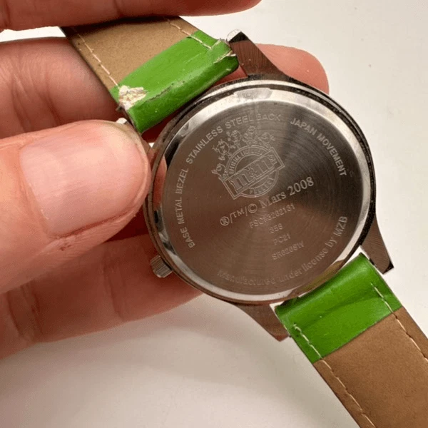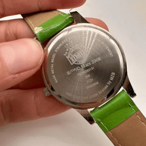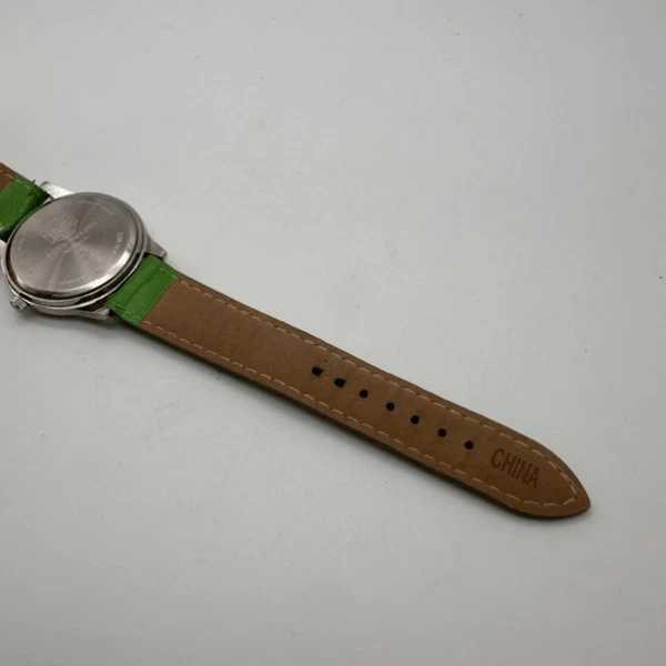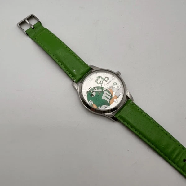 M&M Unisex Womens Faux Leather Strap Round Quartz Wristwatch Silver Tone Green