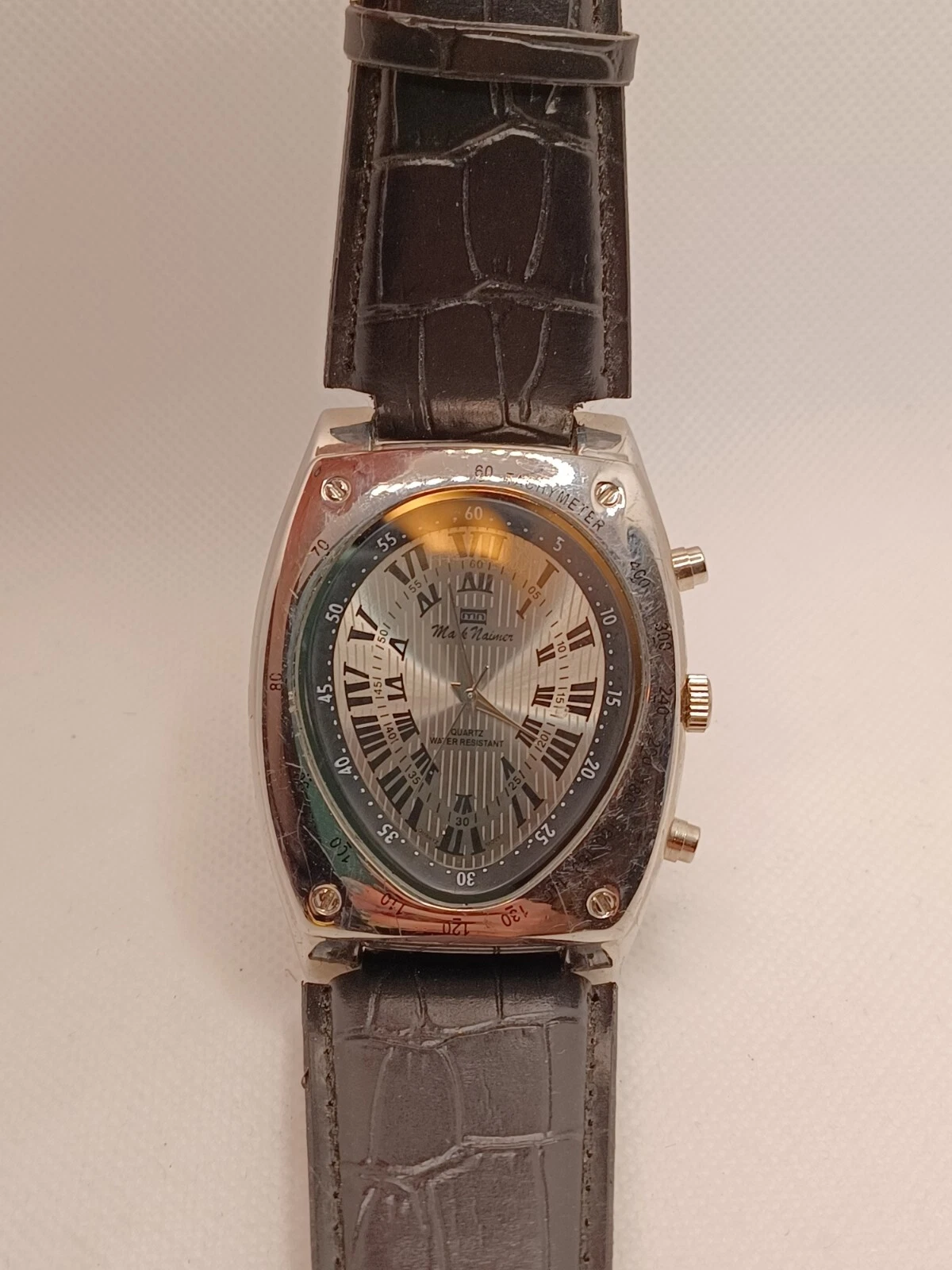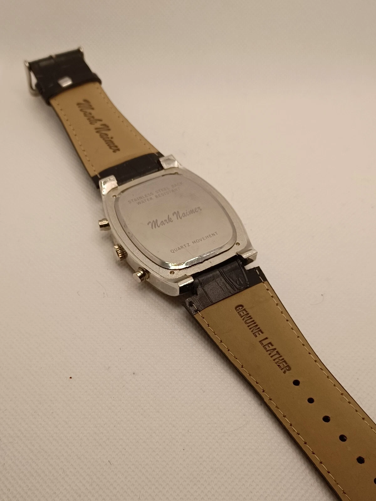 Mark Naimer Analog Wristwatch Silver Black Leather Band Band Working