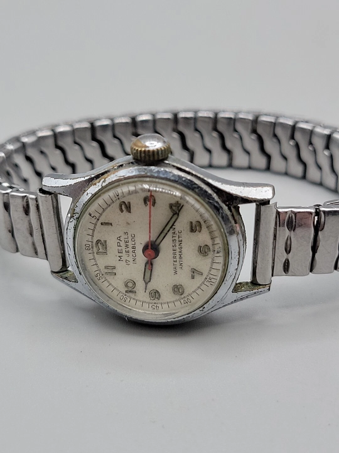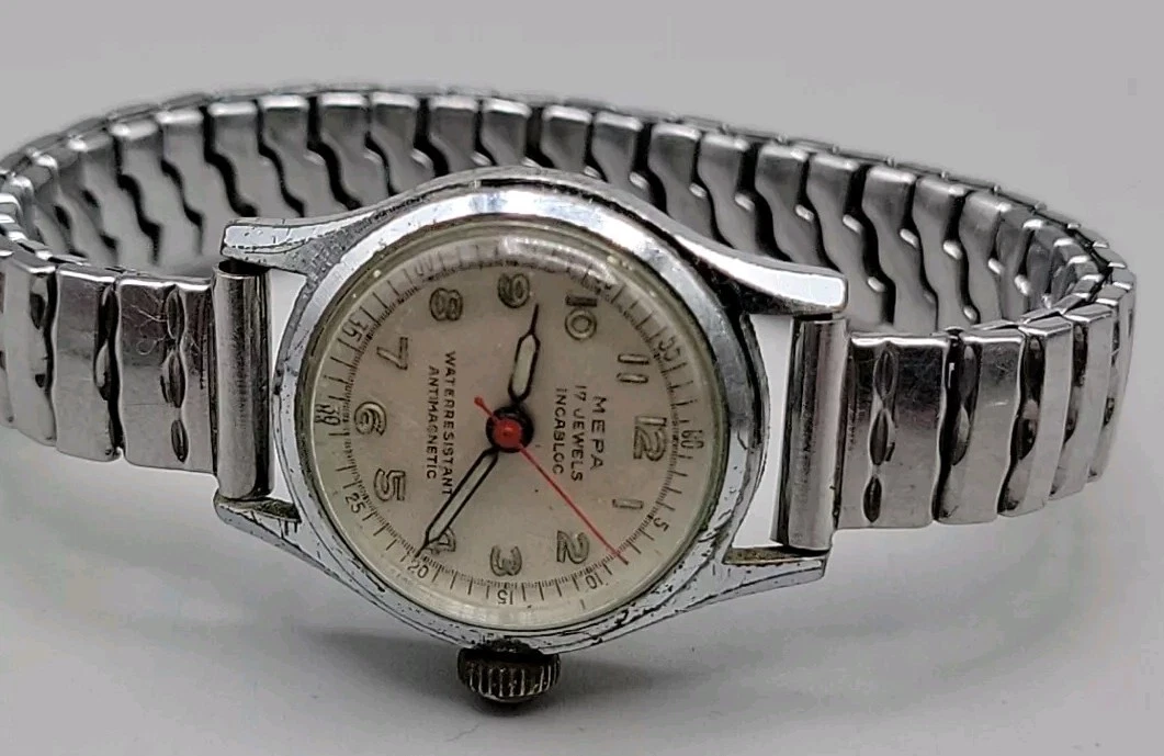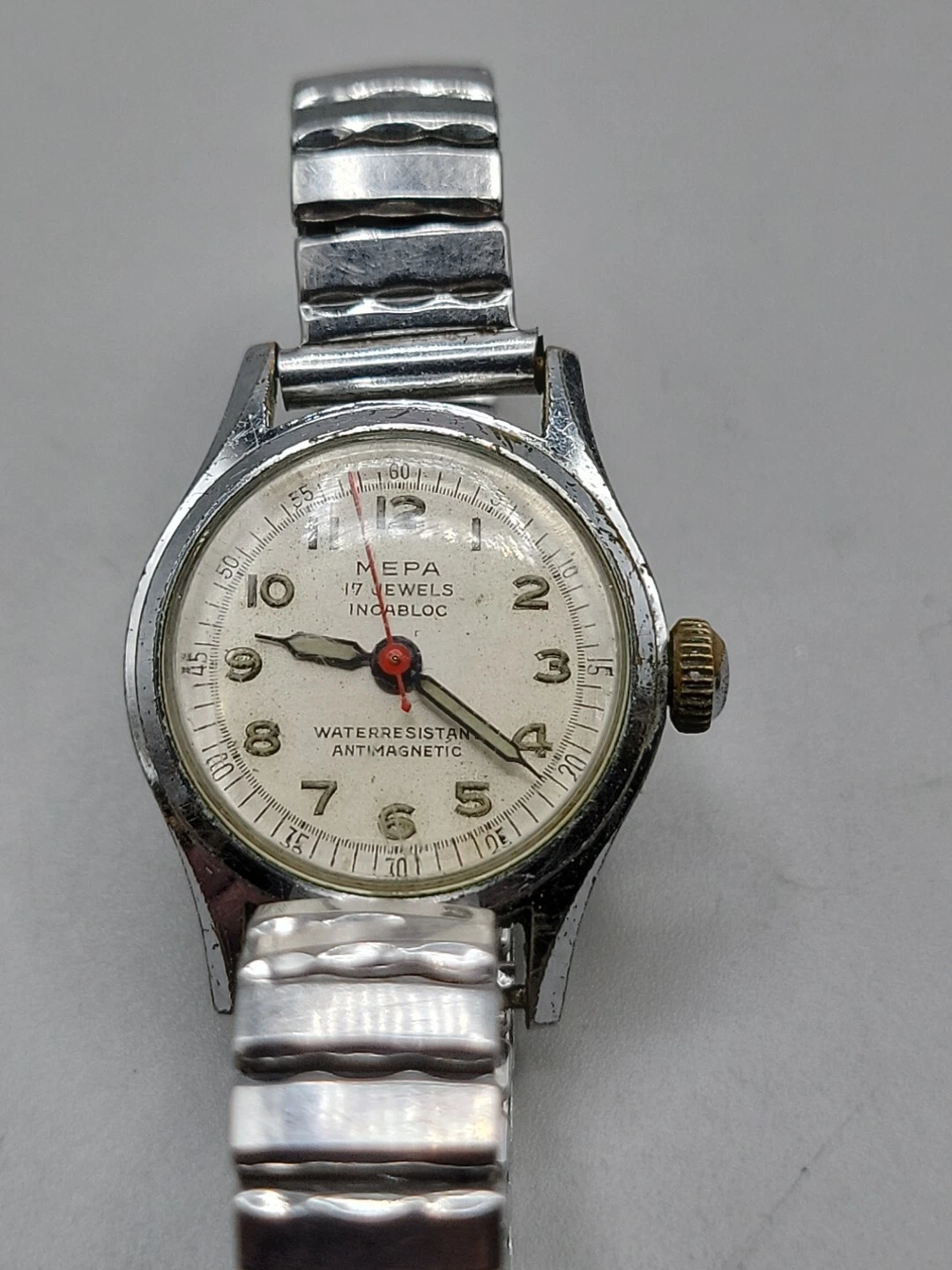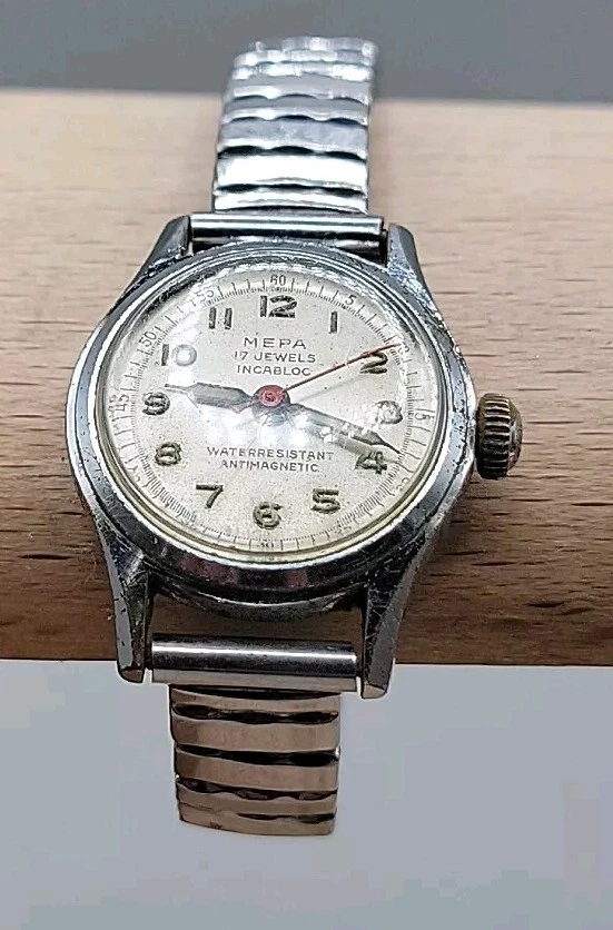 Mepa Swiss Military Nurse Automatic Watch 1930s Vintage 6" 23mm Vintage