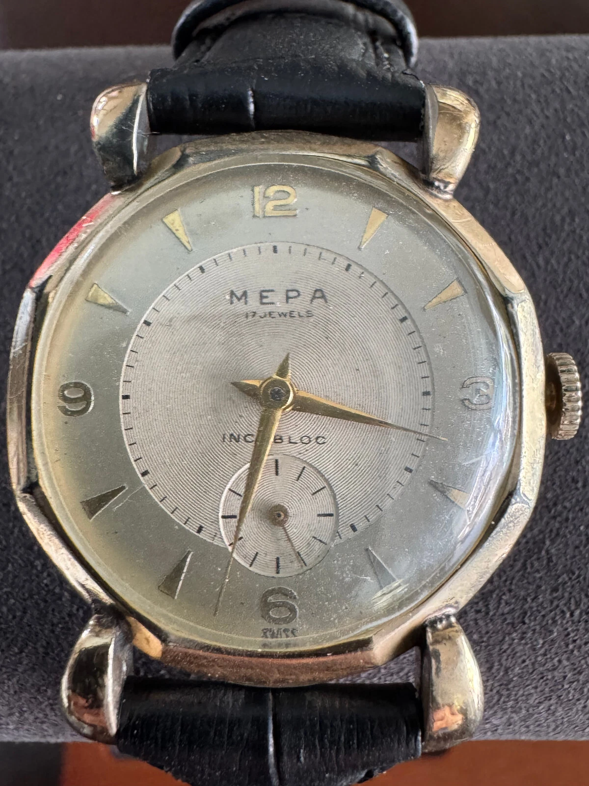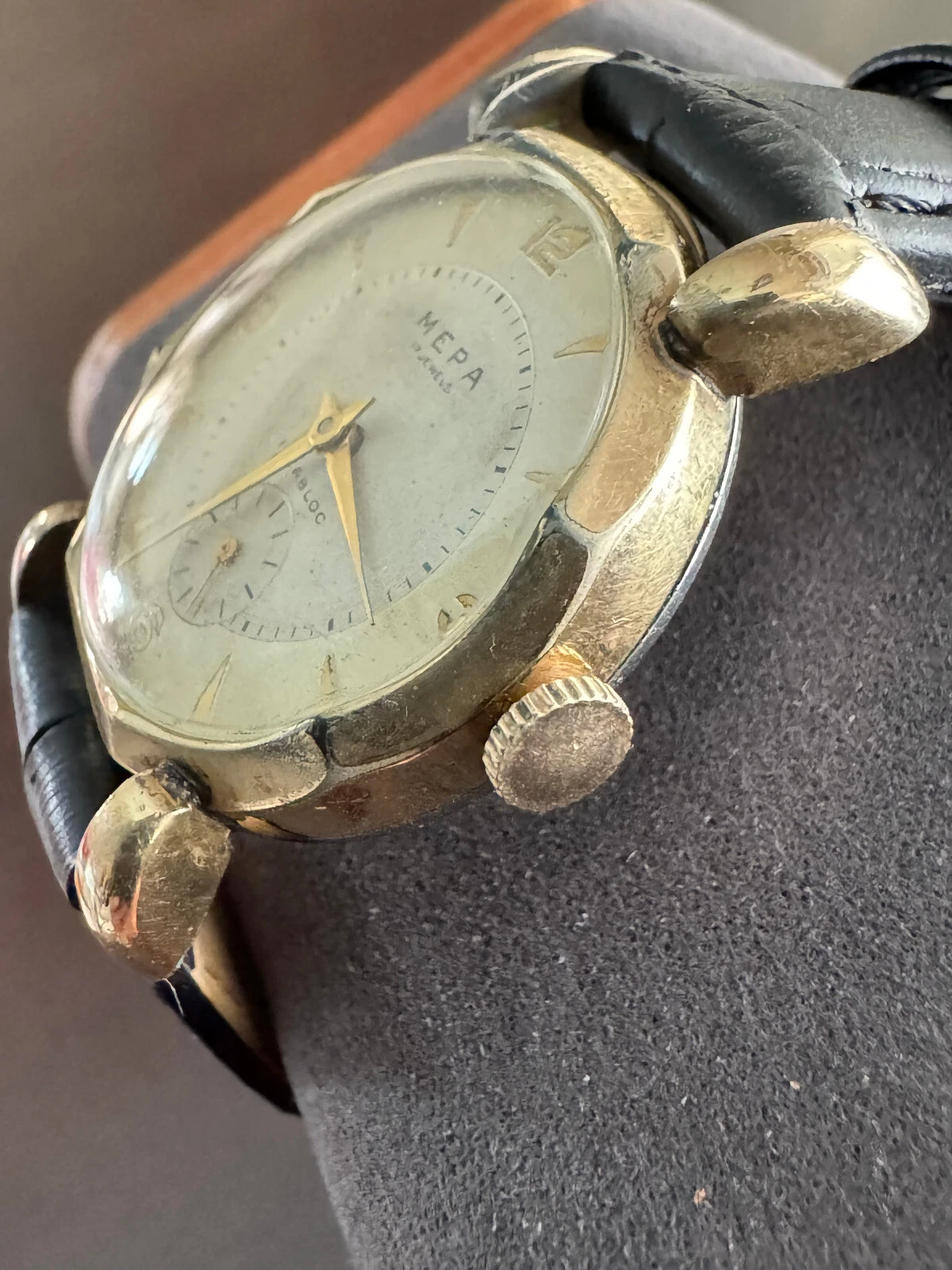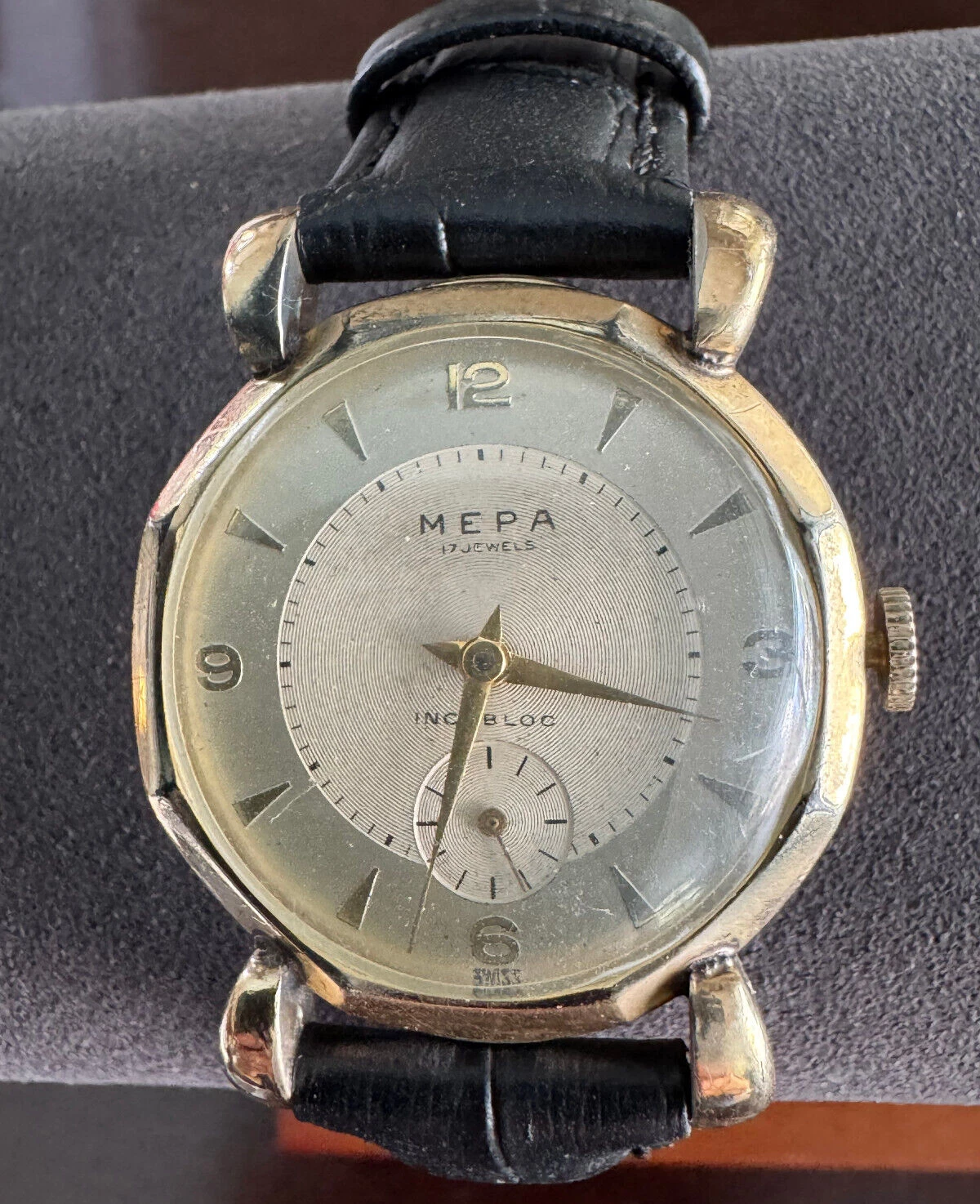 VINTAGE MEN'S MEPA WRIST WATCH CAL. 1002 KEEPING TIME COOL CASE AND BEEFY LUGS