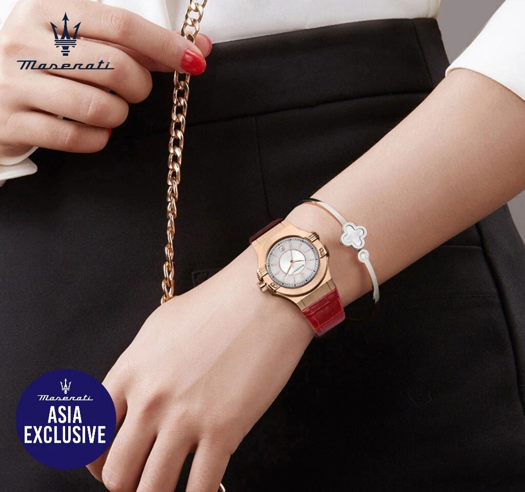 Maserati Asia Exclusive Potenza 35mm Red Leather Ladies Quartz Watch