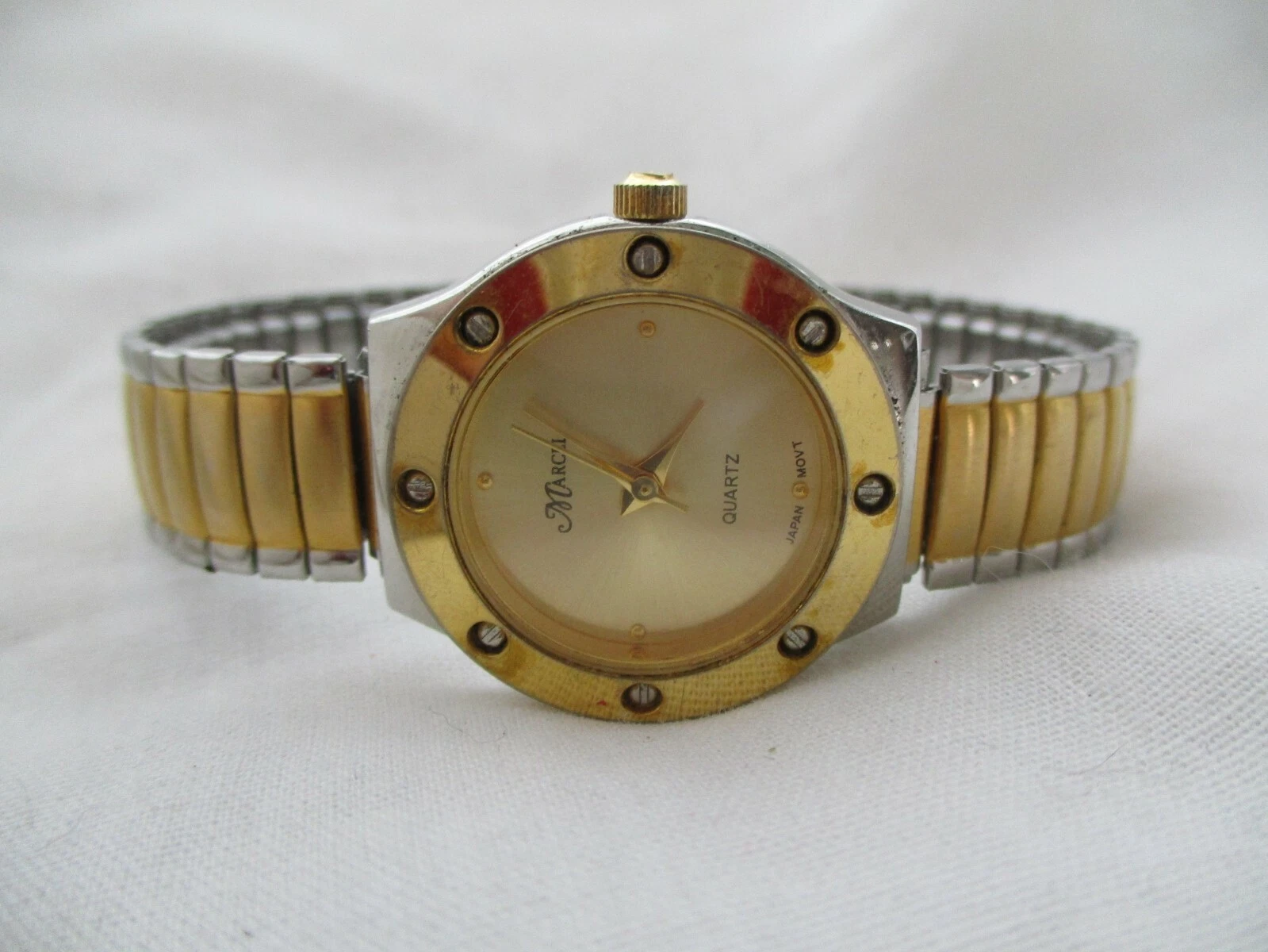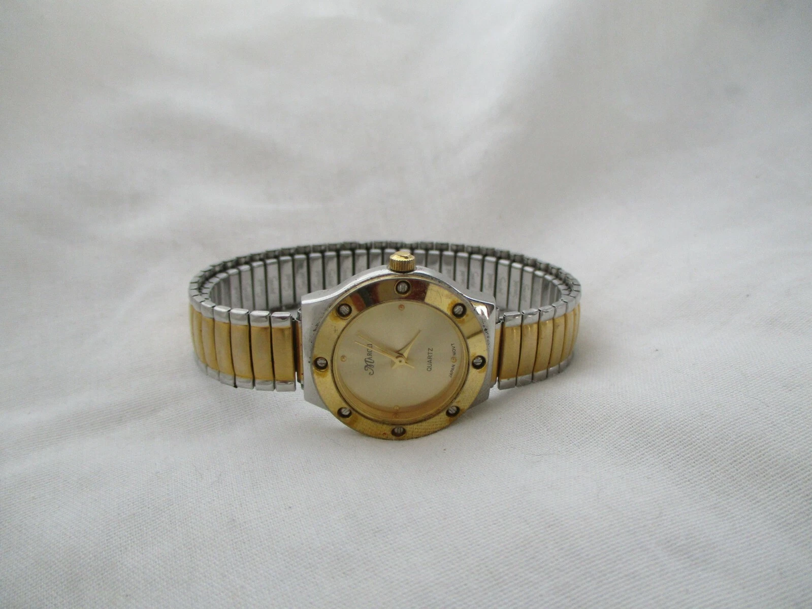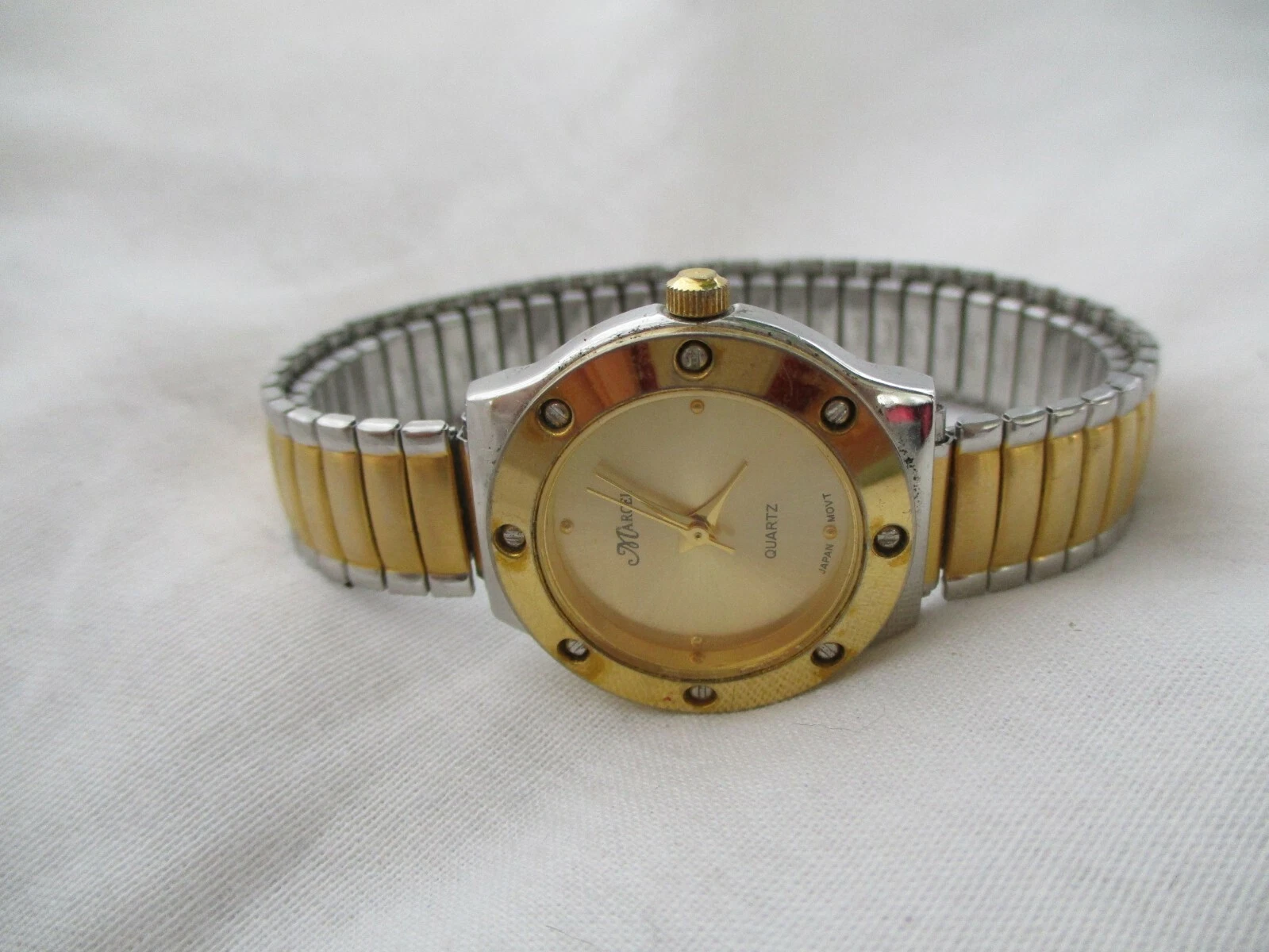Marcel Rhinestone Watch, Two-tone Metal Expansion Band, WORKING!