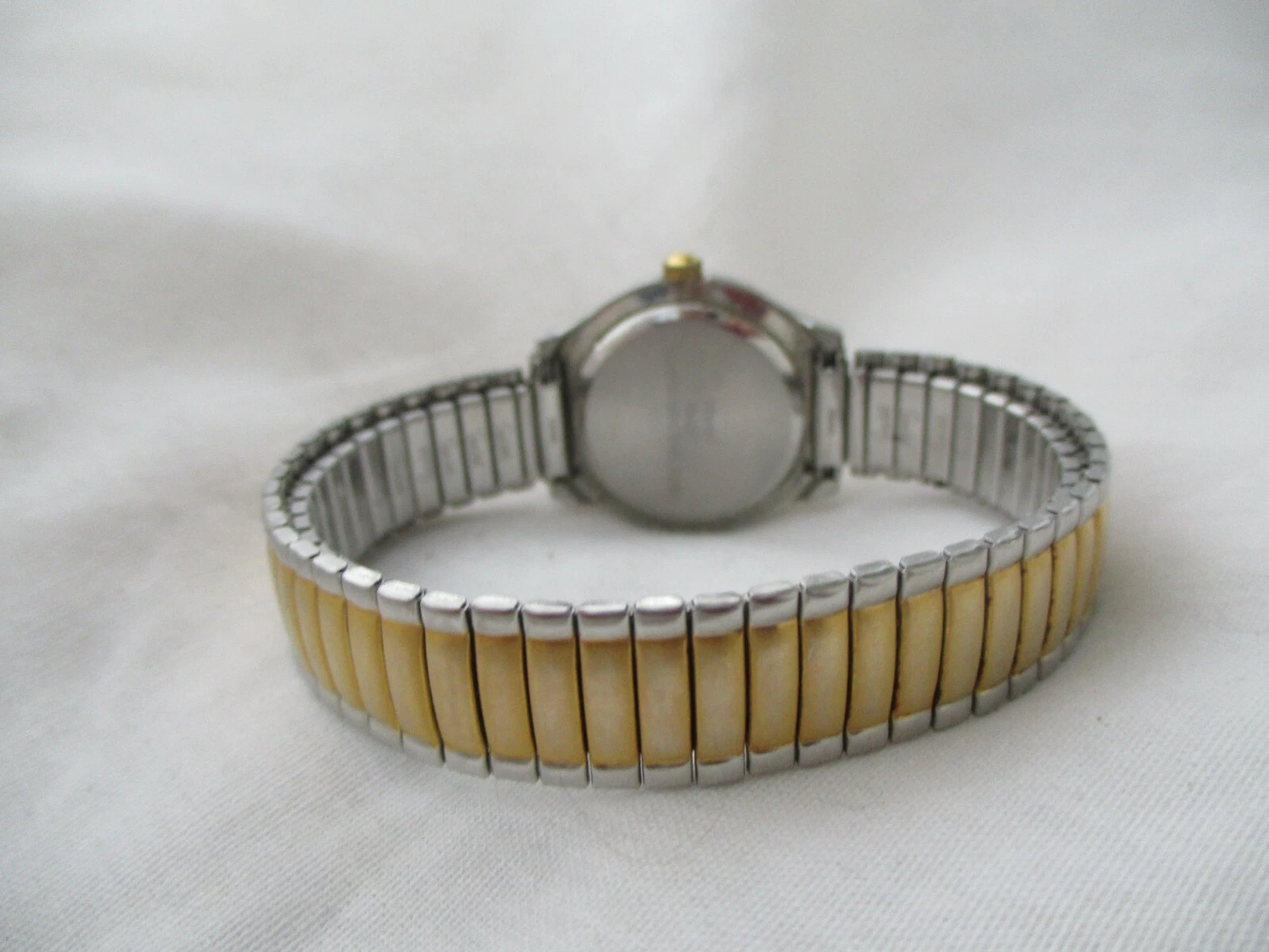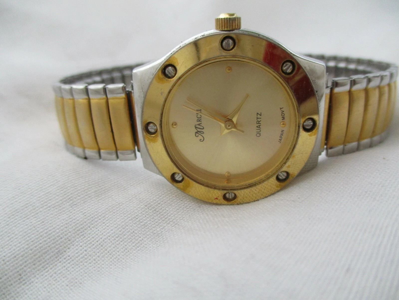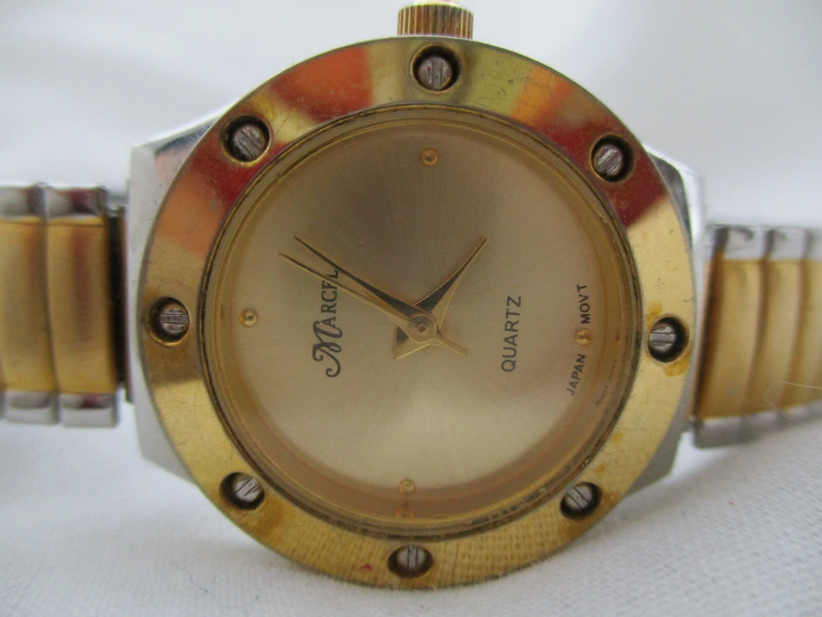 Marcel Rhinestone Watch, Two-tone Metal Expansion Band, WORKING!