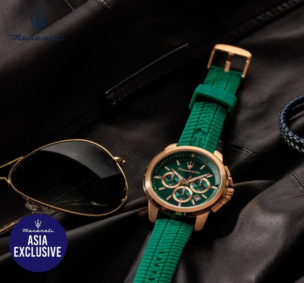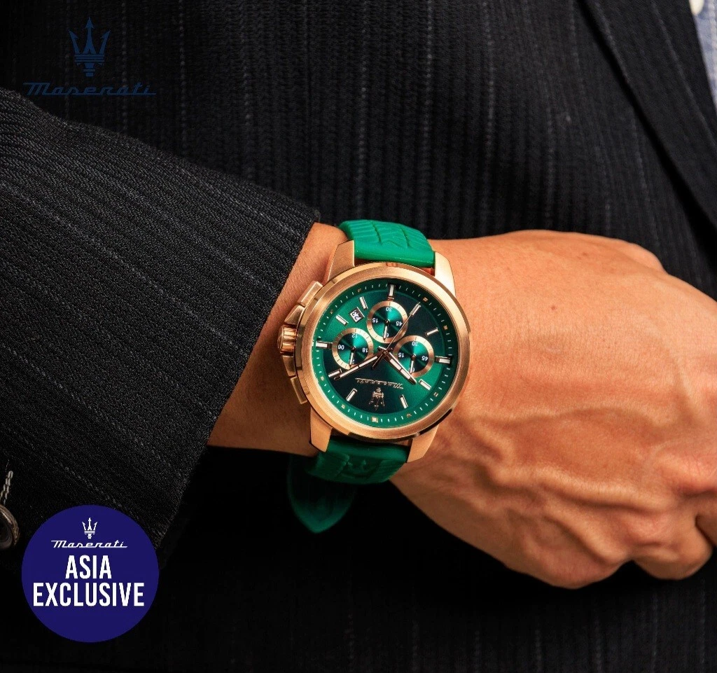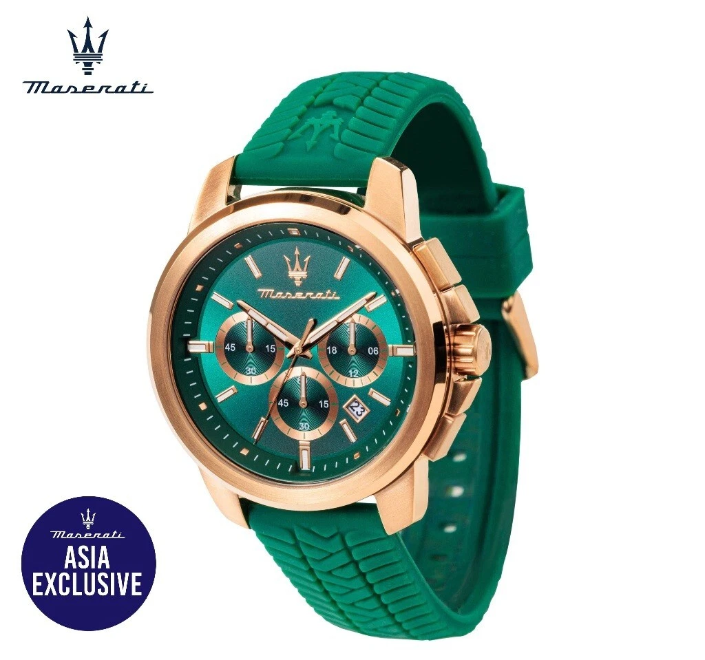 Maserati Asia Exclusive Successo 44mm Men's Quartz Watch Green Silicone Strap