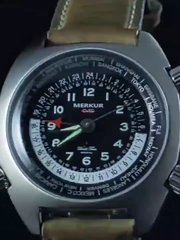 MERKUR Men Alarm Watch 37.5mm Manual Winding Mechanical Wristwatch Luminous