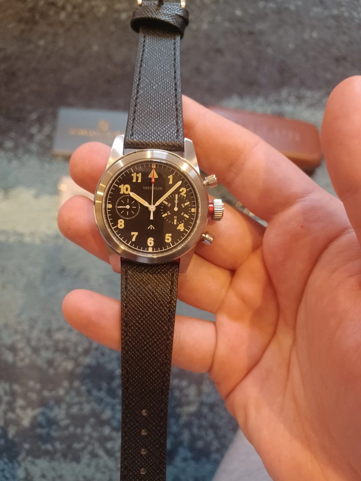 Merkur big eye pilot watch manual winding chronograph mechanical seagull st1901