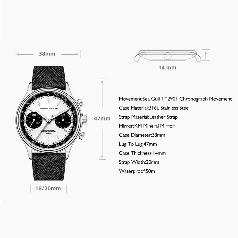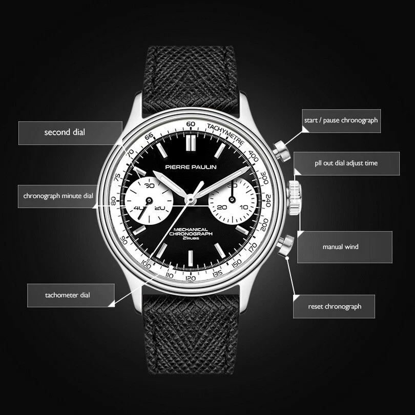 MERKUR Men Chronograph Watch Sport Manual Mechanical Wristwatch Luminous Green