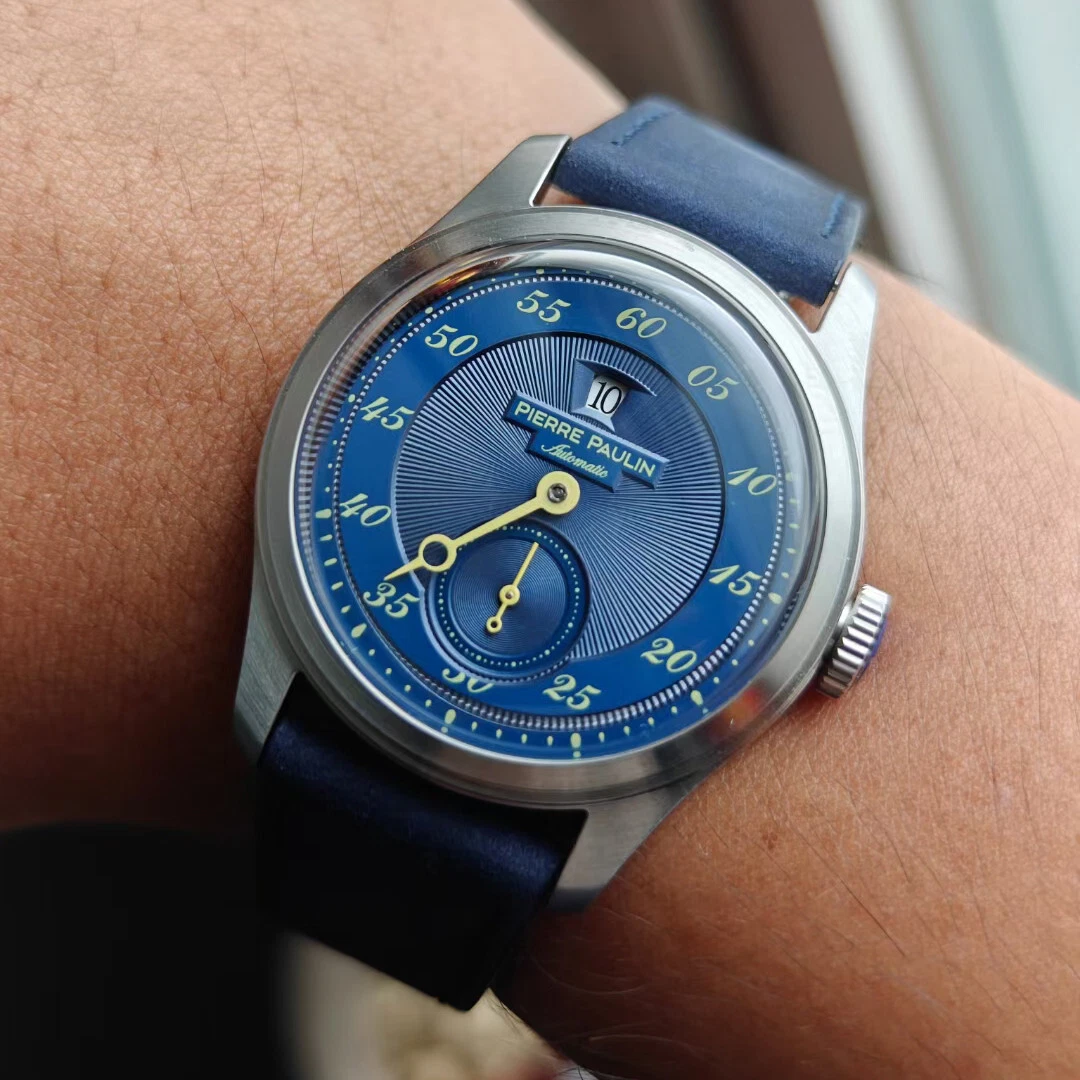 MERKUR Men Automatic Watch 38MM Jump Hour Mechanical Wristwatch Blue Dial Sport