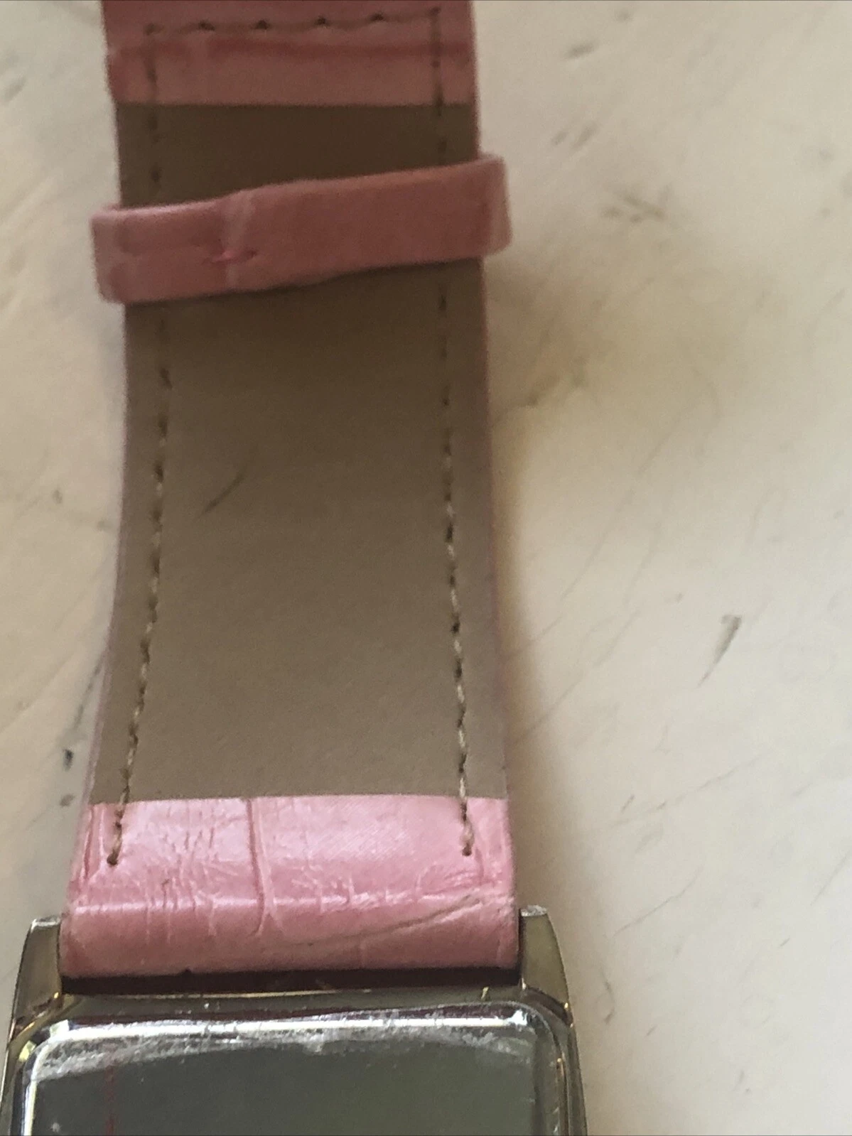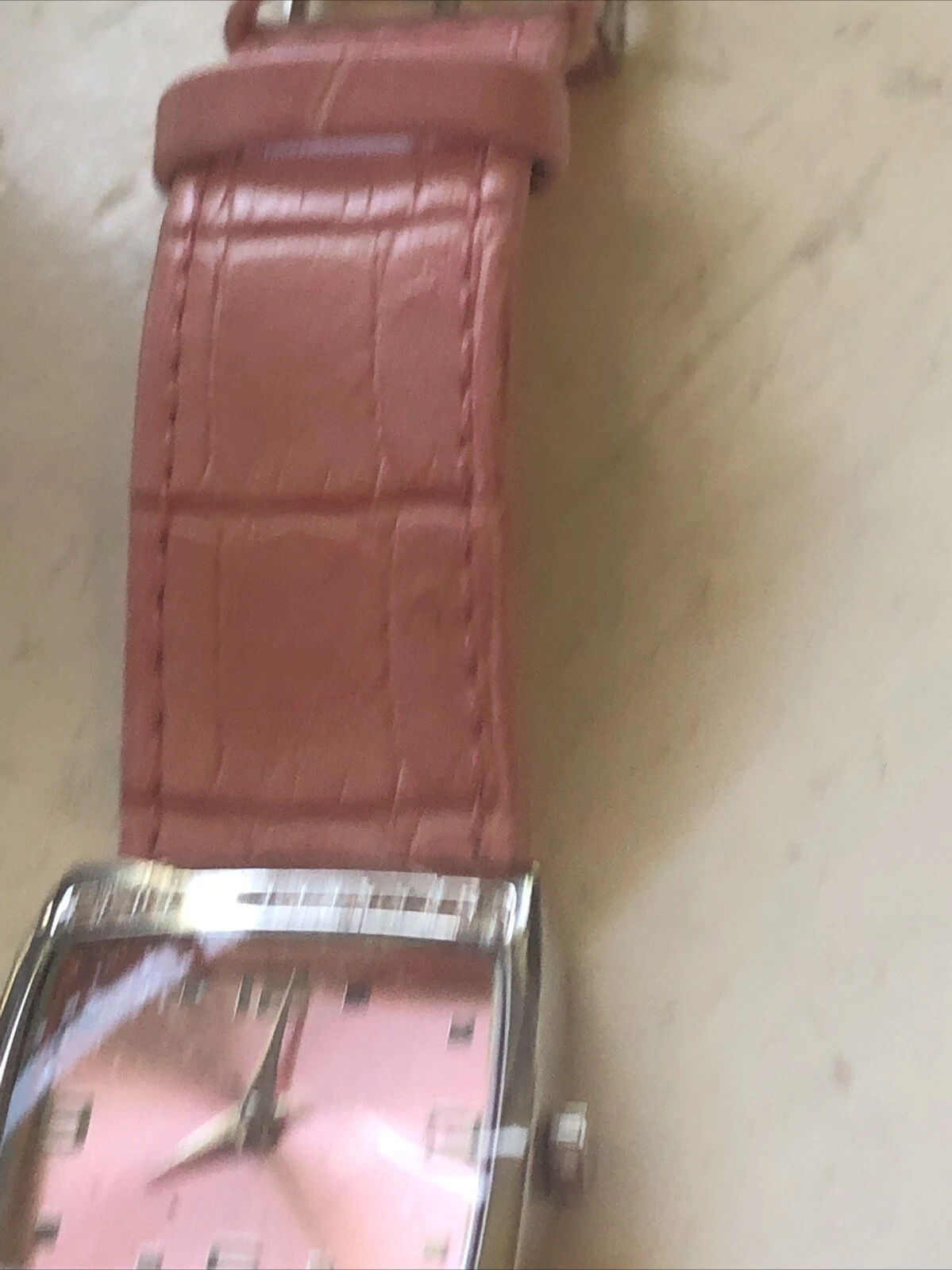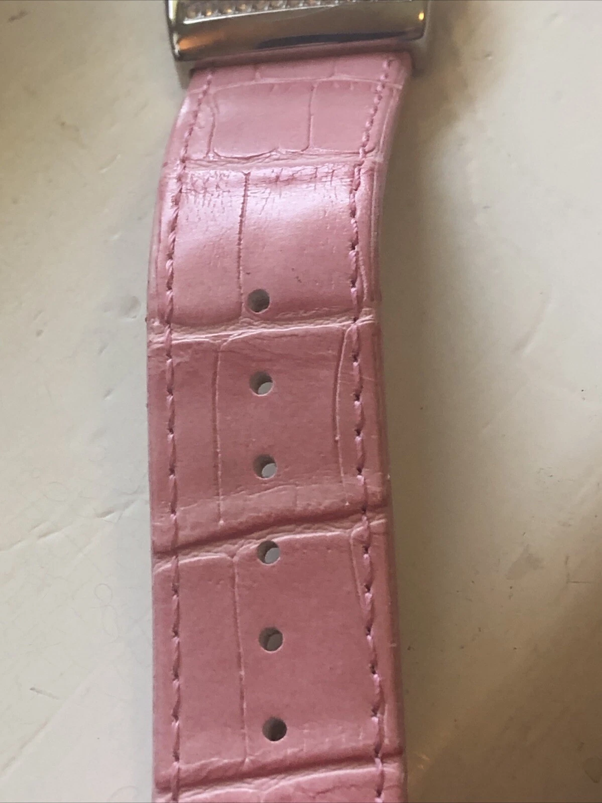 Mary Kay Womans Pink Dial Crystal Accent Silver Tone Case Pink Band Watch