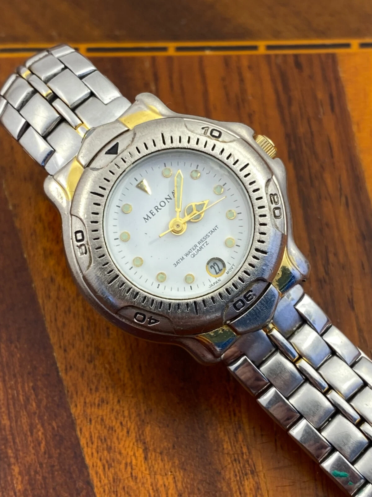 Vintage Merona Women's Watch Dive Style Date Silver/ Gold Tone 28mm- New Battery