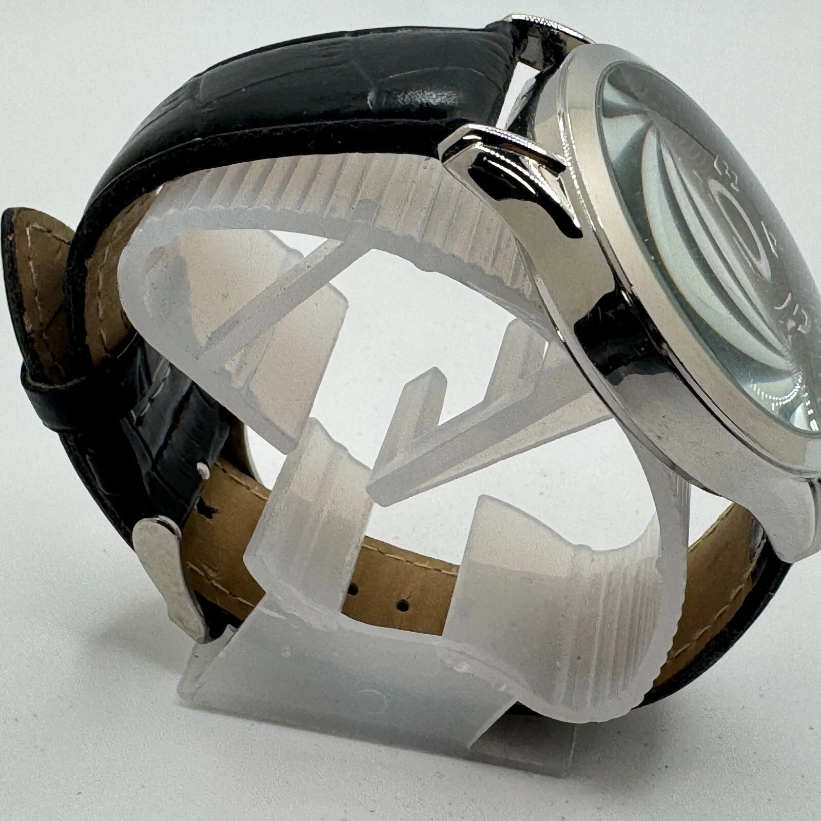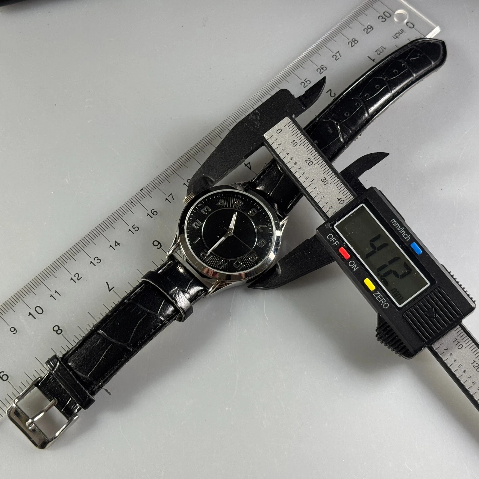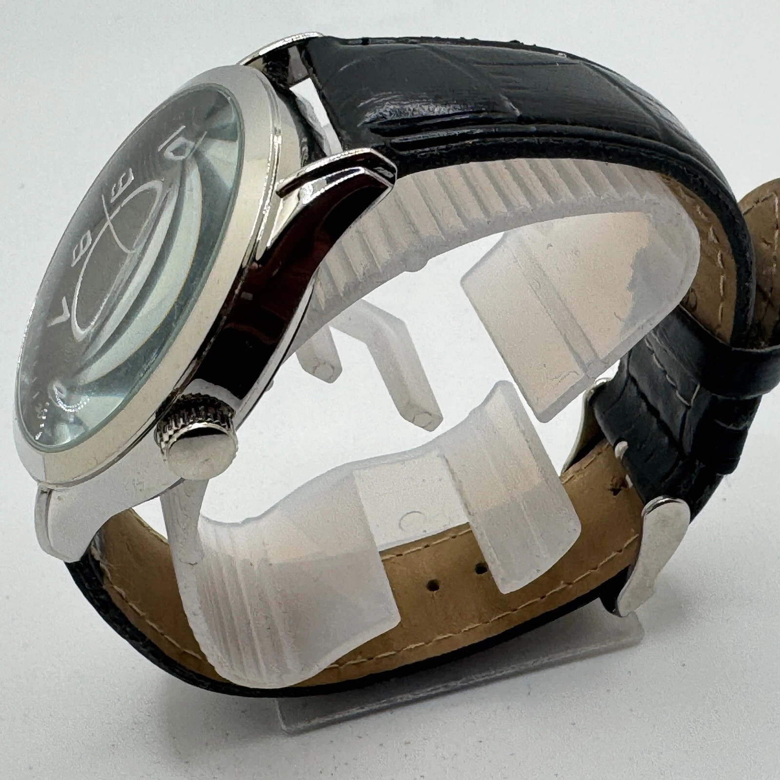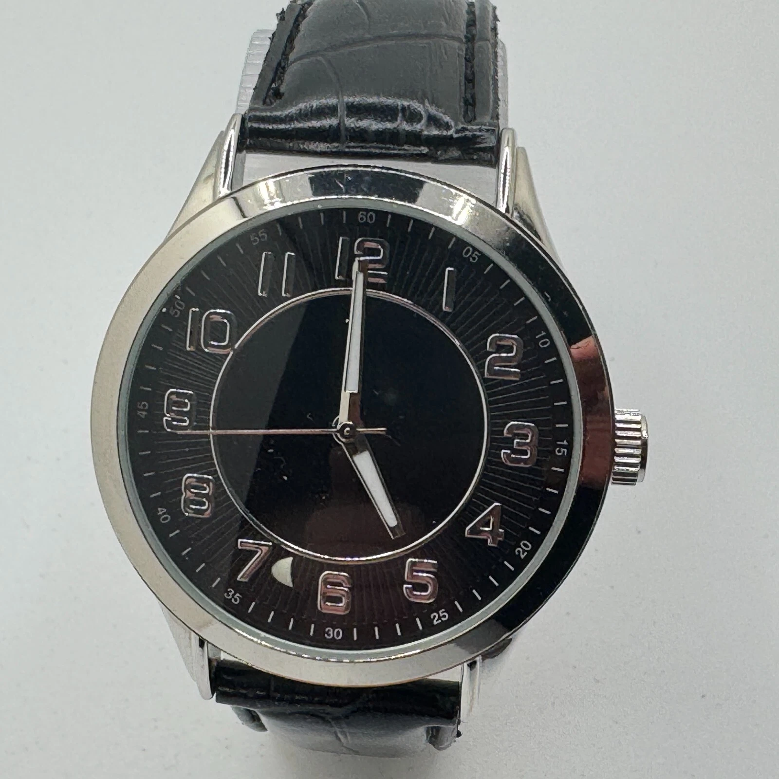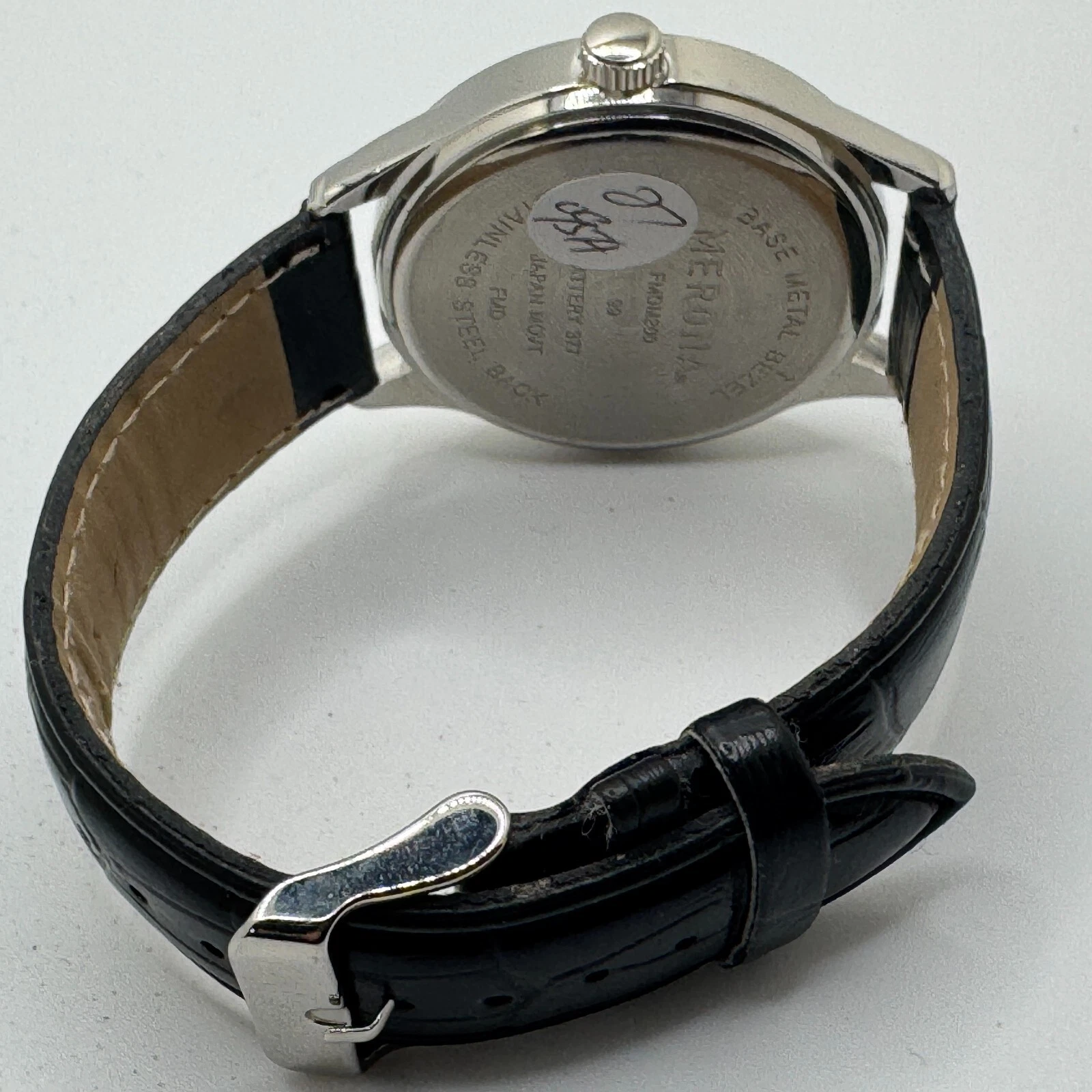 Merona Quartz Watch Men Silver Black Faux Leather Japan Movt Analog New Battery