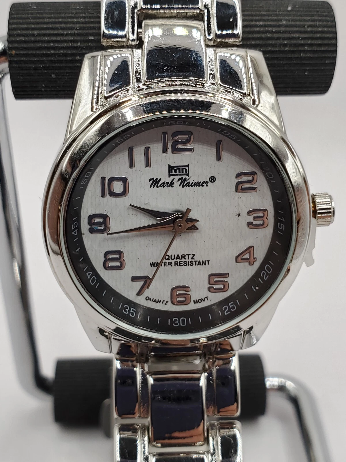 Mark Naimer Men's Fashion Quartz Watch 39mm Round Silver Tone Metal Band