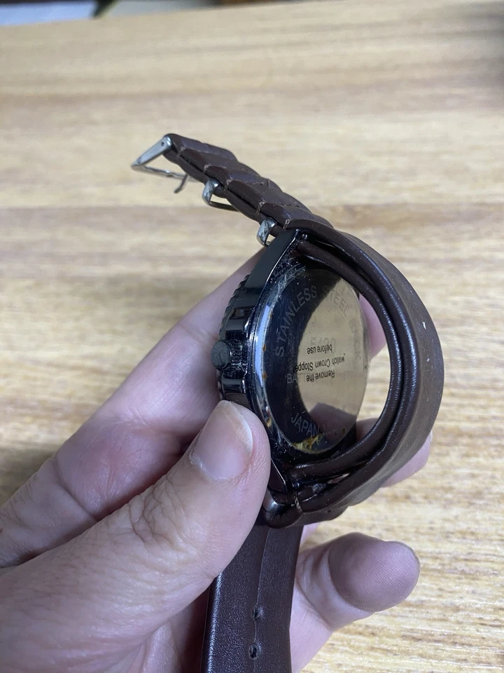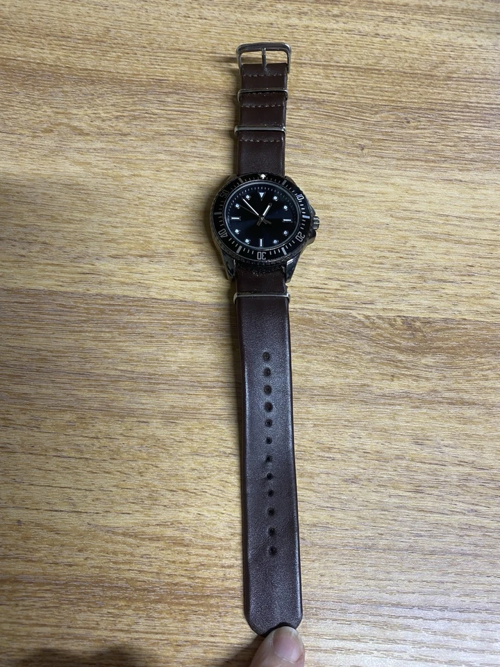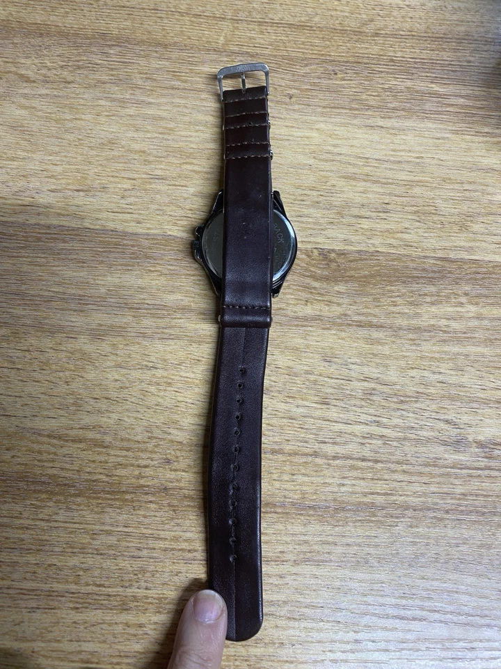 Merona Quartz Watch Men Silver Black Faux Leather Japan Movt Analog
