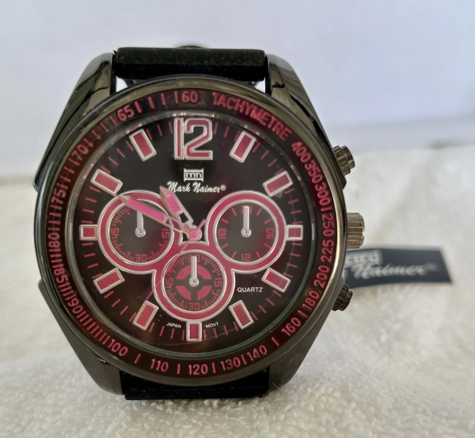 Mark Naimer Men Wristwatch Black Rubber Band Sport Quartz Big Face Watch