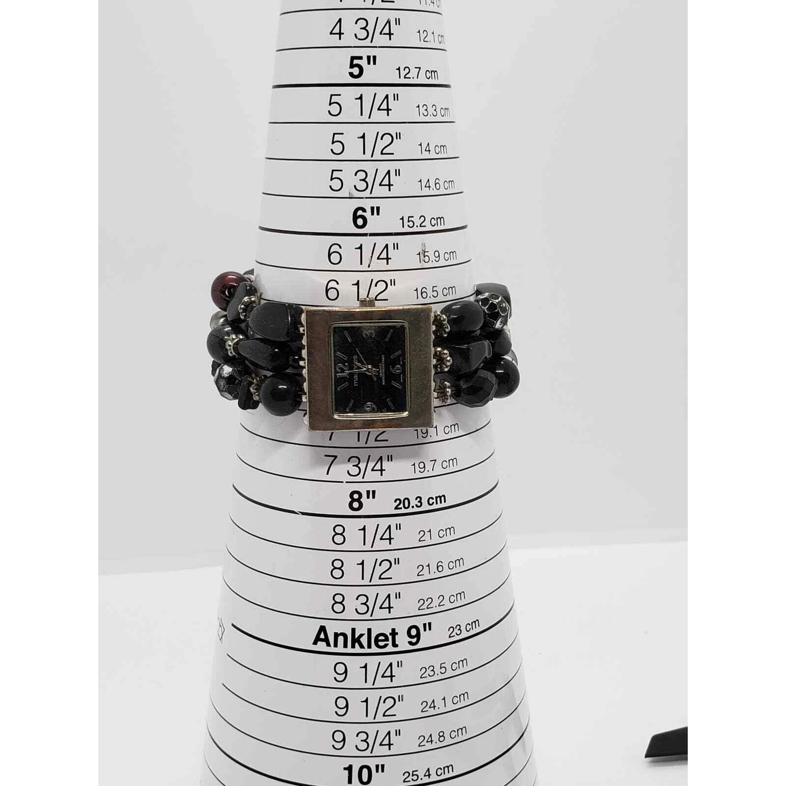 Maurices women's dress watch PL3021S. Square black face beaded band