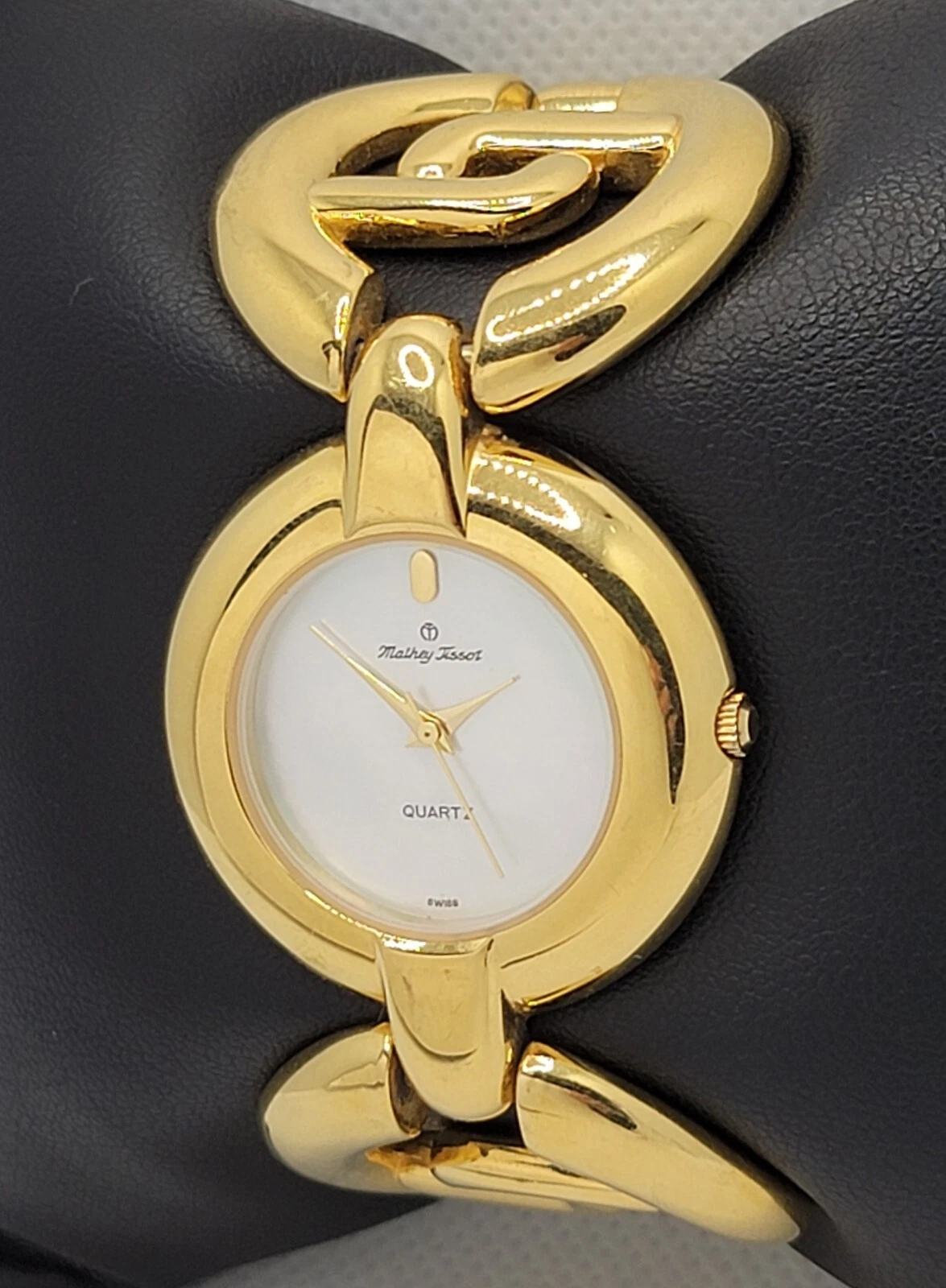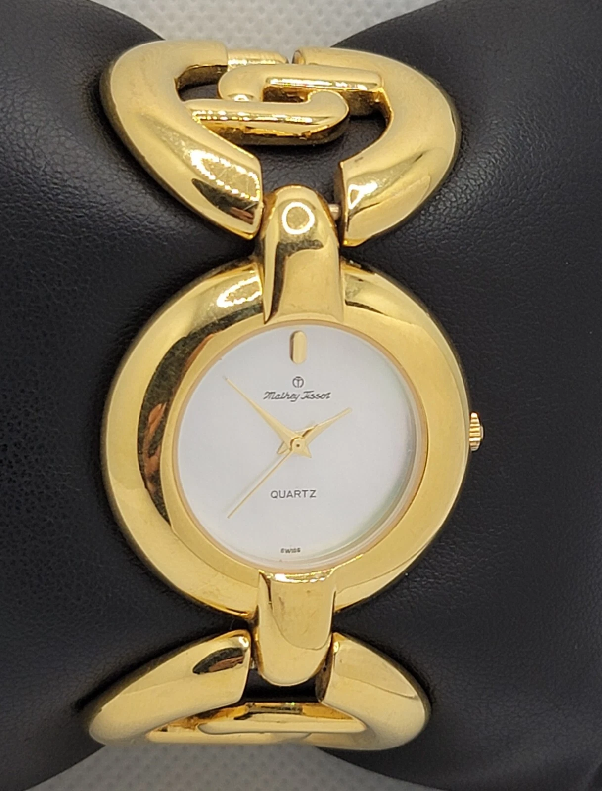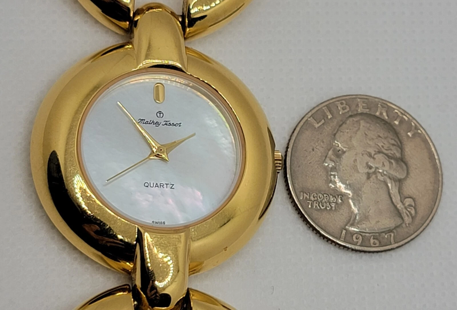 Ladies Mathey Tissot Elegant Gold Tone MoP Dial Bracelet Swiss Quartz Watch M1