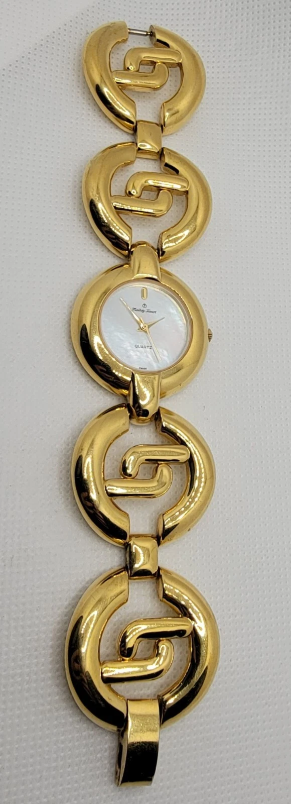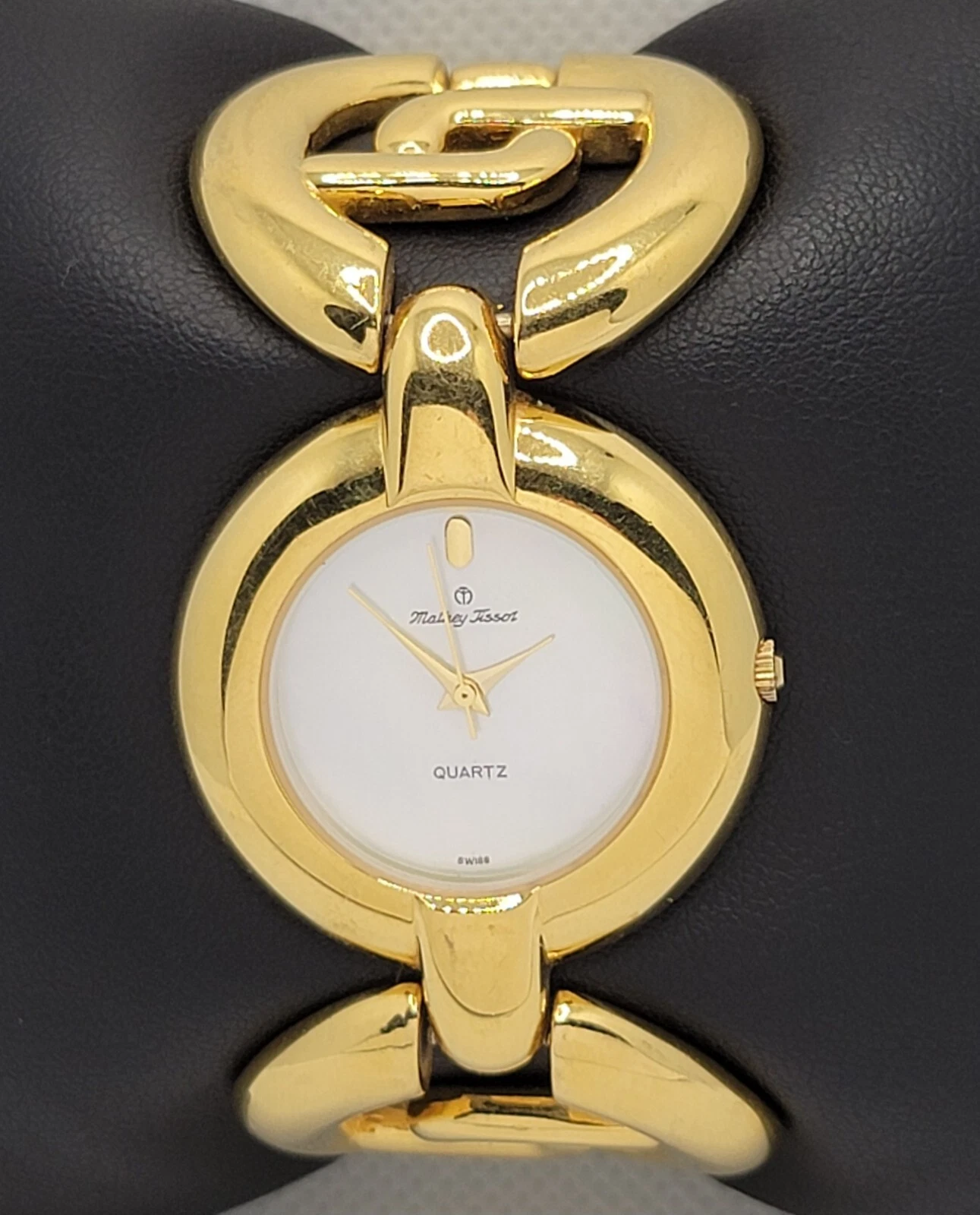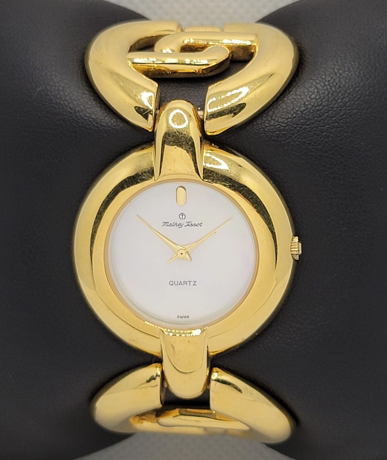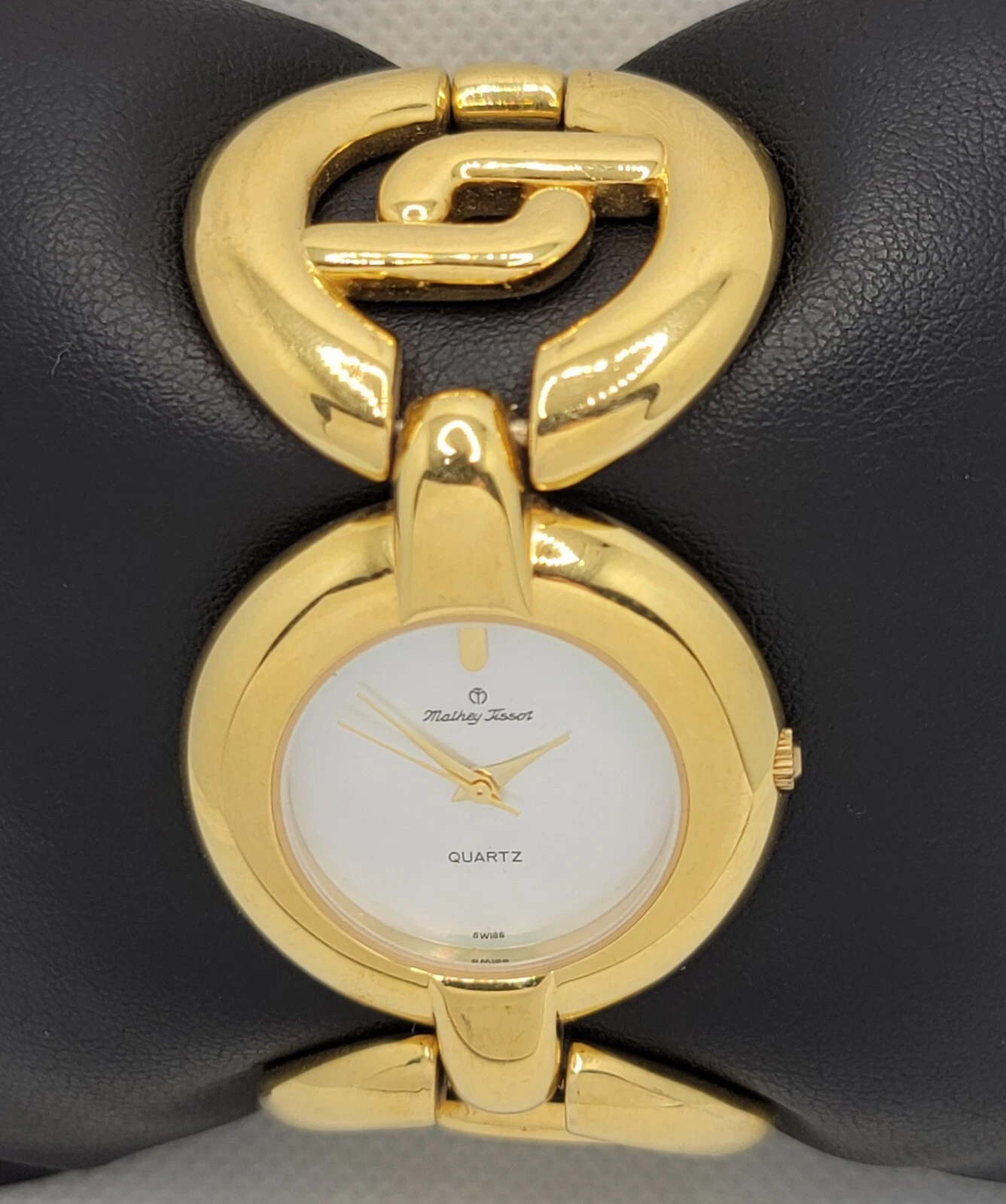 Ladies Mathey Tissot Elegant Gold Tone MoP Dial Bracelet Swiss Quartz Watch M1