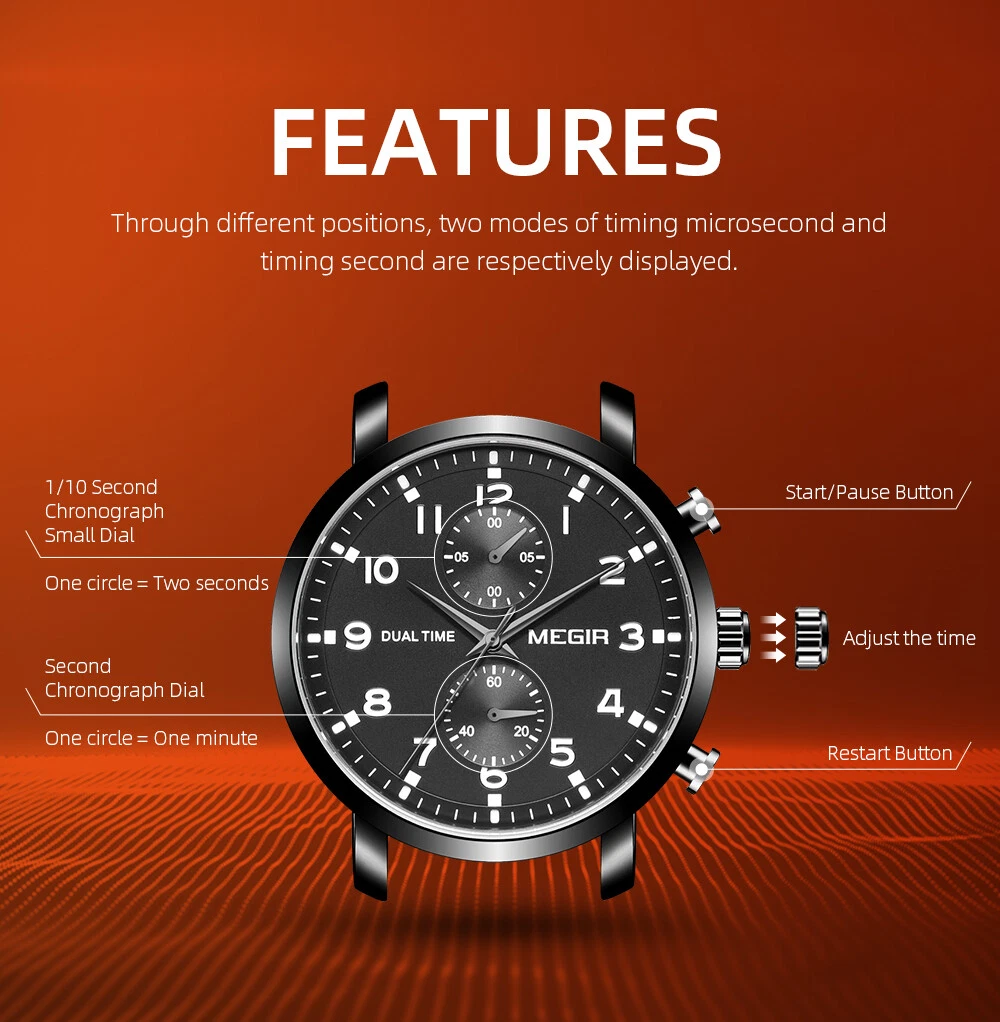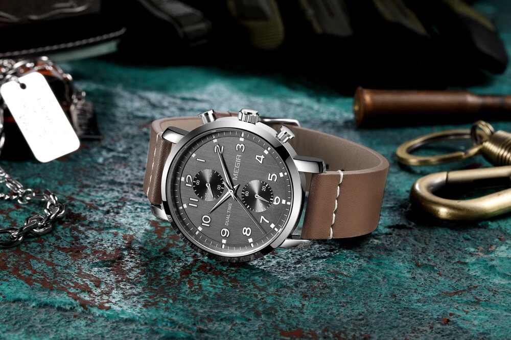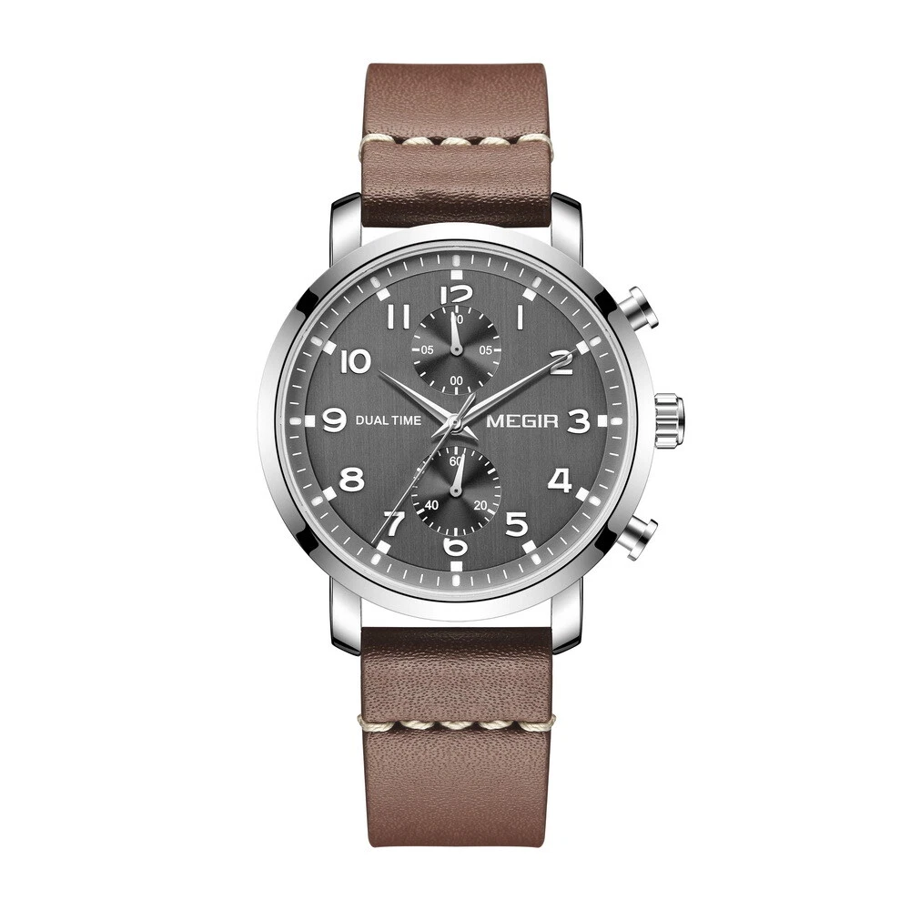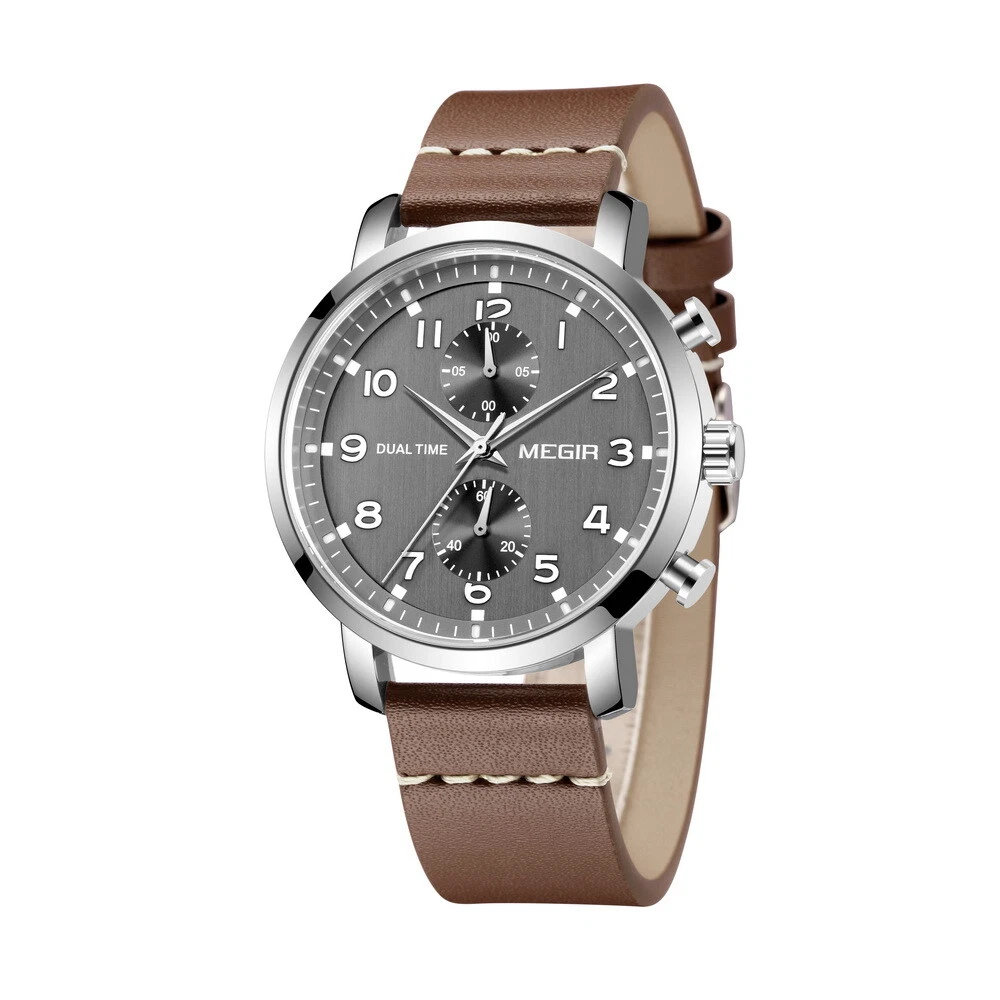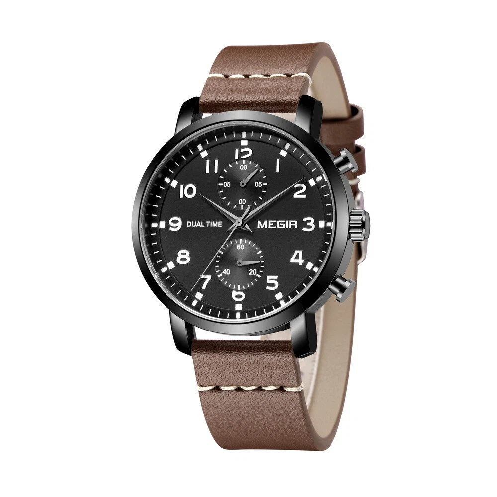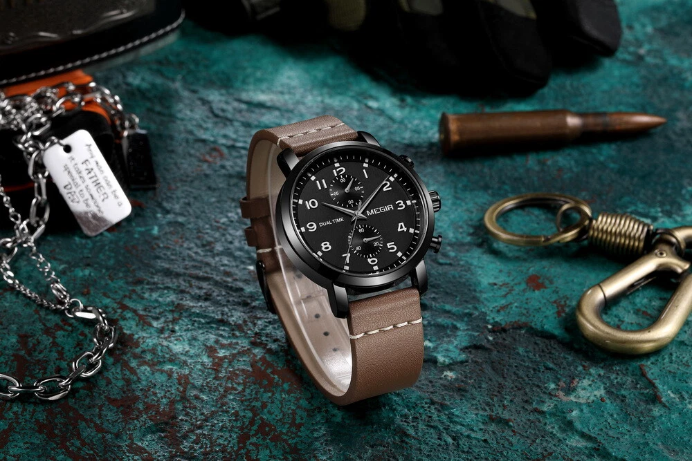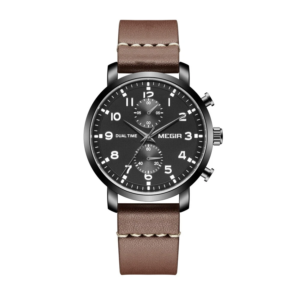 MEGIR Men Leather/Steel Multifunction Chronograph Luminous Business Quartz Watch