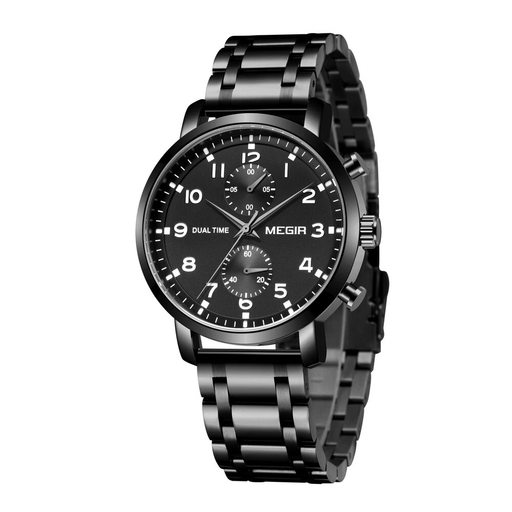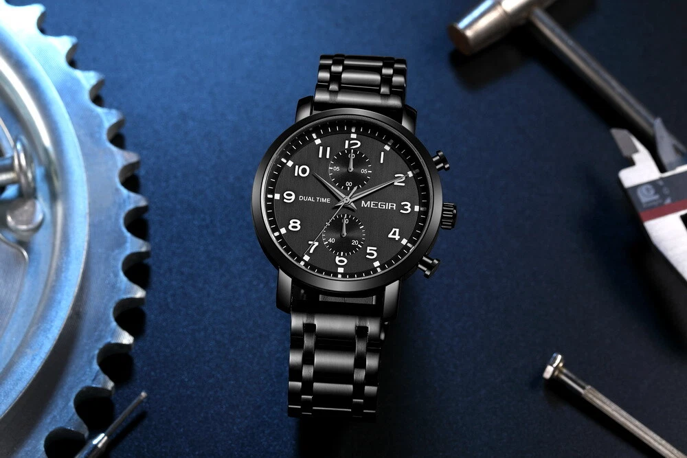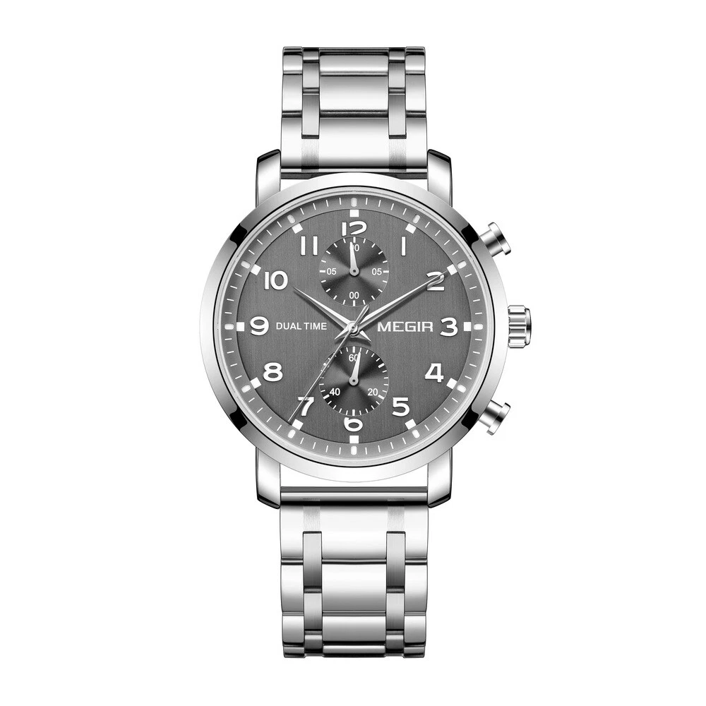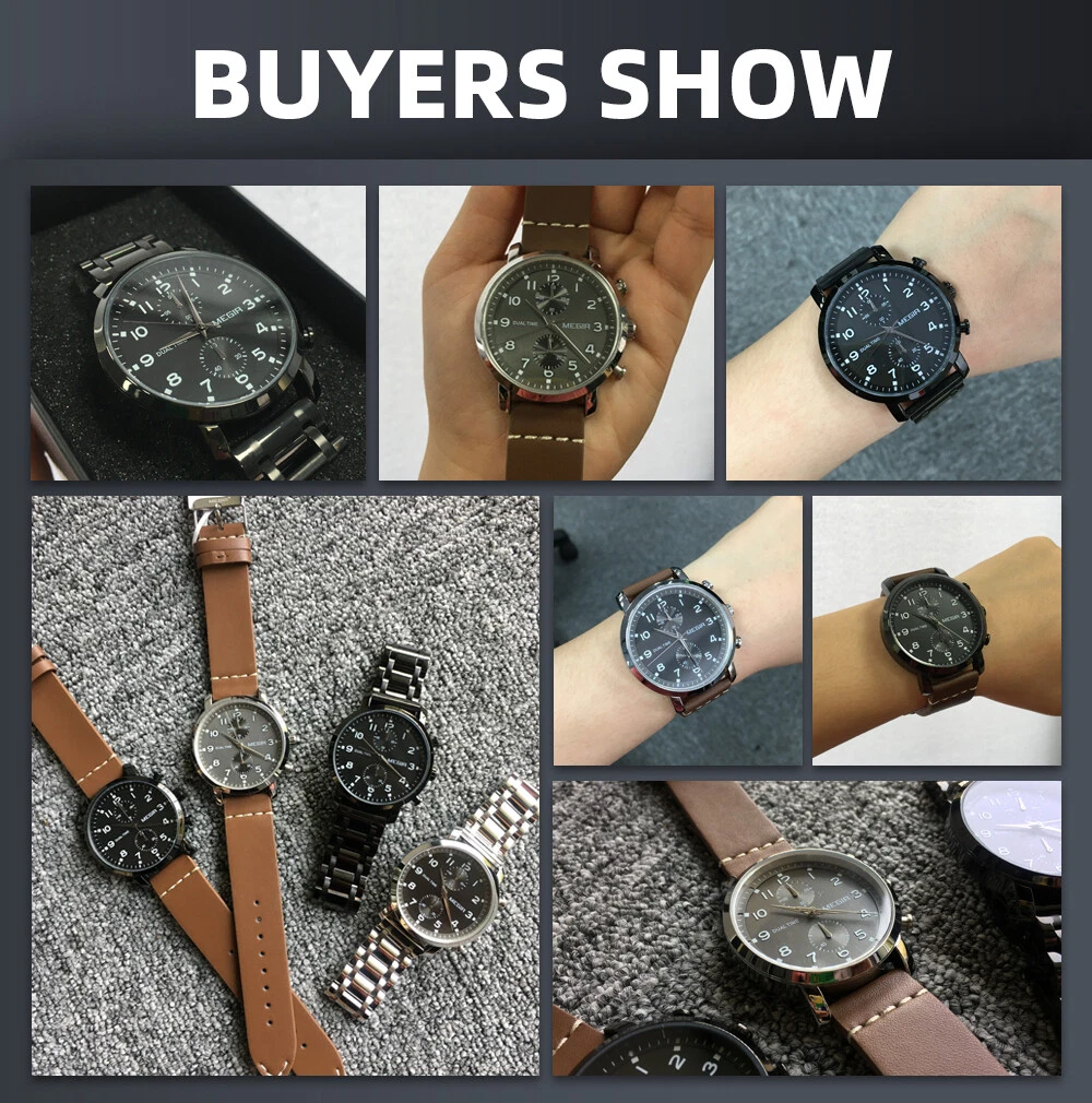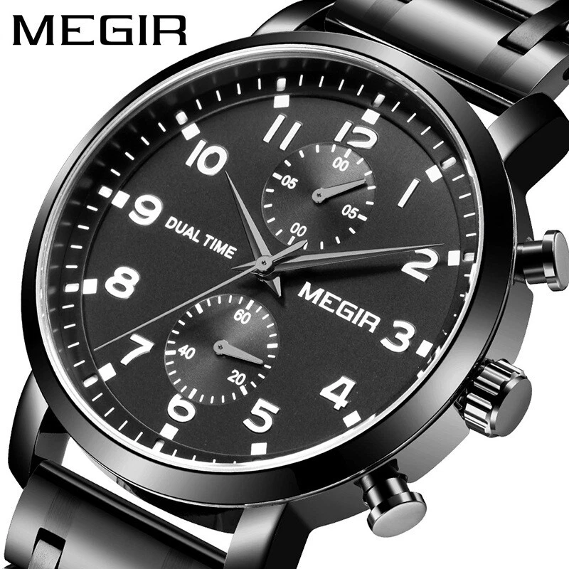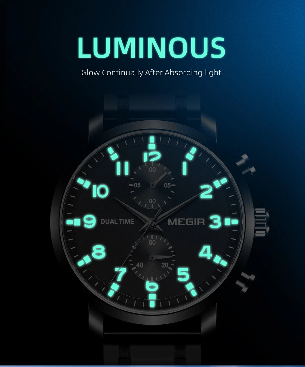 MEGIR Men Leather/Steel Multifunction Chronograph Luminous Business Quartz Watch