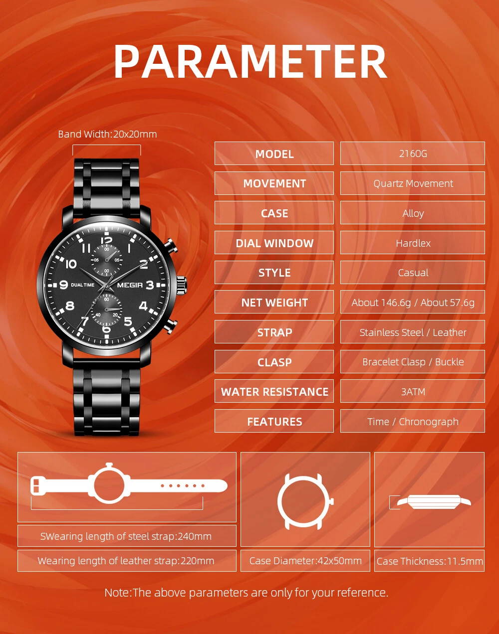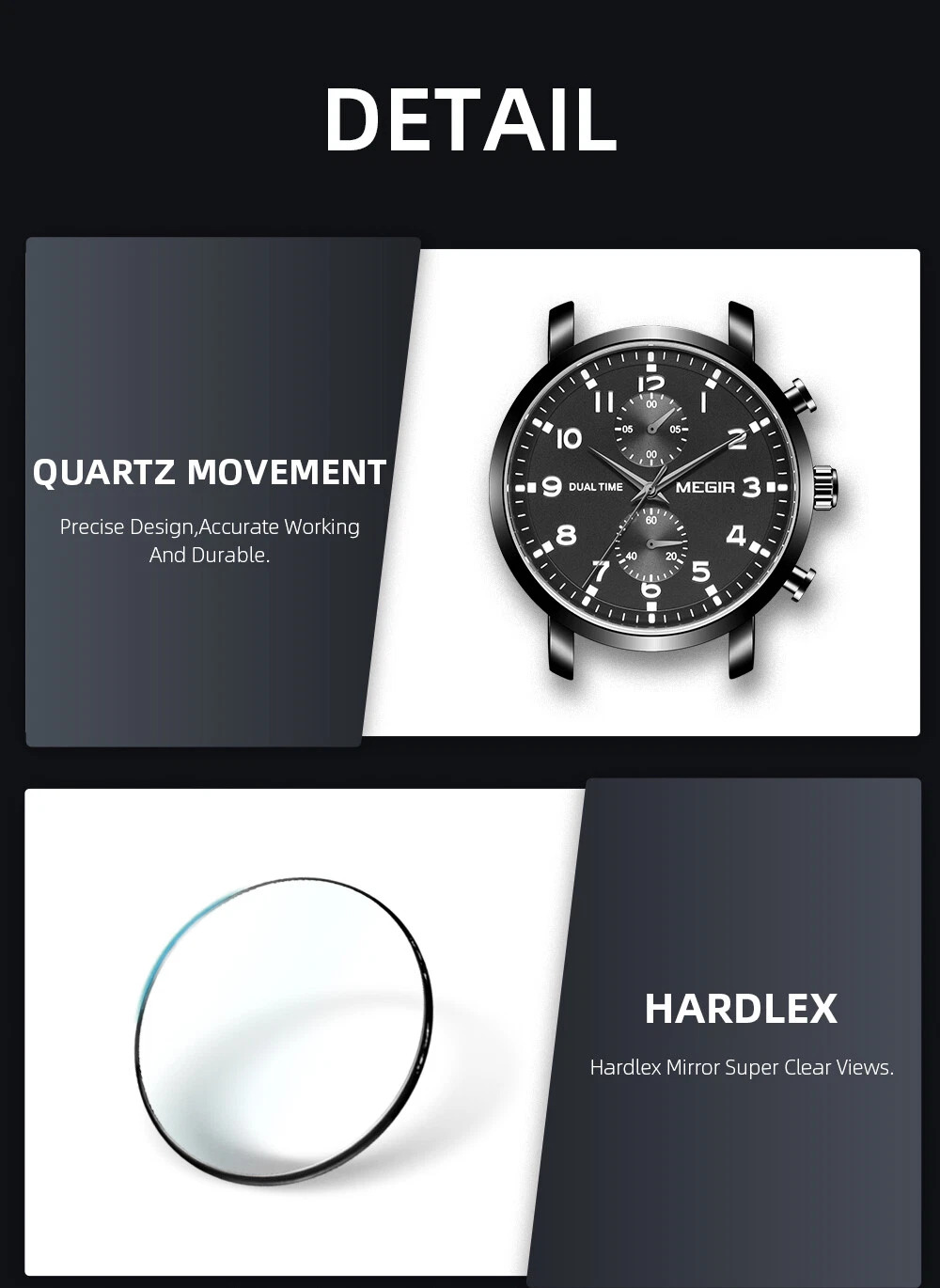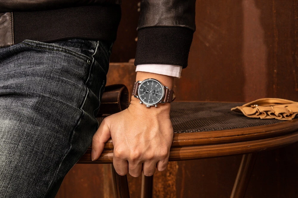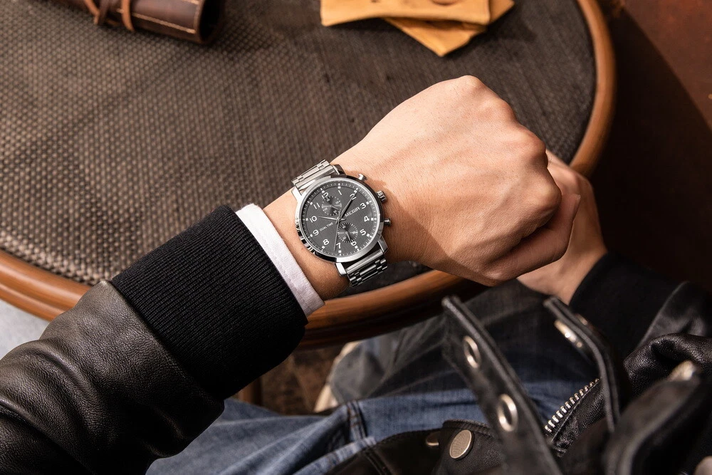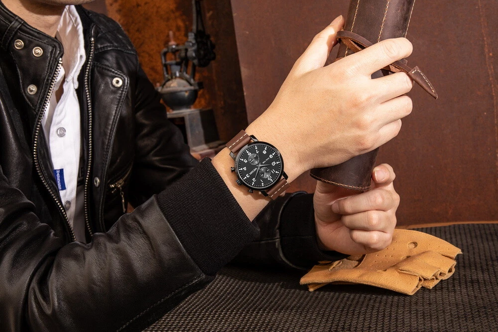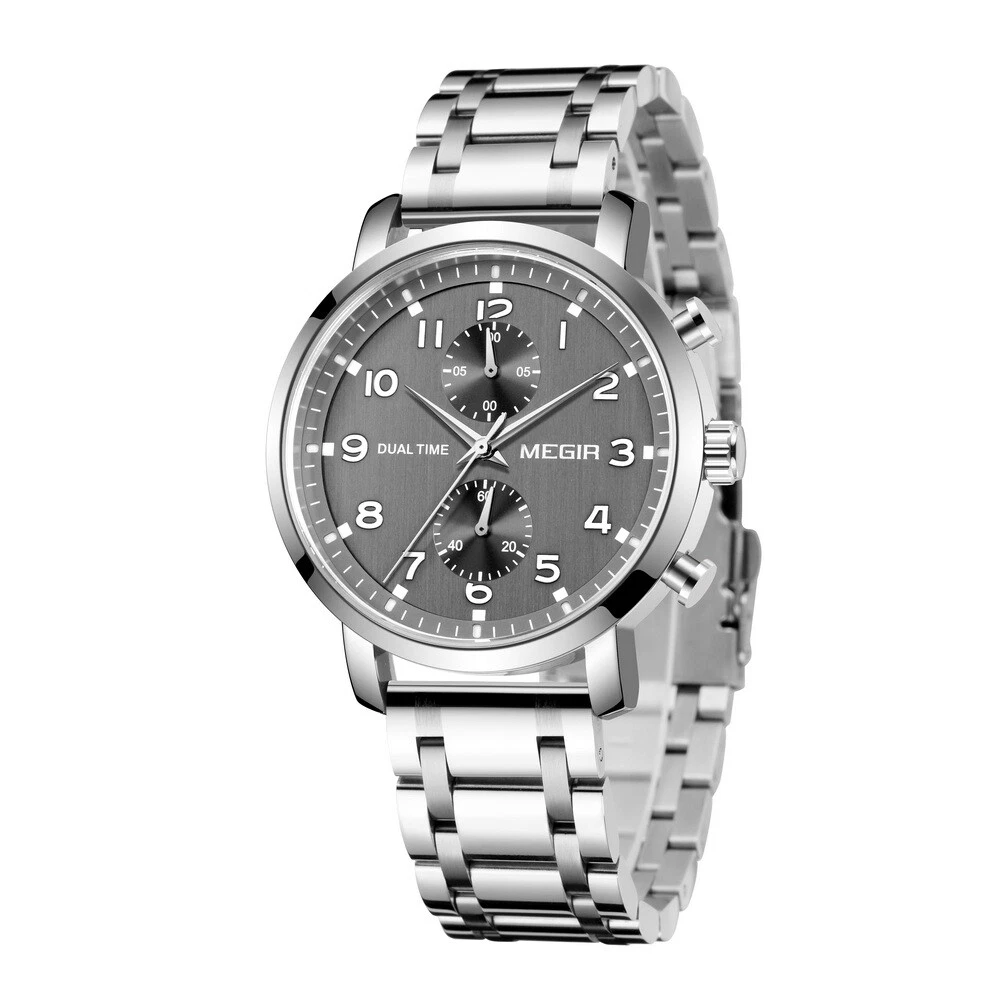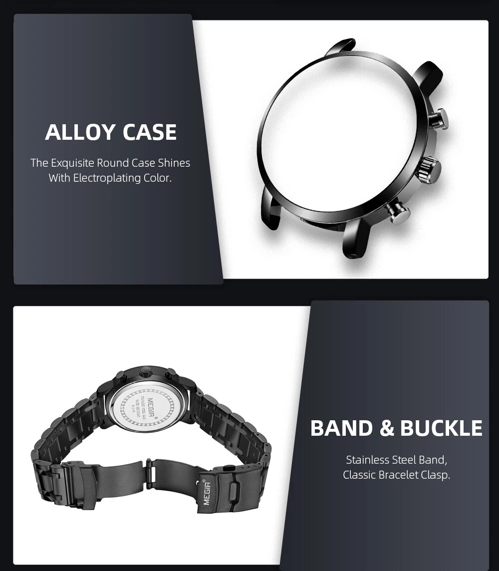 MEGIR Men Leather/Steel Multifunction Chronograph Luminous Business Quartz Watch