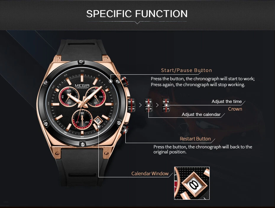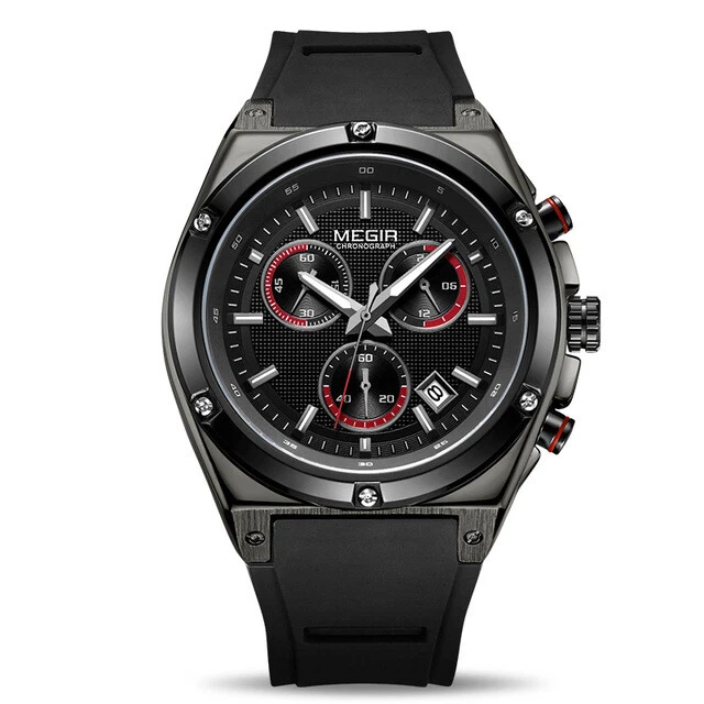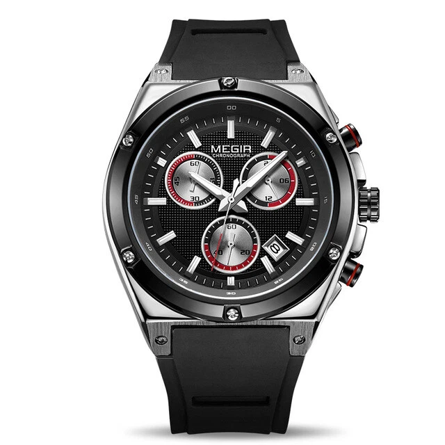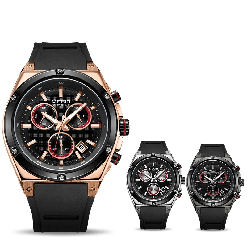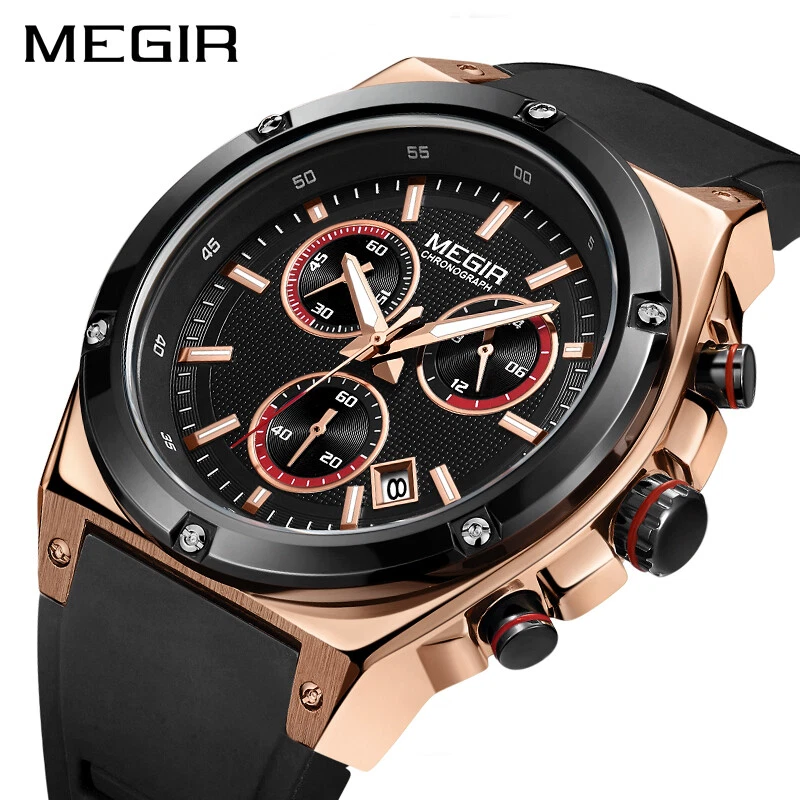 Megir Watch Sport Watches Men Quartz Waterproof Silicone Army Military Wristwatc
