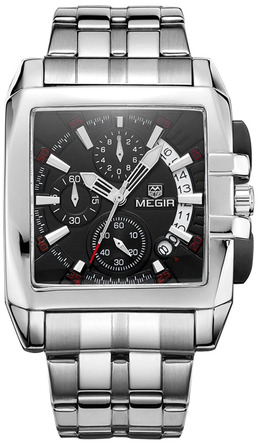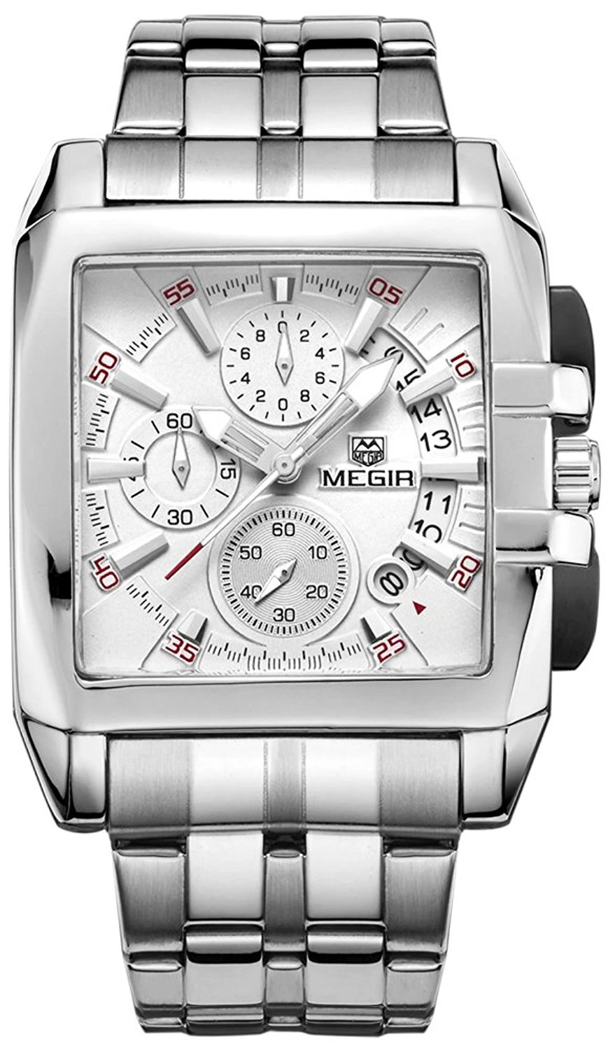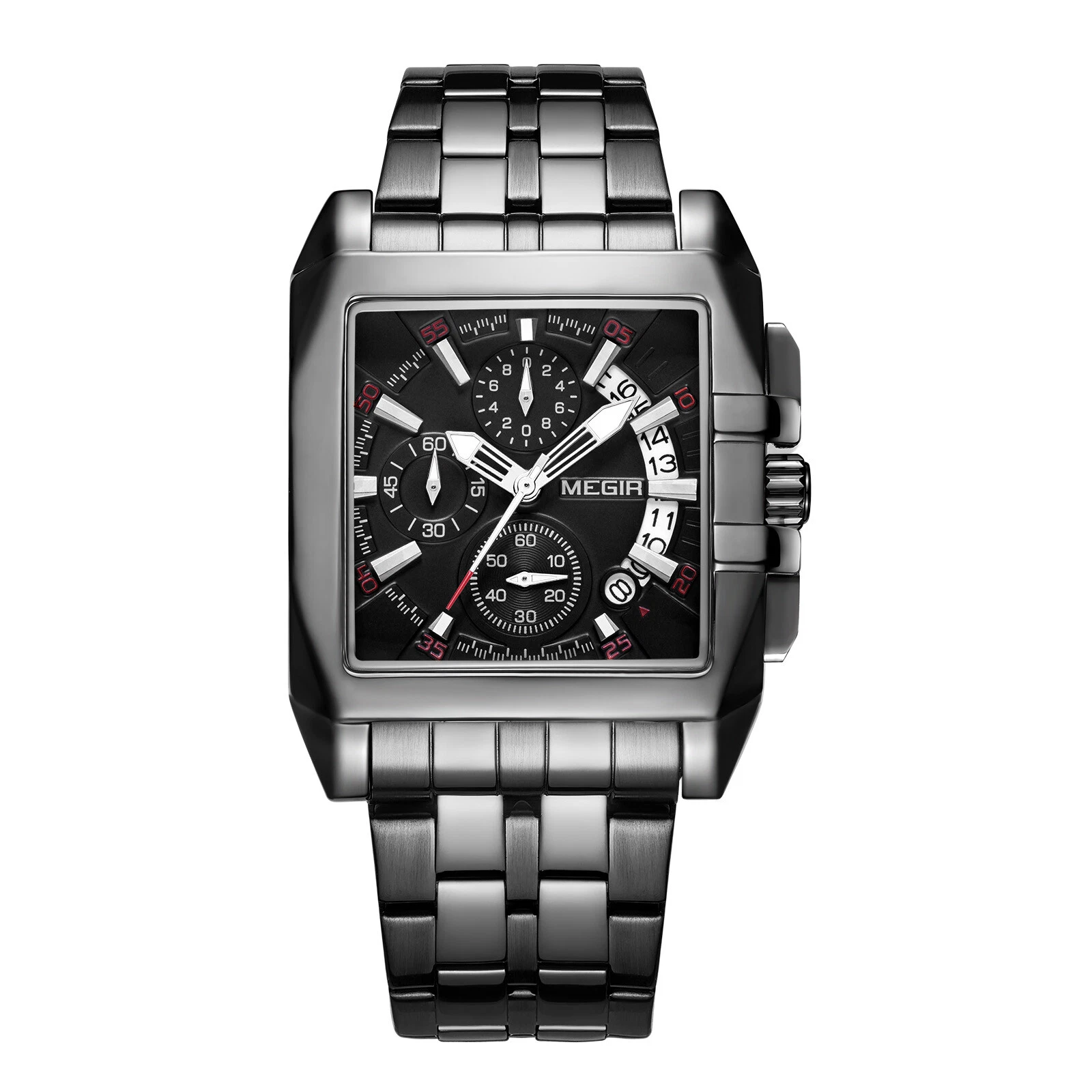 Megir Mens Stainless Steel Chronograph Luminous Rectangle Analogue Quartz Watche