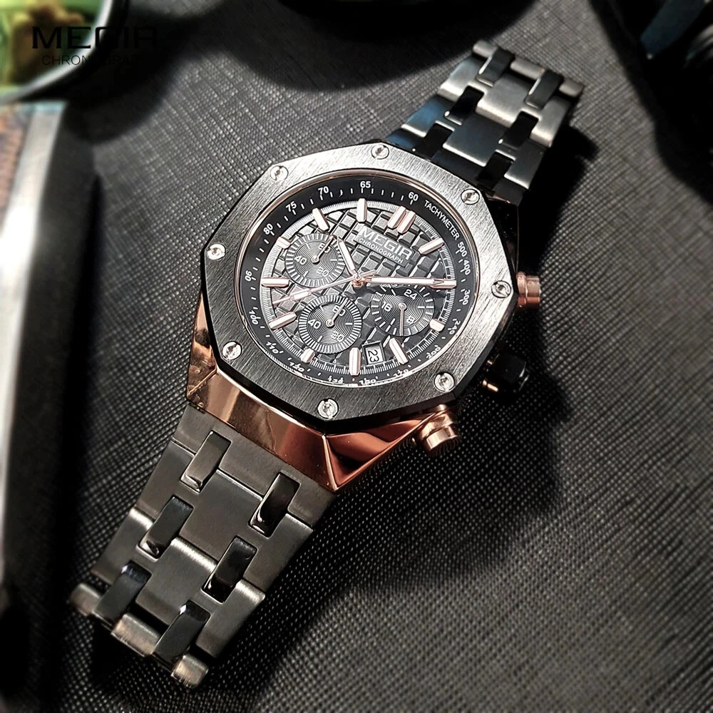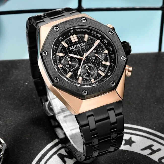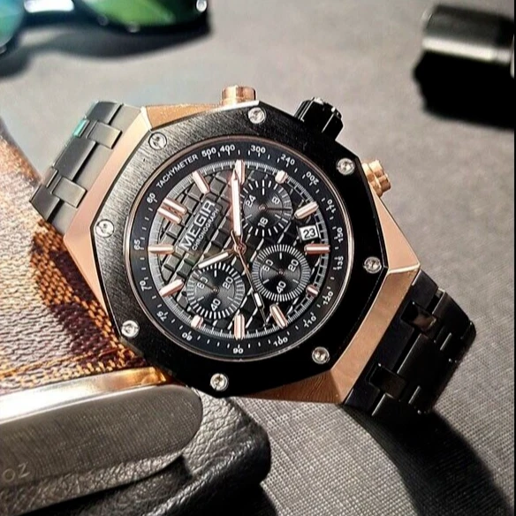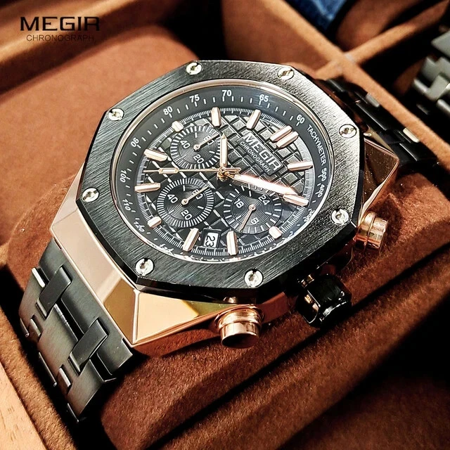 MEGIR "Royal Oak" Quartz Fashion Watch Stainless Waterproof Luminous Diver NEW
