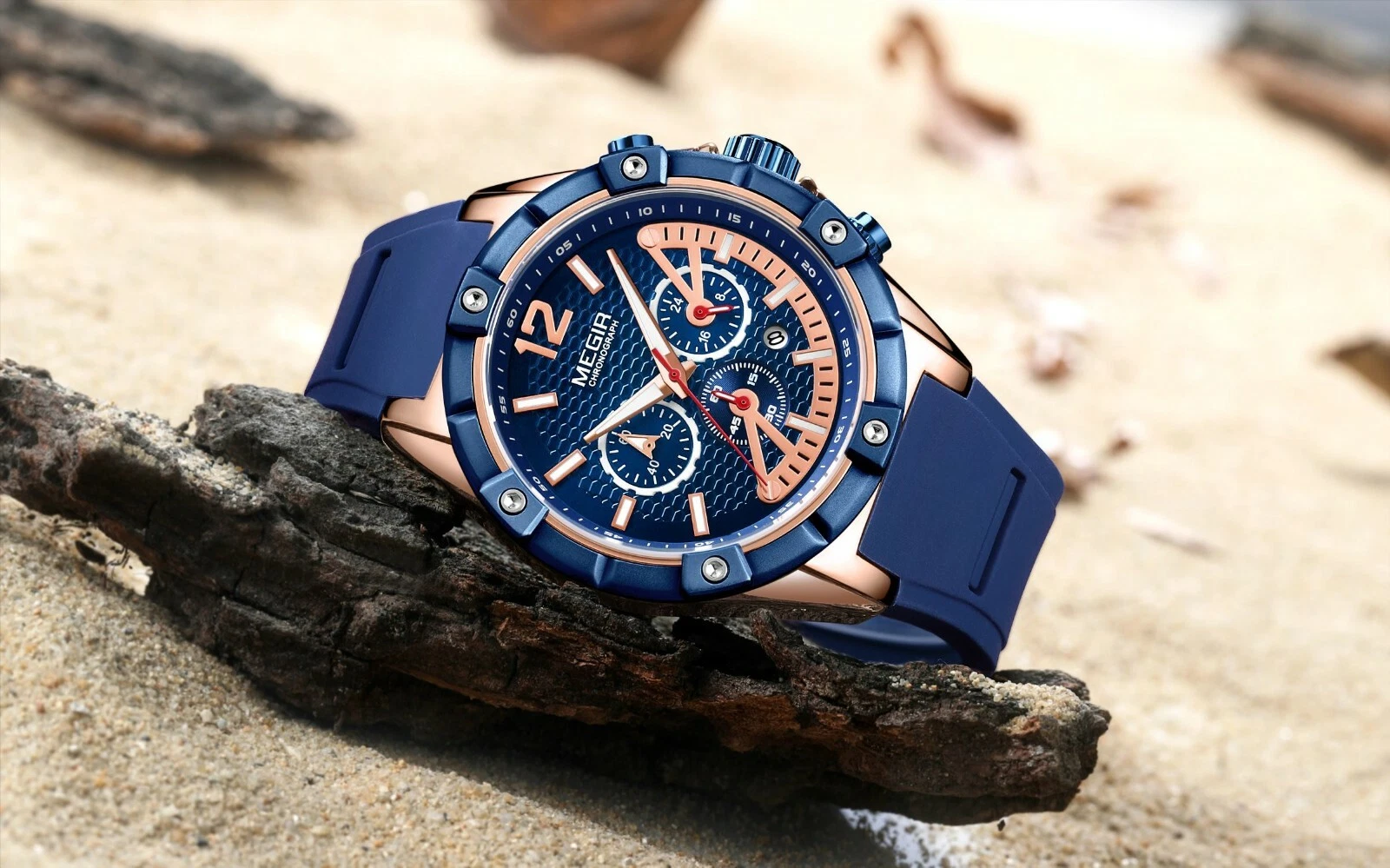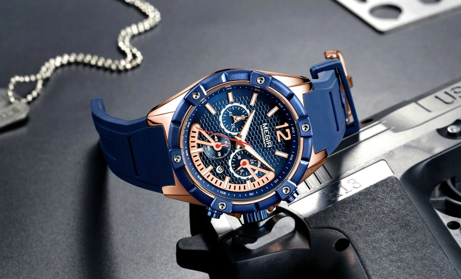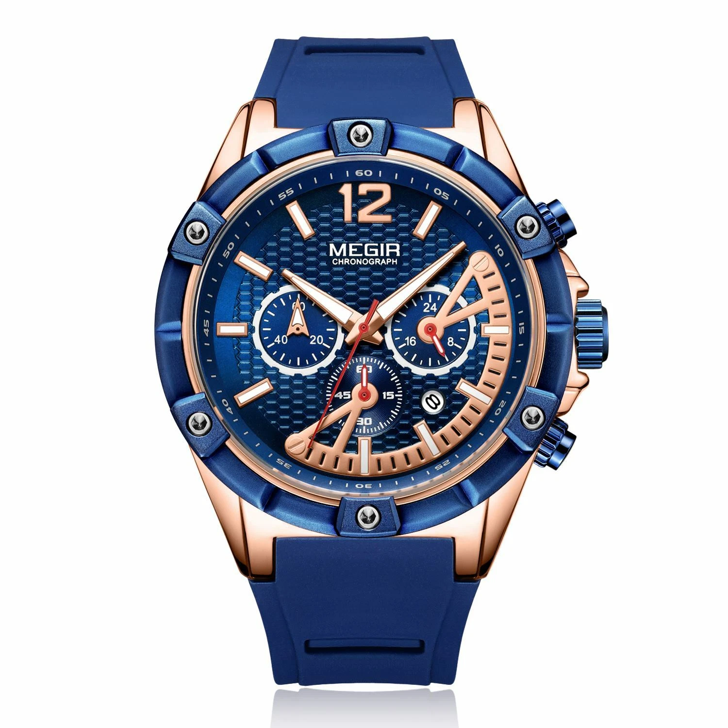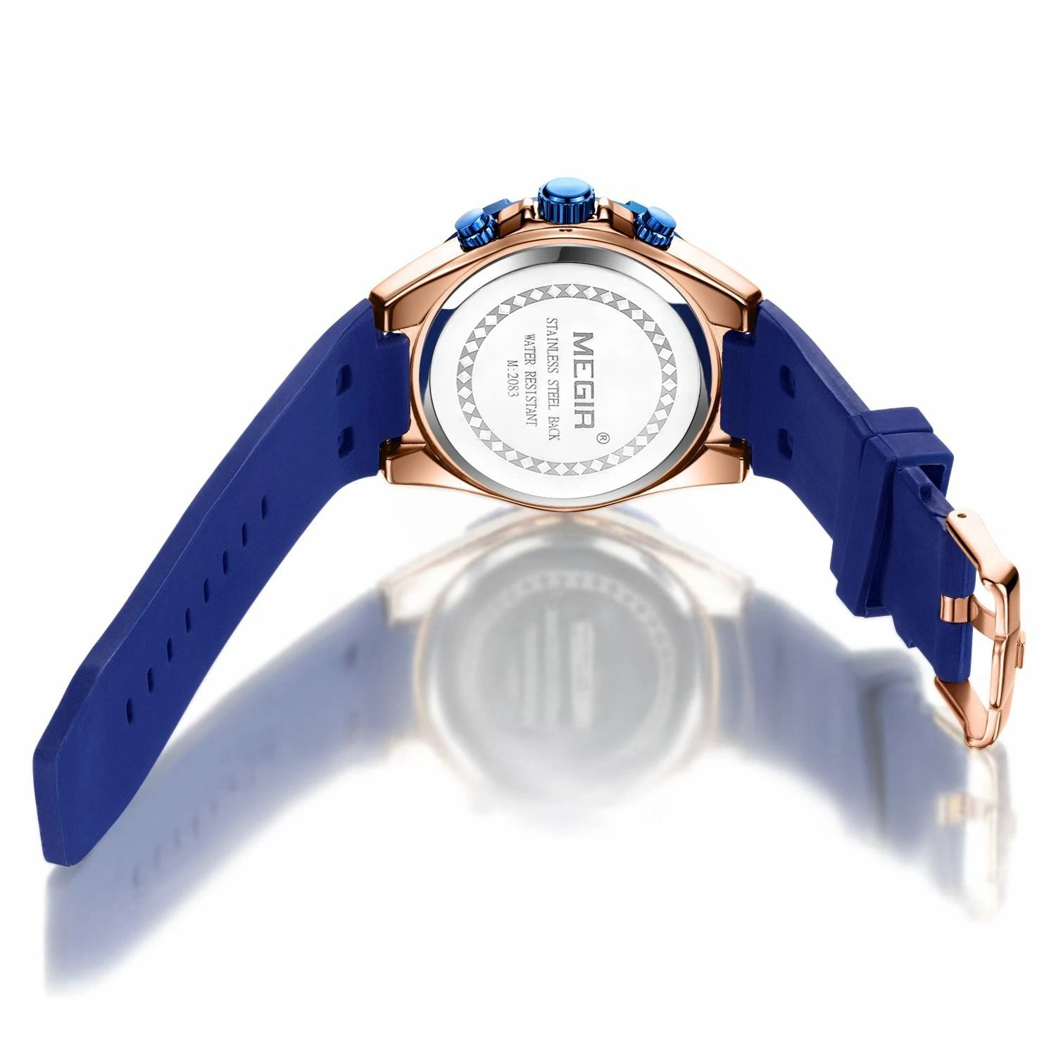 Megir Men's Watches Quartz Movement Alloy Case Silicone Strap Blue 2083G