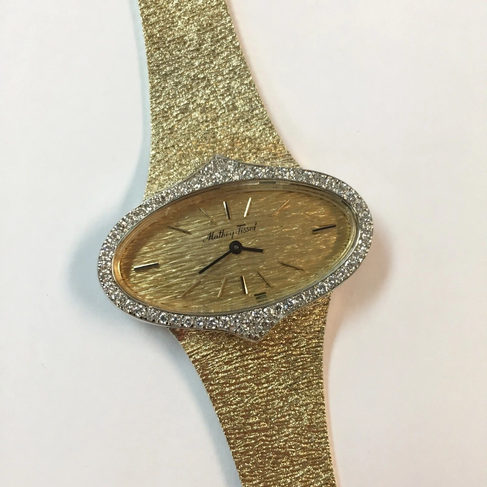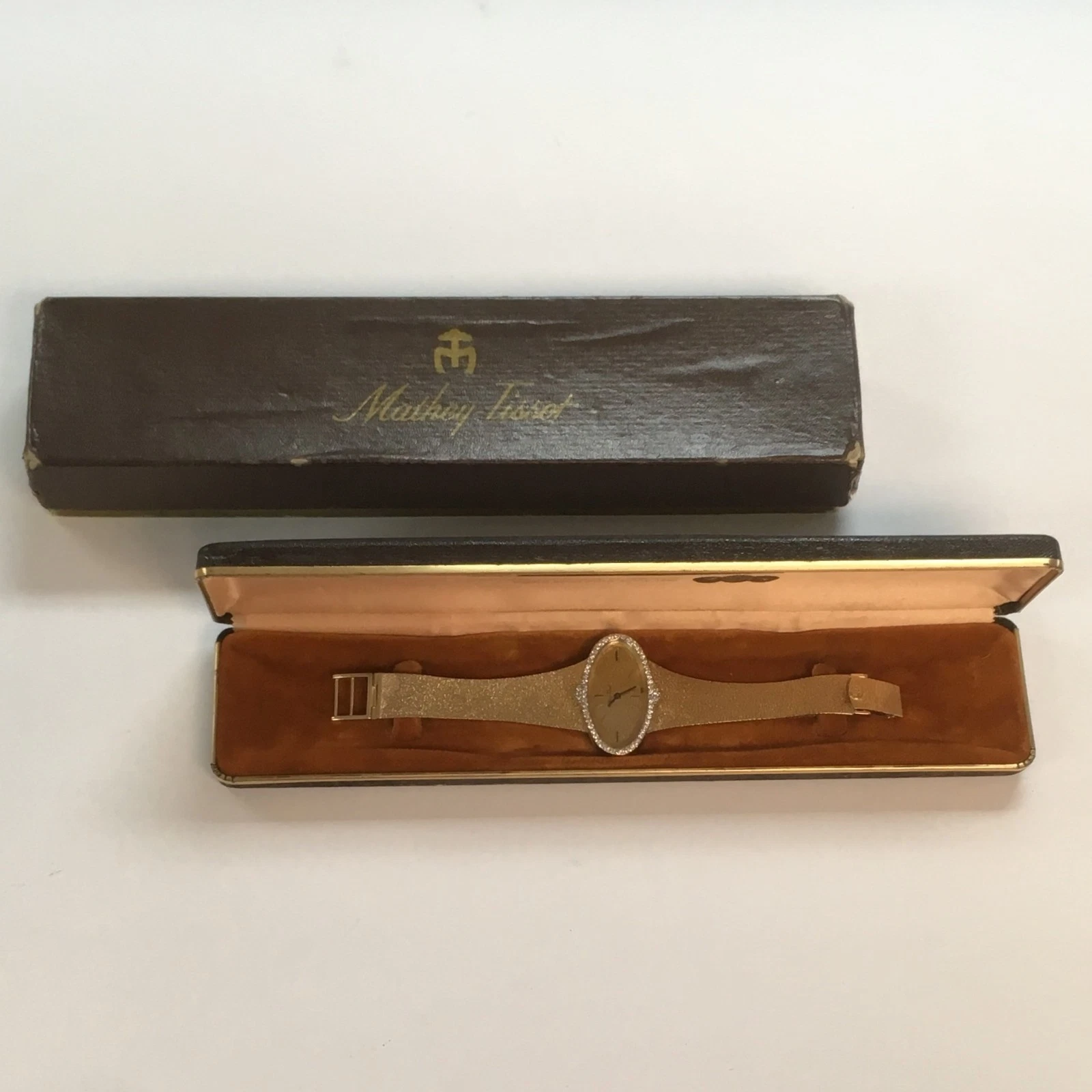 VERY UNIQUE Mathey-Tissot 14k Ladies Vintage Gold and Diamond Watch w/ Box
