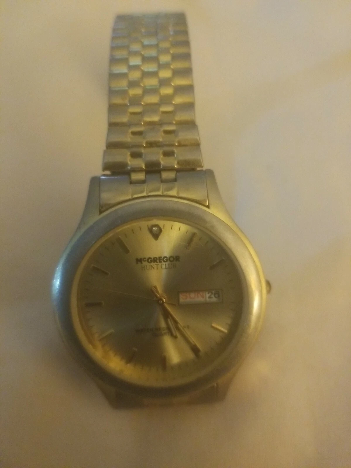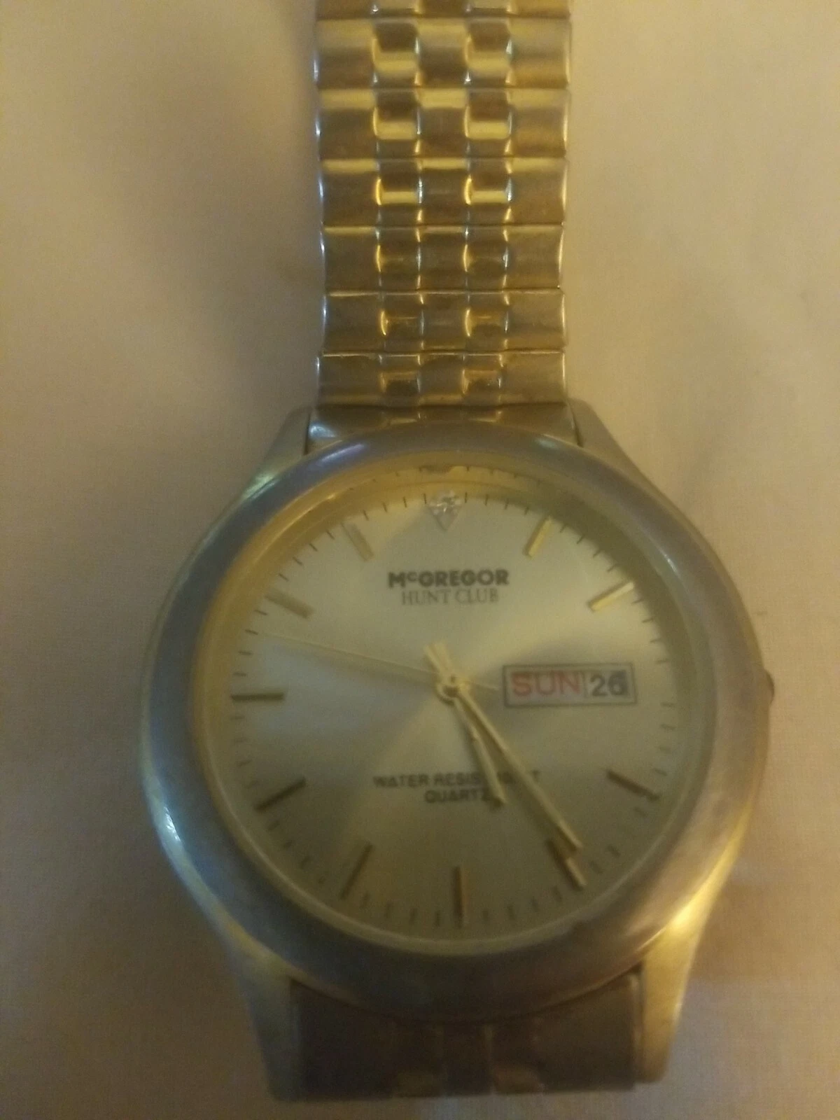 Vintage Mens McGregor Hunt Club Gold Toned Black Dial Analog Watch LMP003 C6