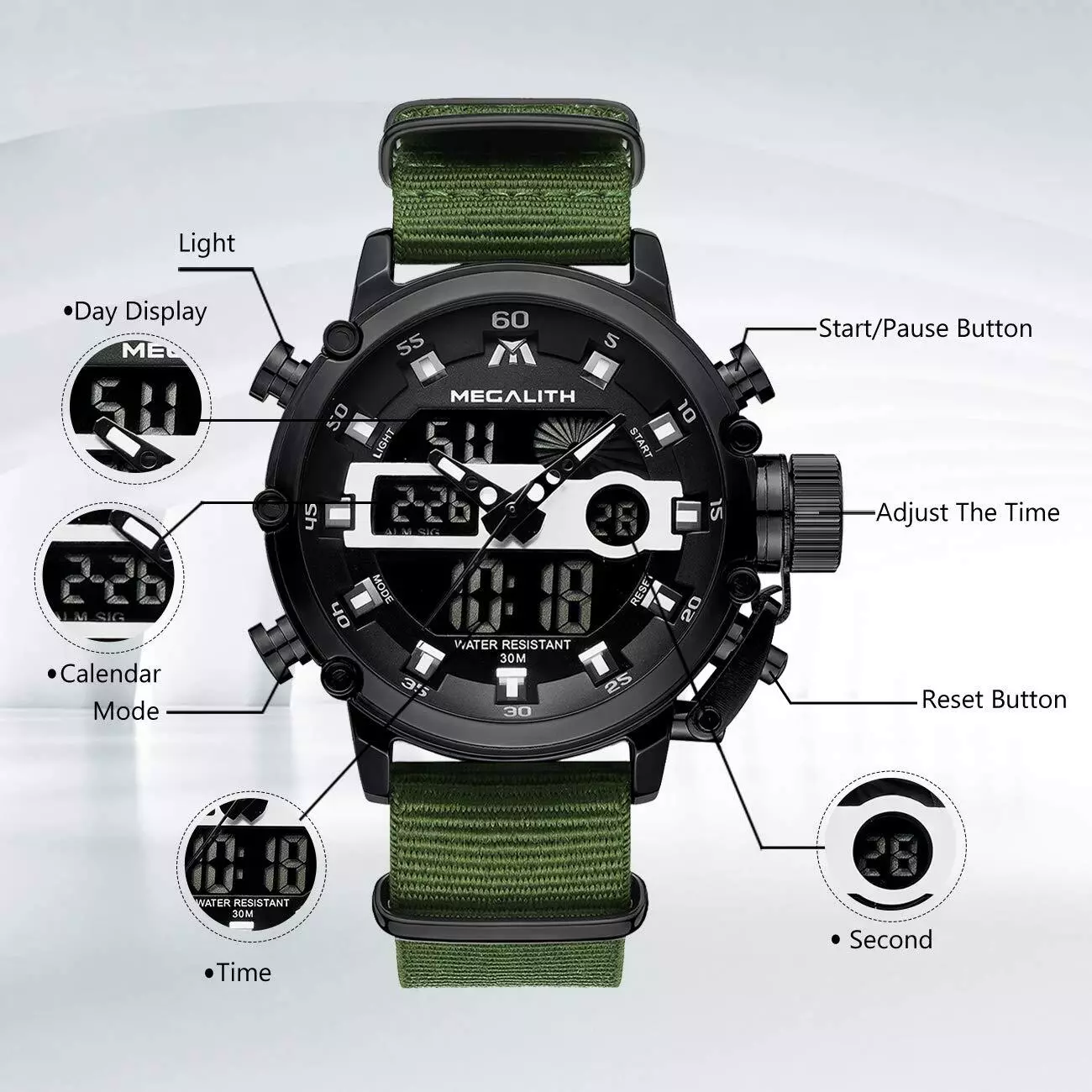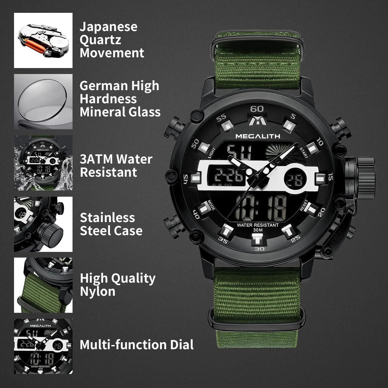 Mens Watches with Nylon Waterproof Digital Military Sport Tactical Multifunct...
