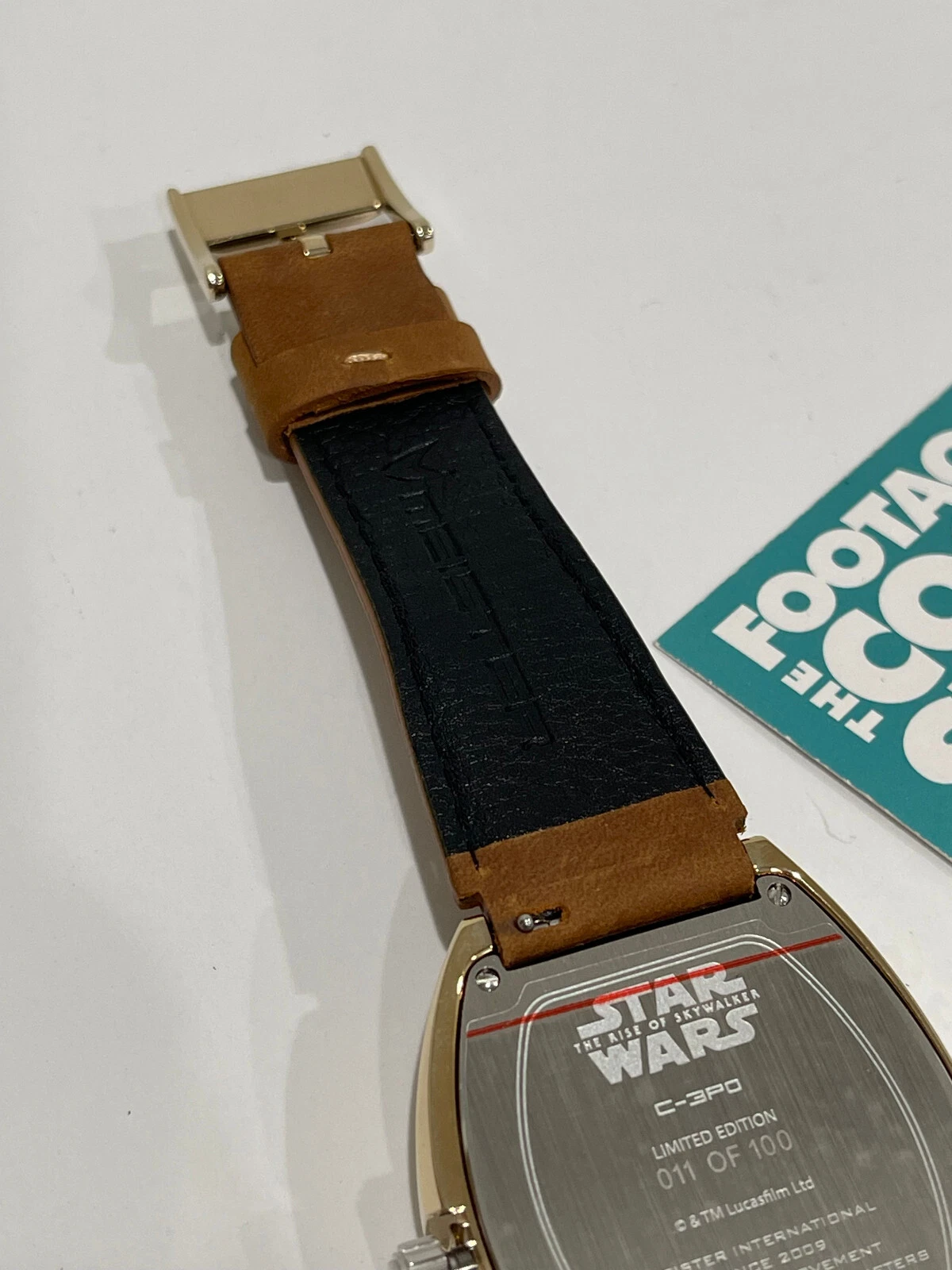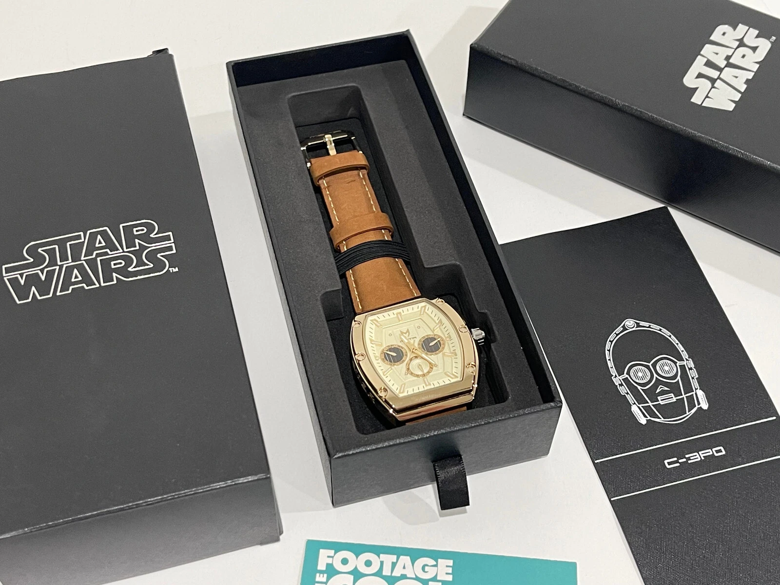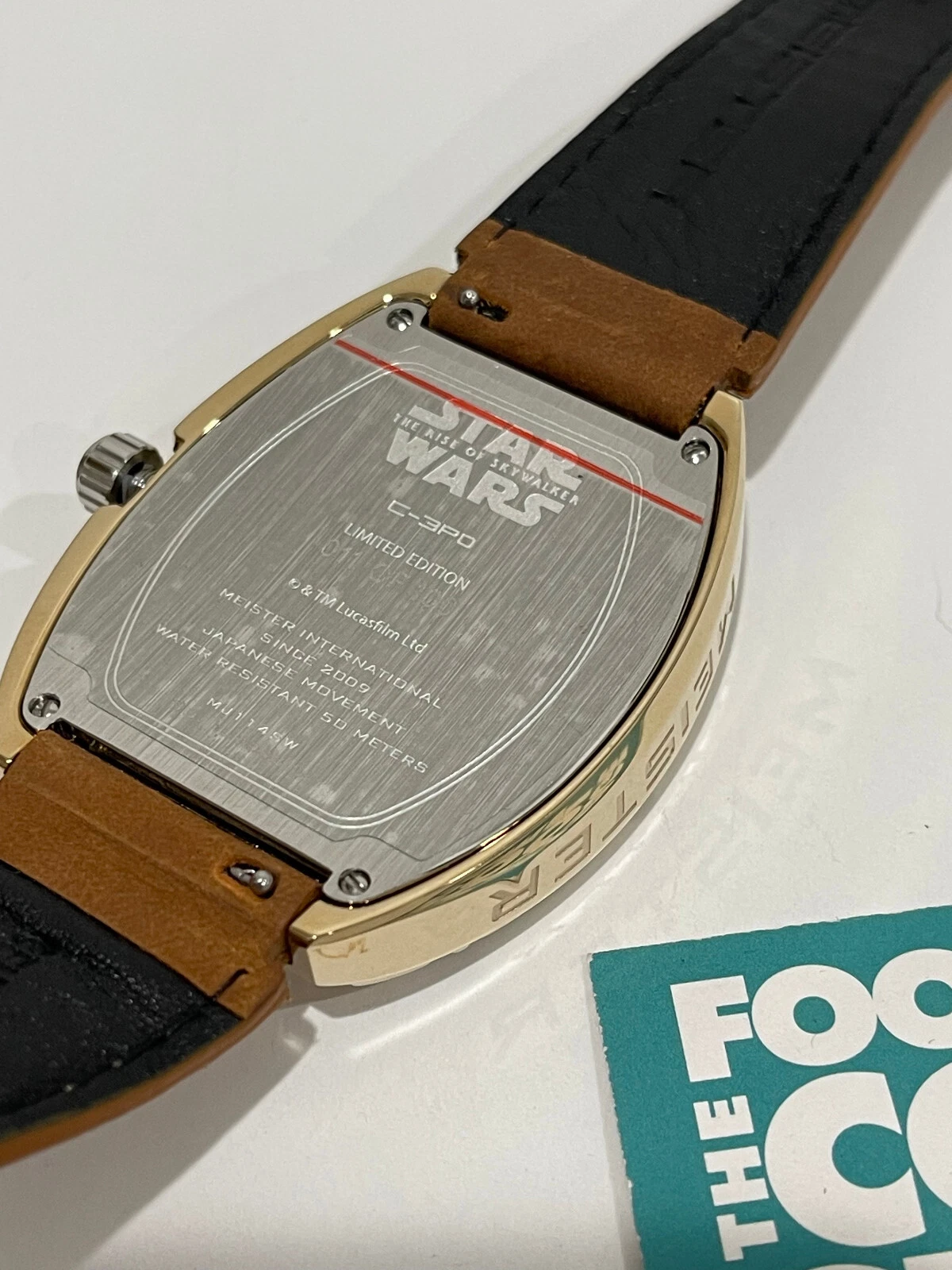 MEISTER MAJOR POLISHED GOLD STAR WARS SKYWALKER C-3PO WATCH GOLD BROWN NEW