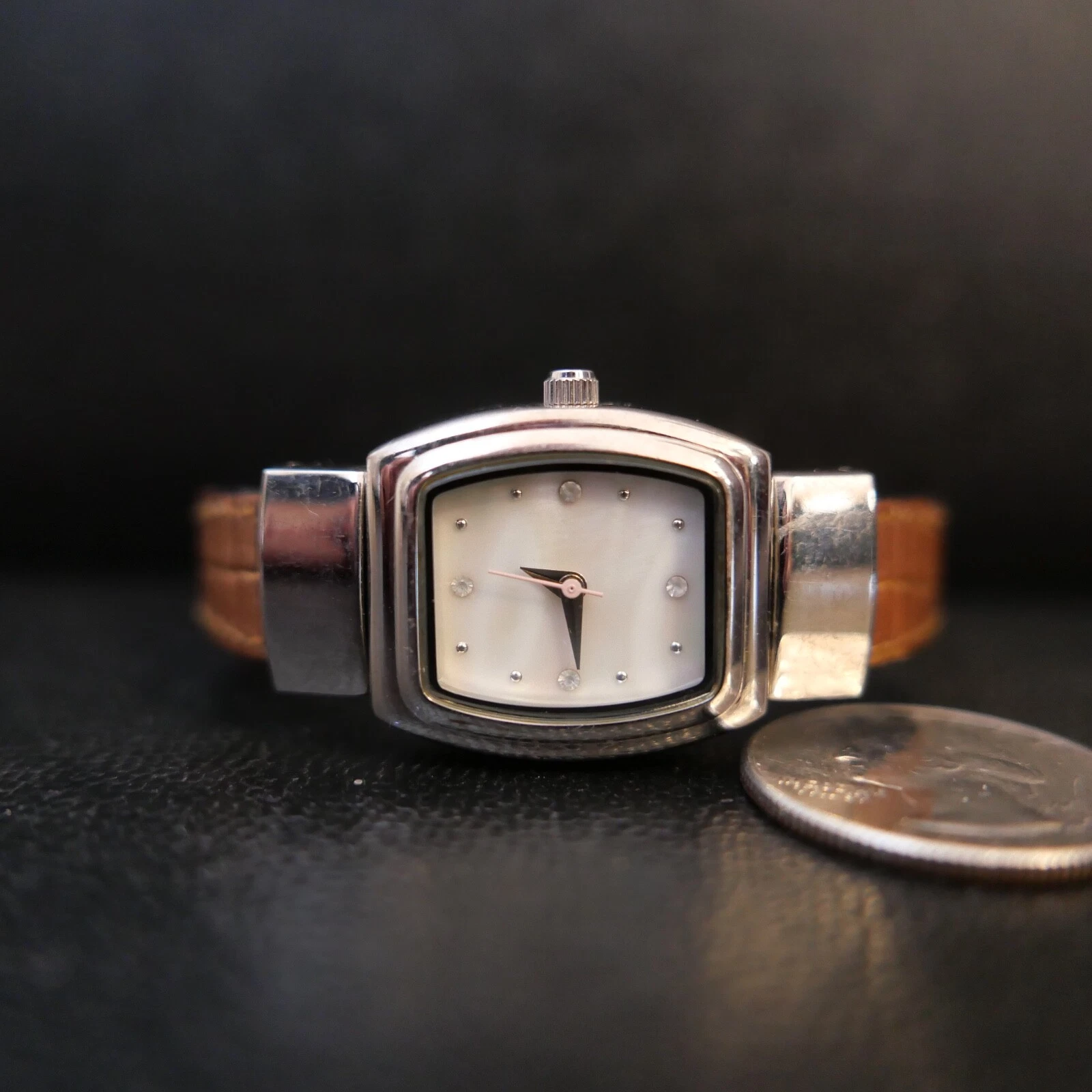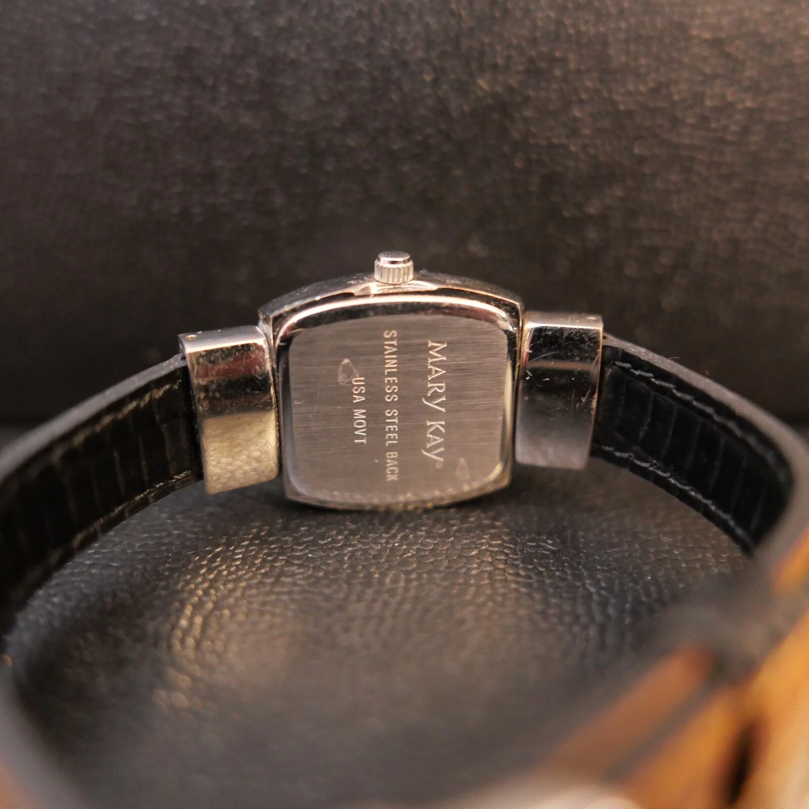 MARY KAY WATCH MOTHER OF PEARL BLACK/BROWN REVERSIBLE LEATHER BAND