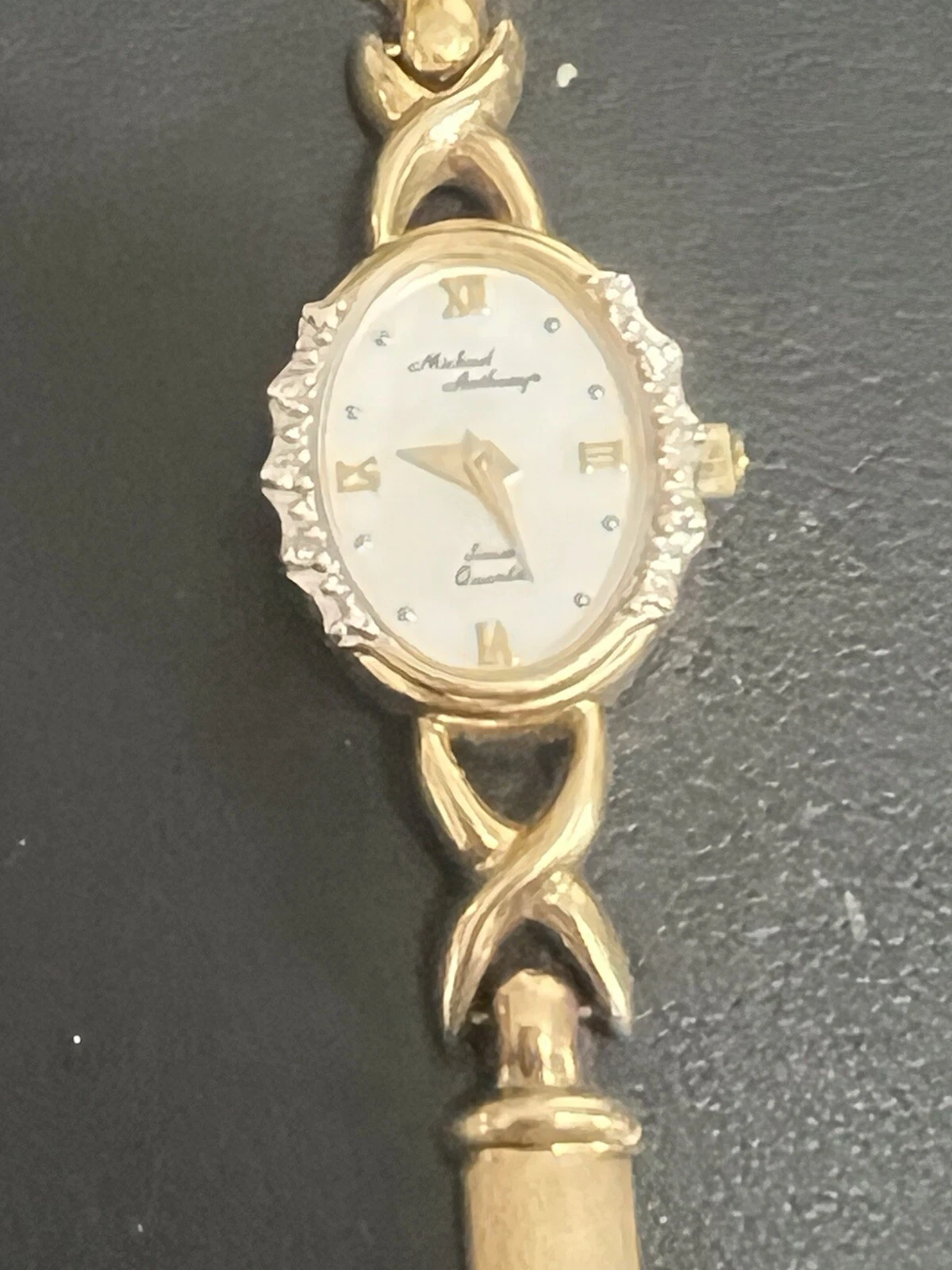 Michael Anthony 6.5” Watch Women 14K YG Mother Pearl Dia Dial VG 11.2g Not Scrap