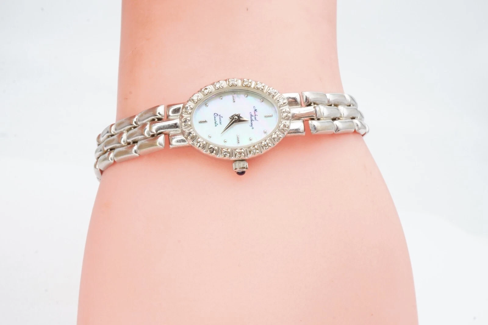 Michael Anthony Watch Womens 14k White Gold Diamond Mother Of Pearl Dial 6.5"