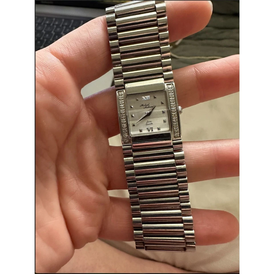Vintage 1990s Michael Anthony Watch w Diamonds Sapphire Quartz Stainless Steel