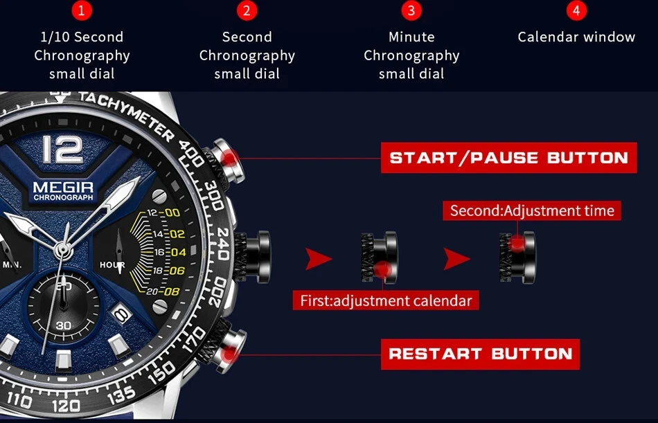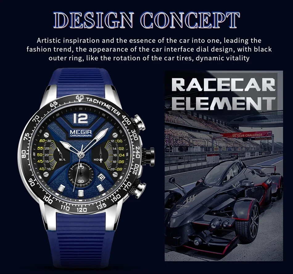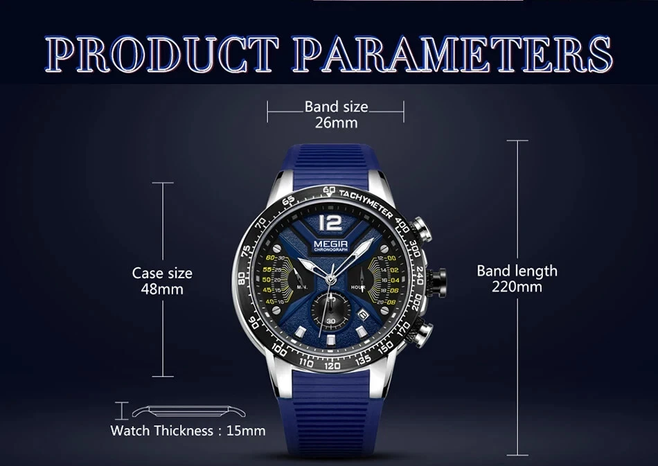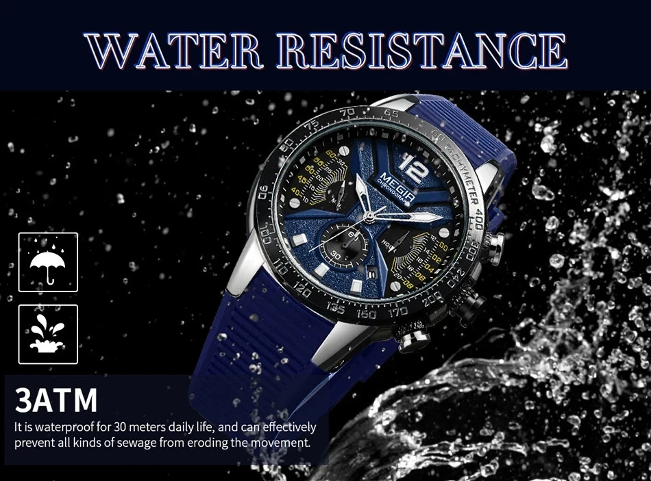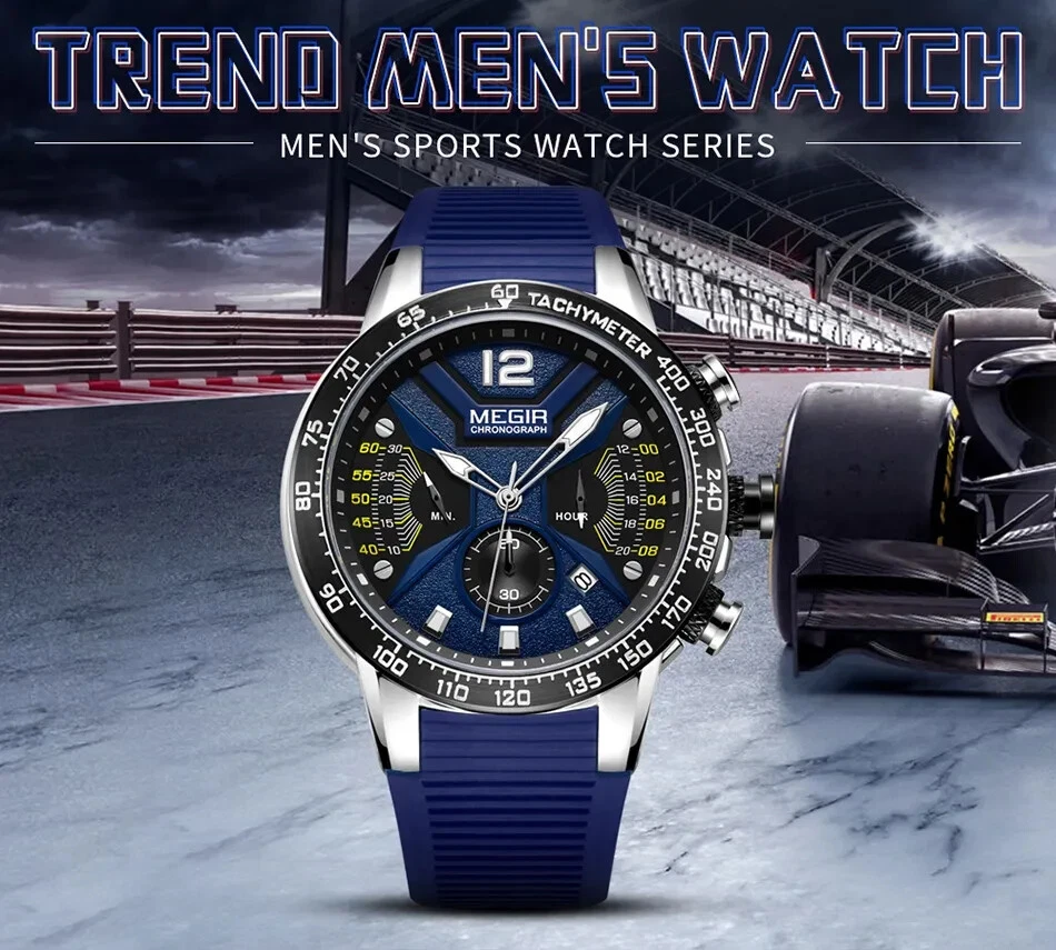 Superb Watch Luxury Sport Blue Quartz Man Date Chronograph Waterproof And Grade