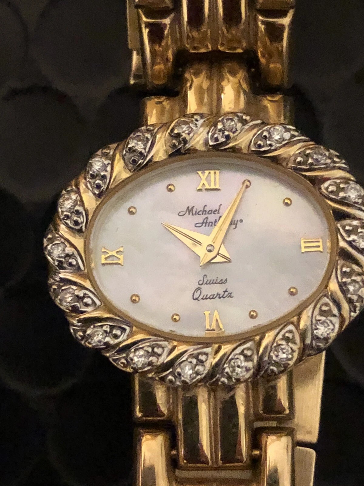 Beautiful Ladies Michael Anthony MOP 14K Solid Gold and Diamond Watch 23.7g
