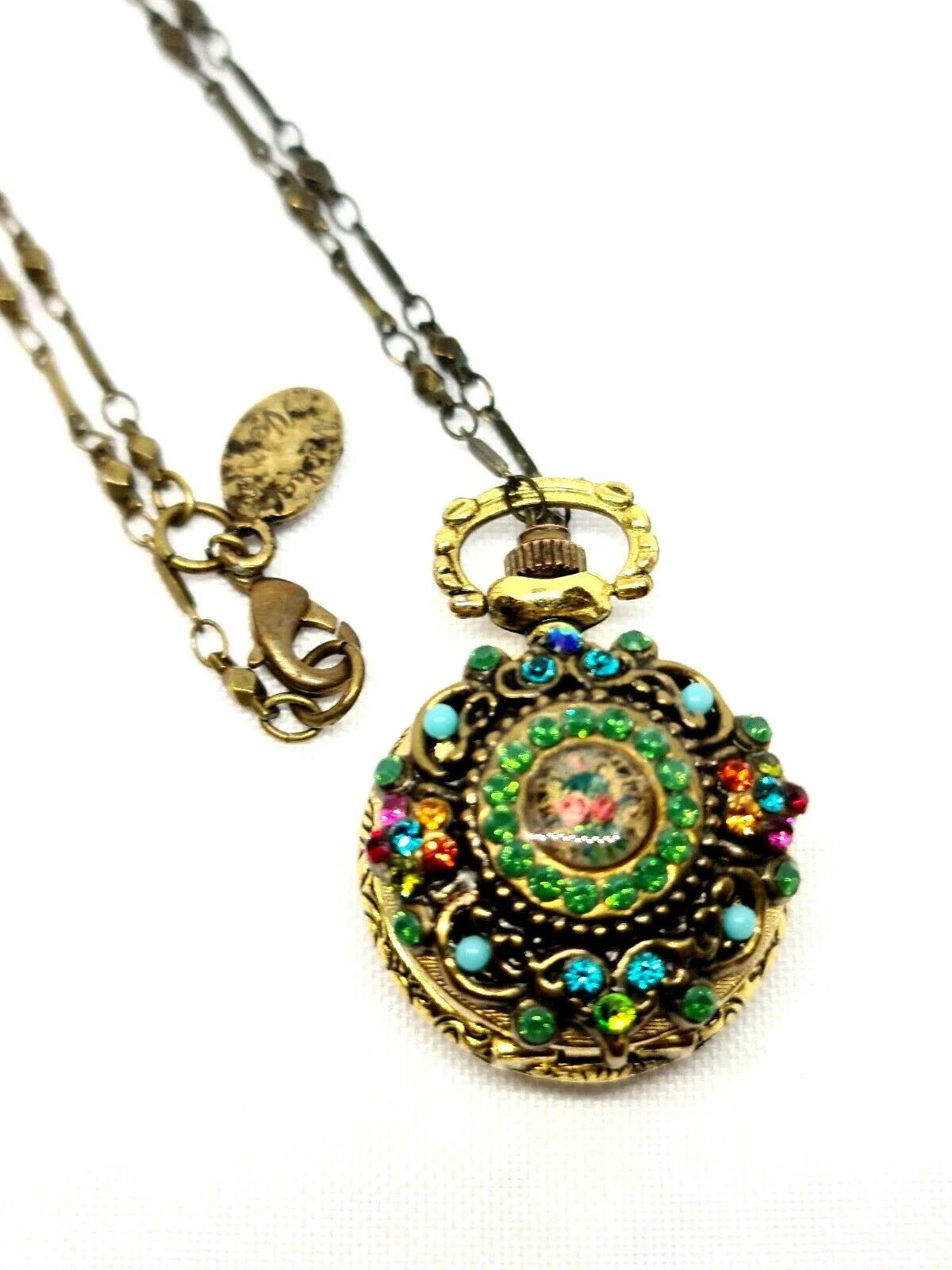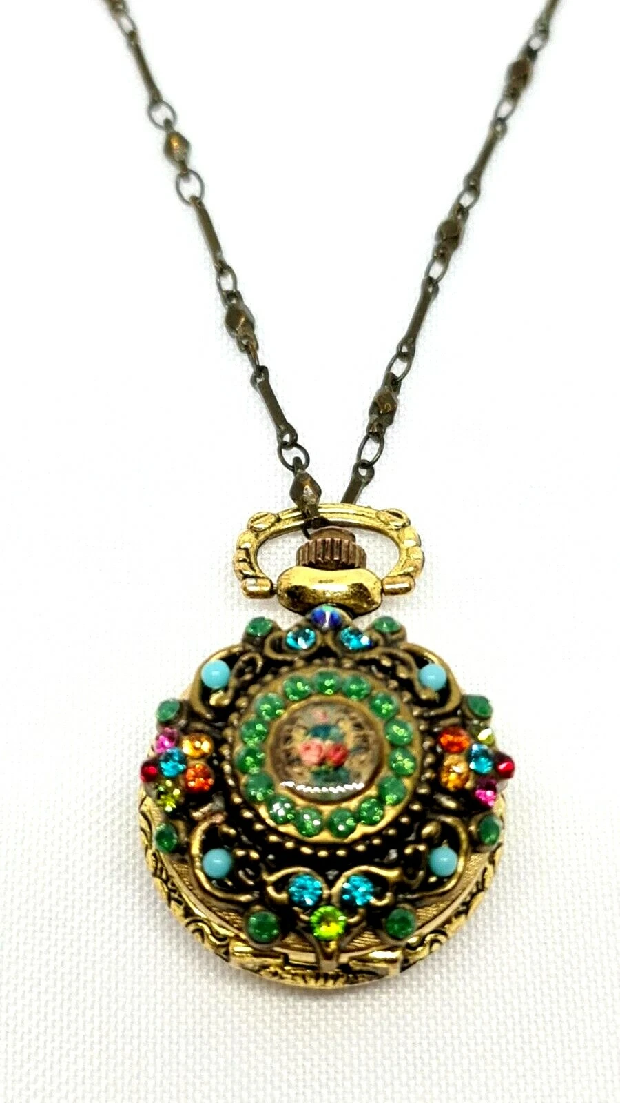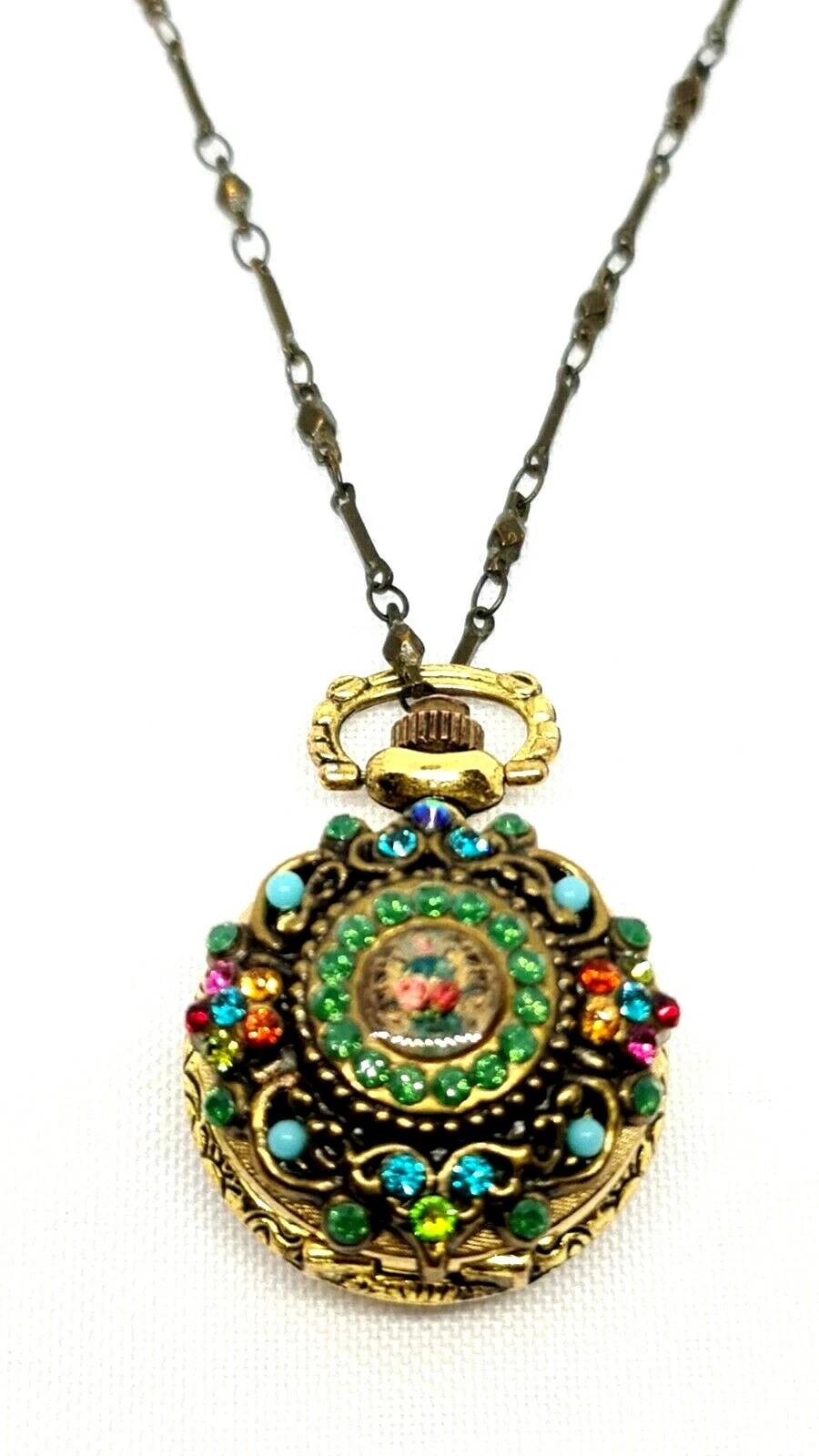 Vintage Watch Pendant with Colored Crystal Stones By Michal Negrin.