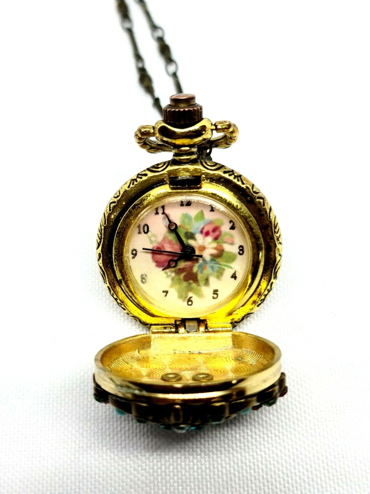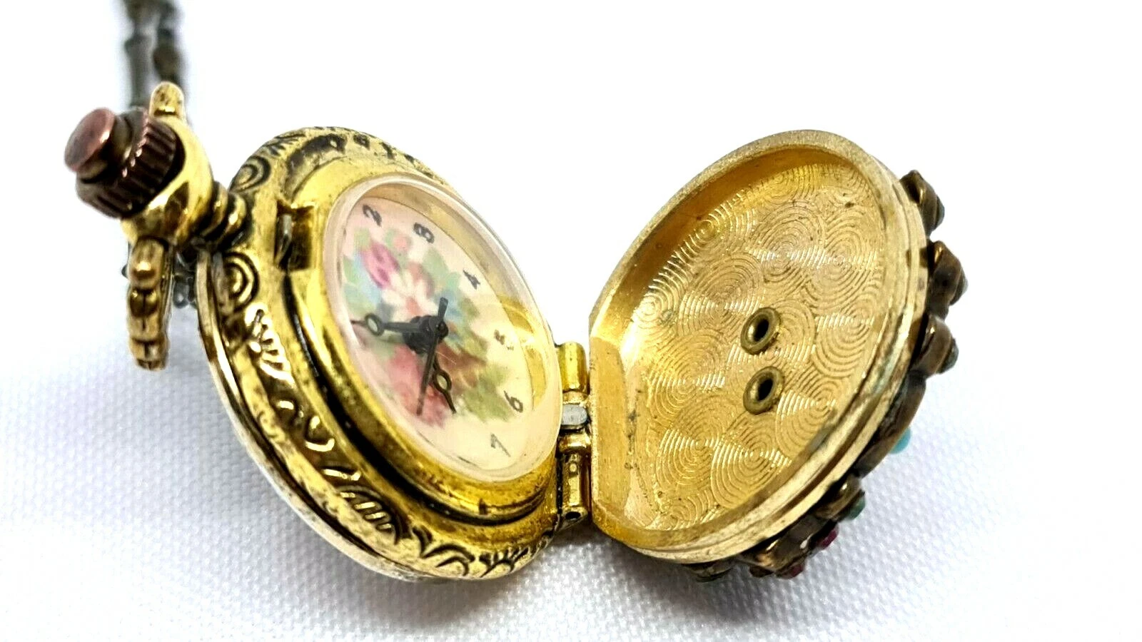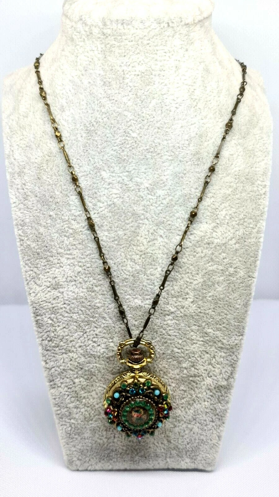 Vintage Watch Pendant with Colored Crystal Stones By Michal Negrin.