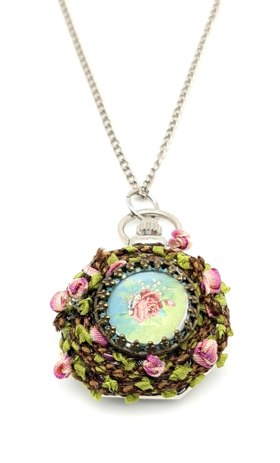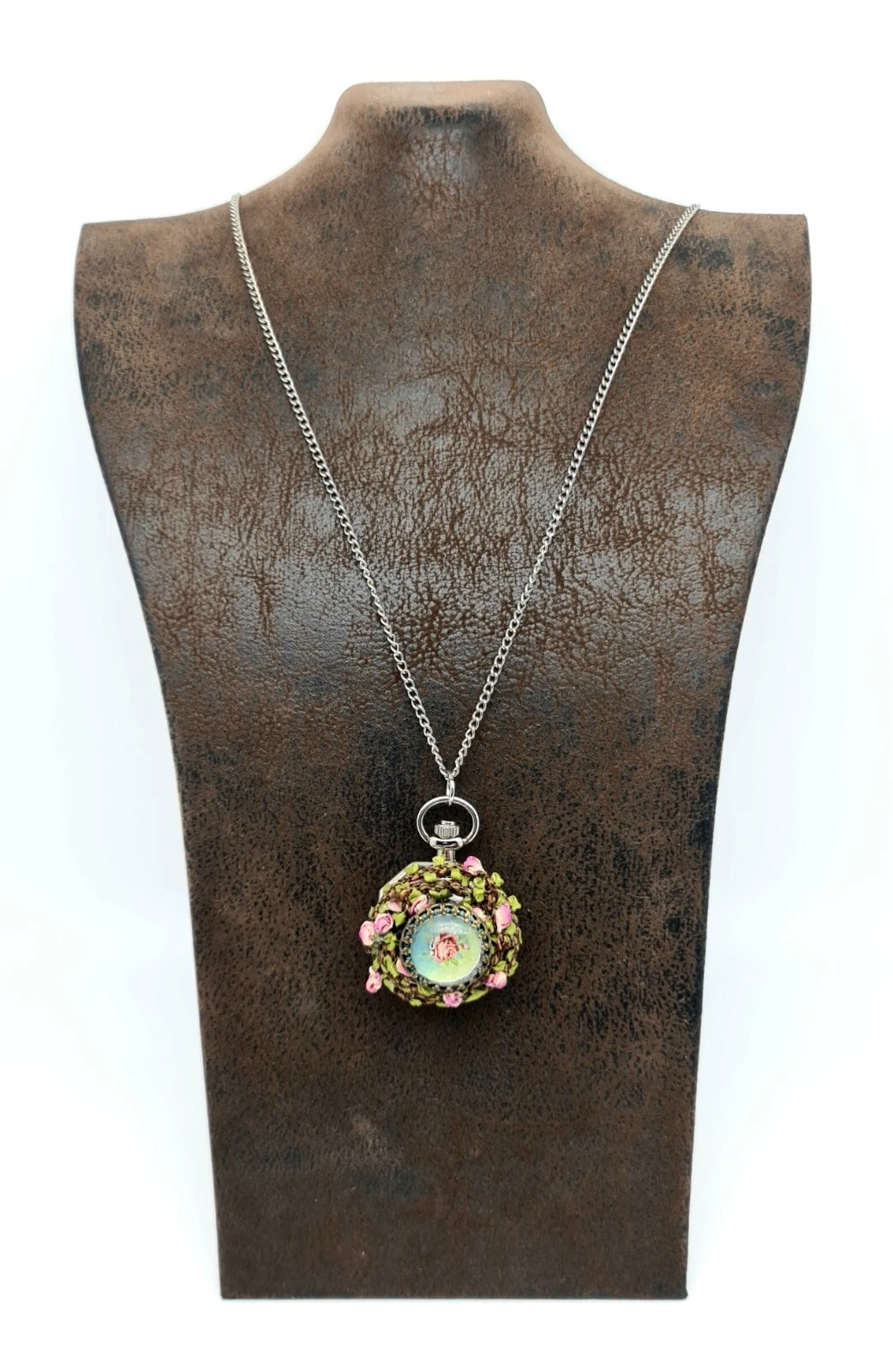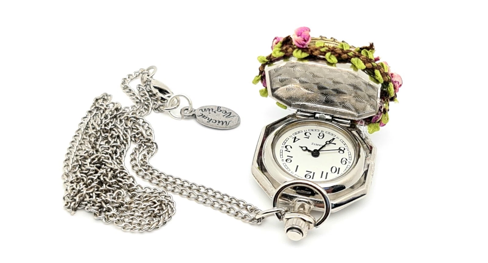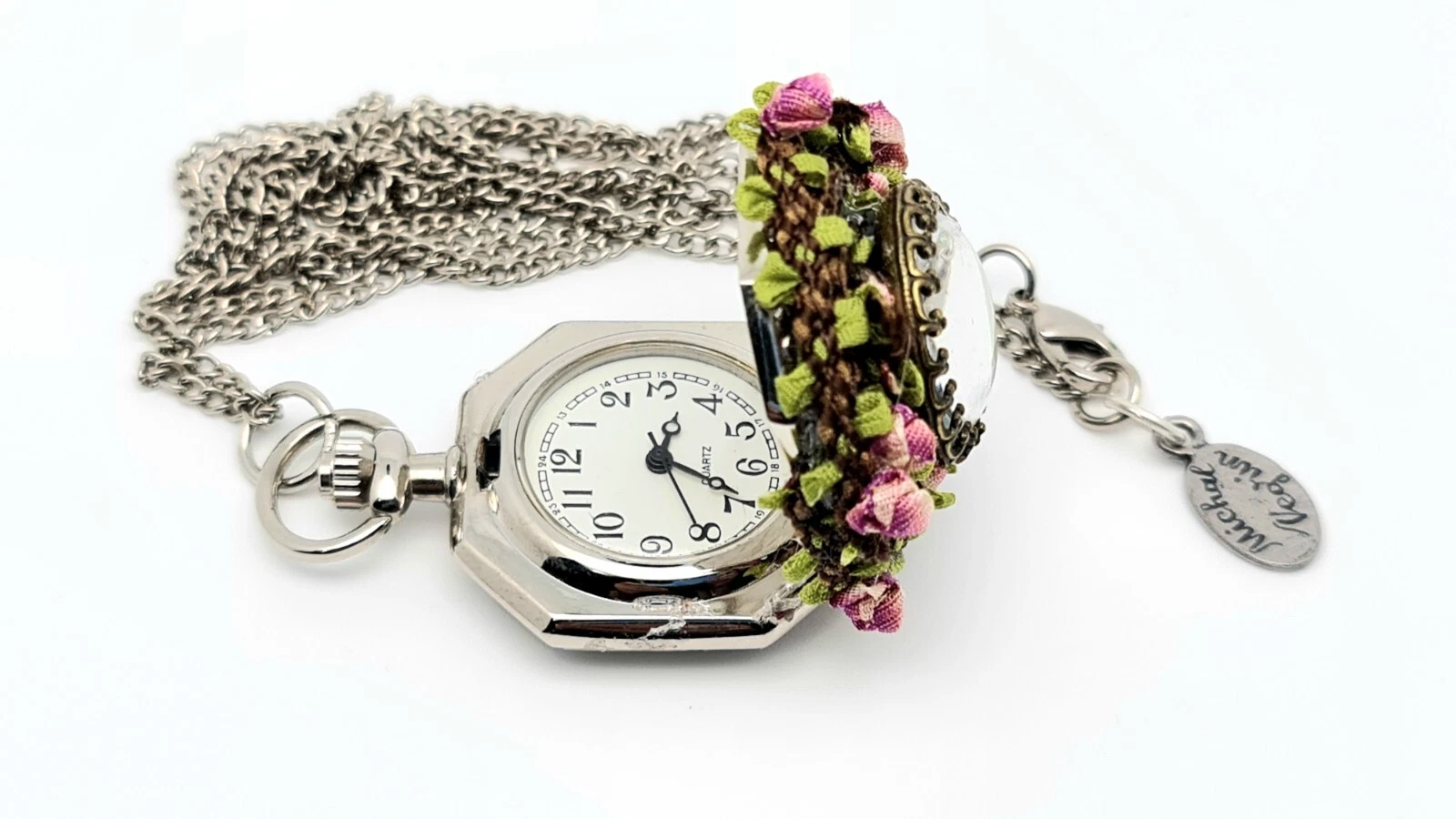 Vintage Watch Pendant with Colored Flowers By Michal Negrin.