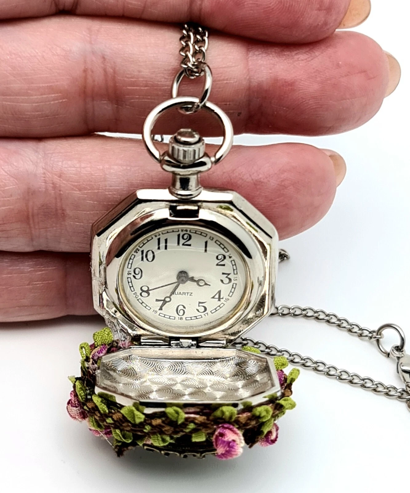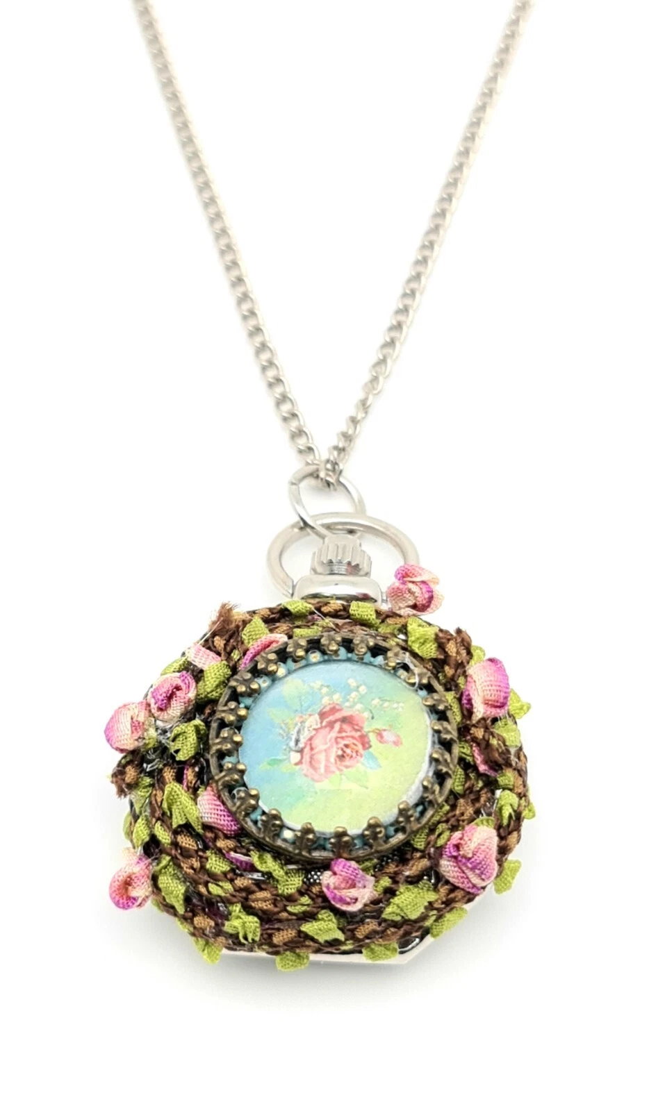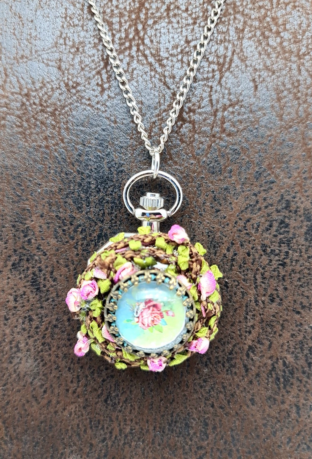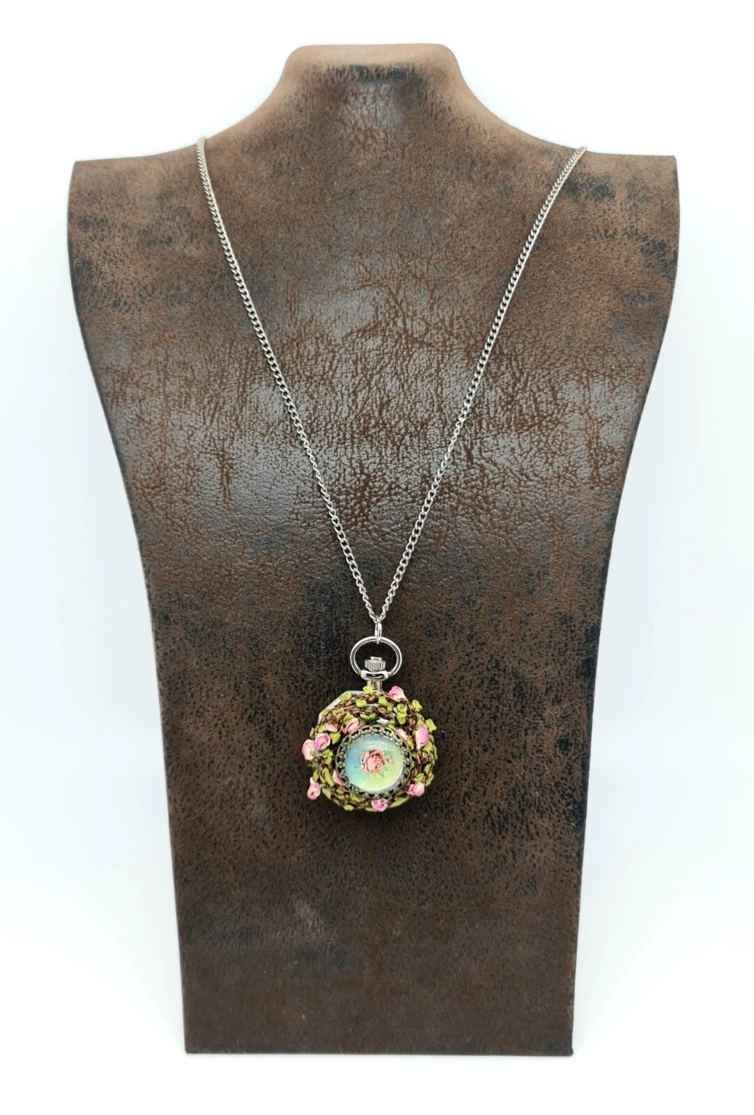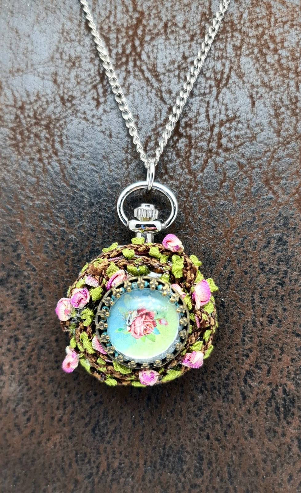 Vintage Watch Pendant with Colored Flowers By Michal Negrin.