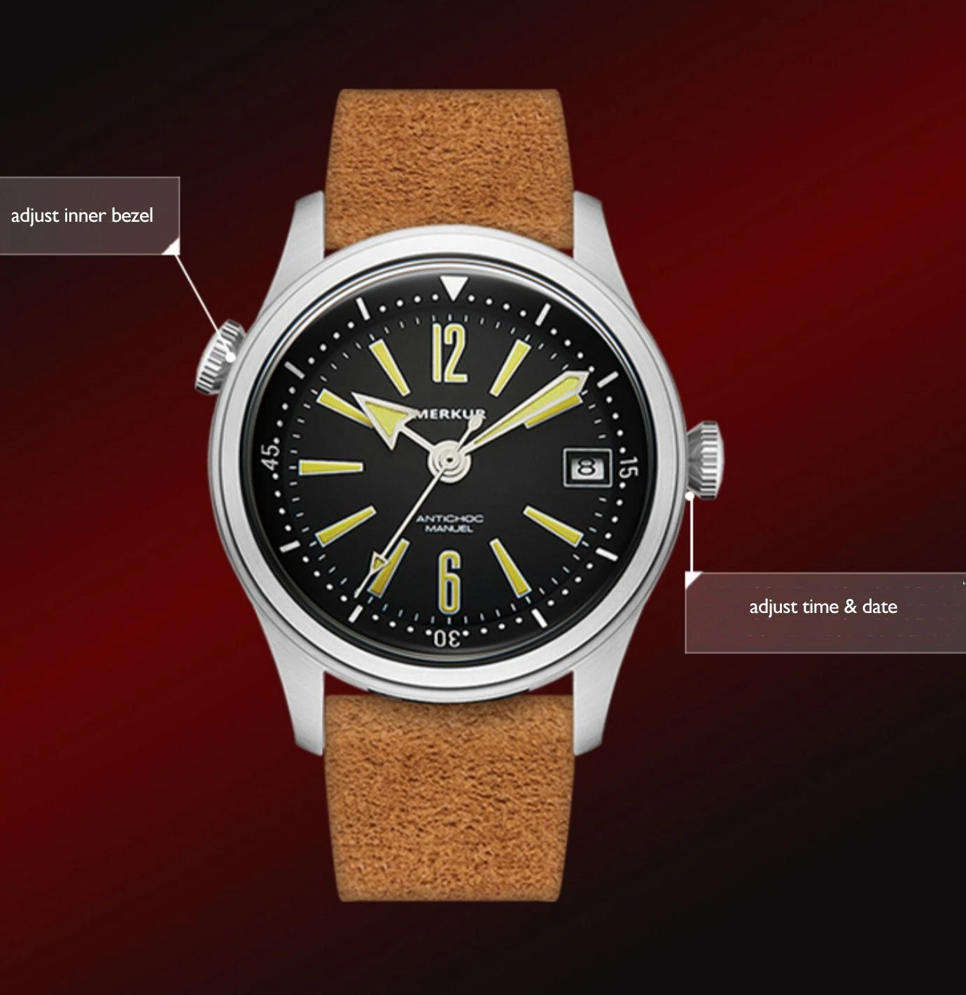 MERKUR Men Watch 38.5MM Pilot Manual Wind Mechanical Wristwatch Luminous Diver