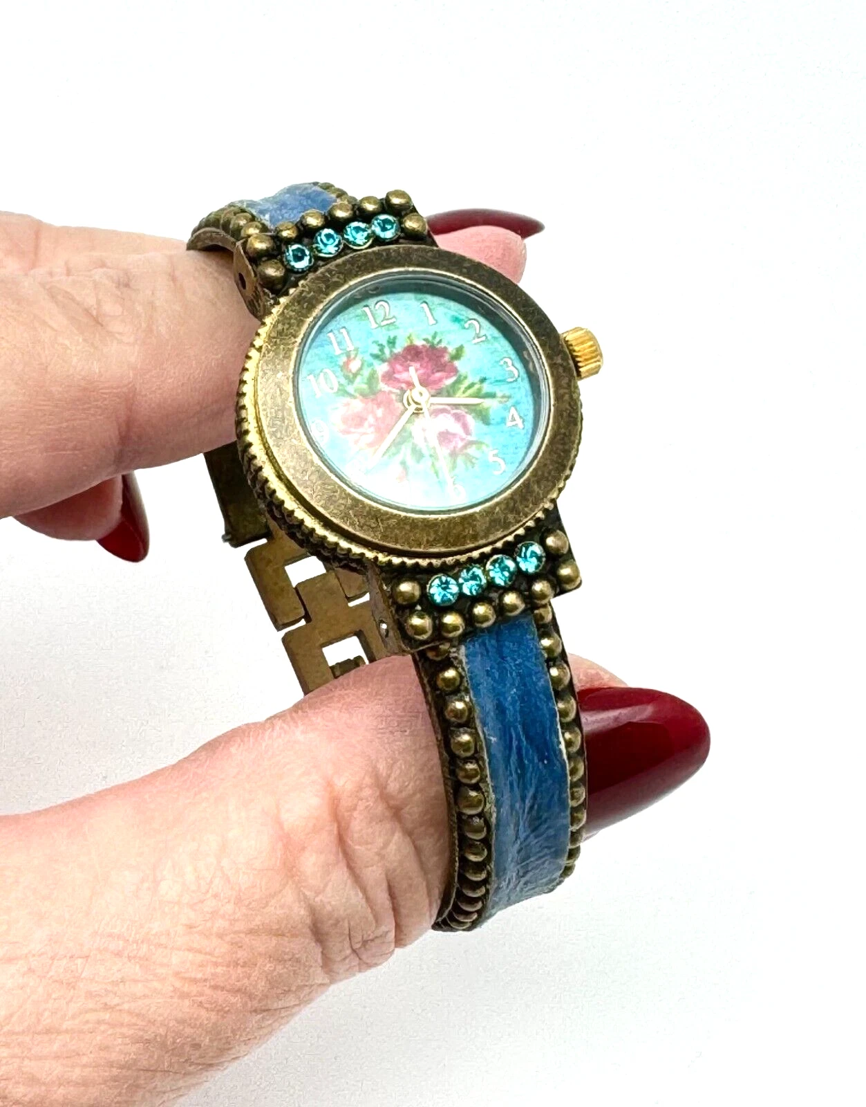 Watch By Michal Negrin Metal Strap With Blue Crystals #1221#